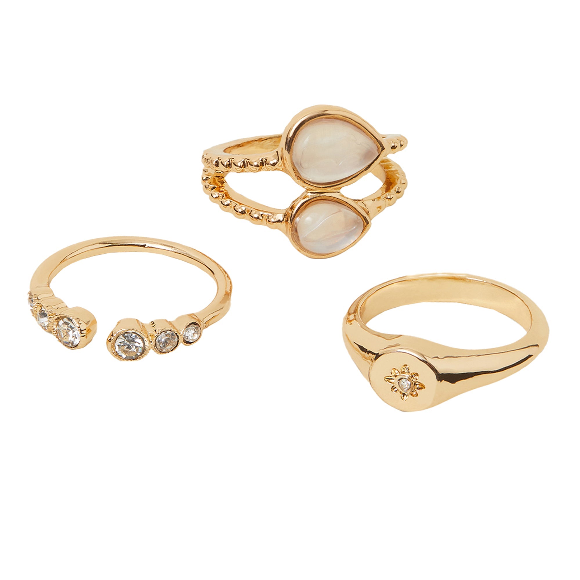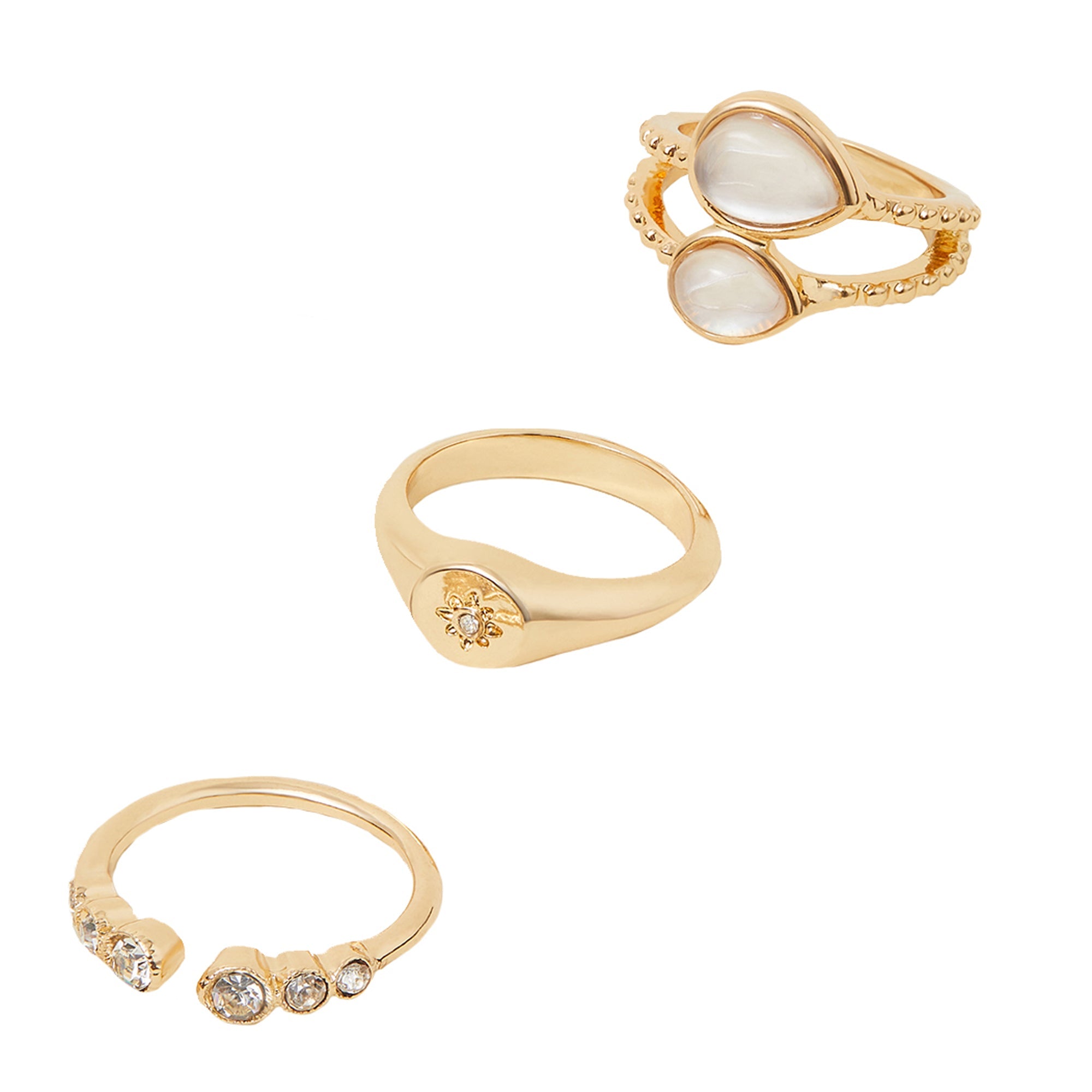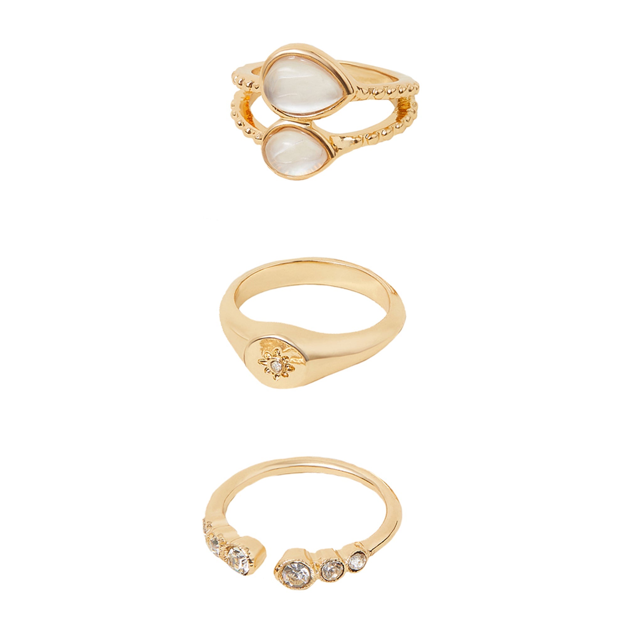 Accessorize London Women's Gold Mother Of Pearl Rings Set Of 3 - MEDIUM