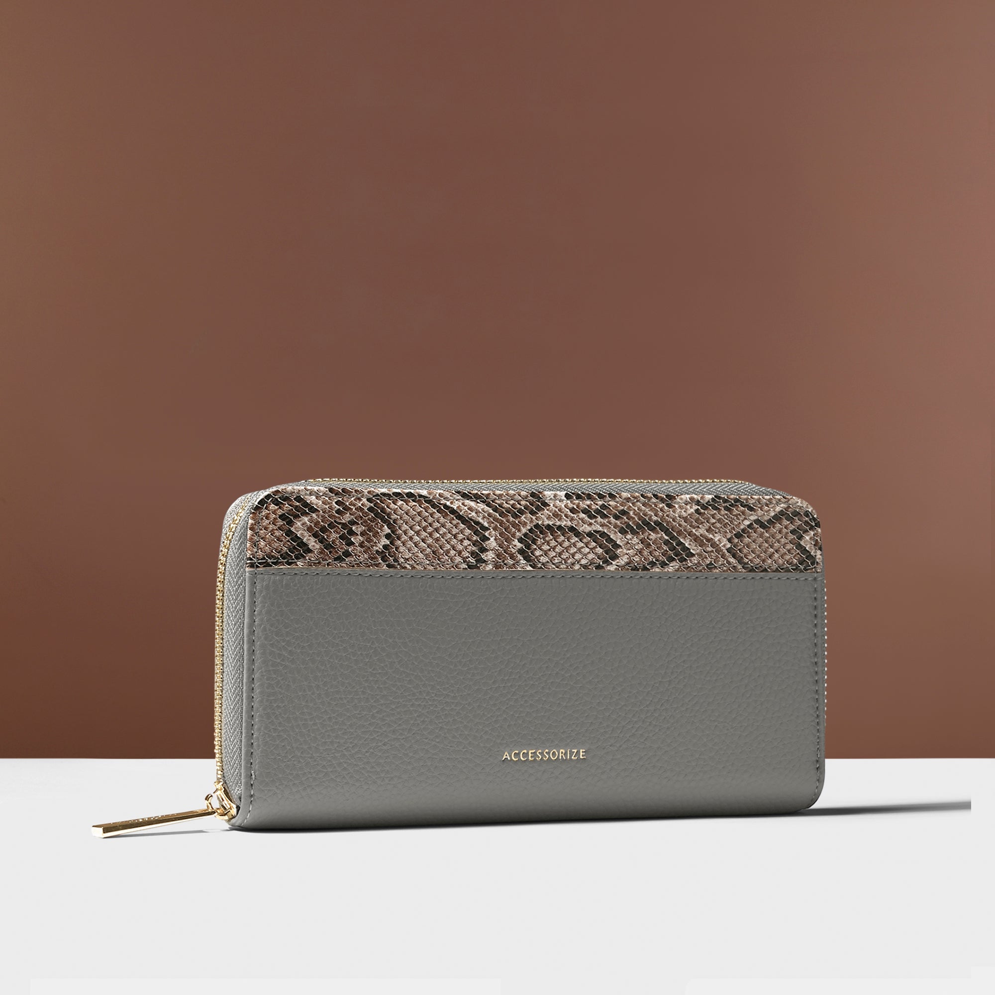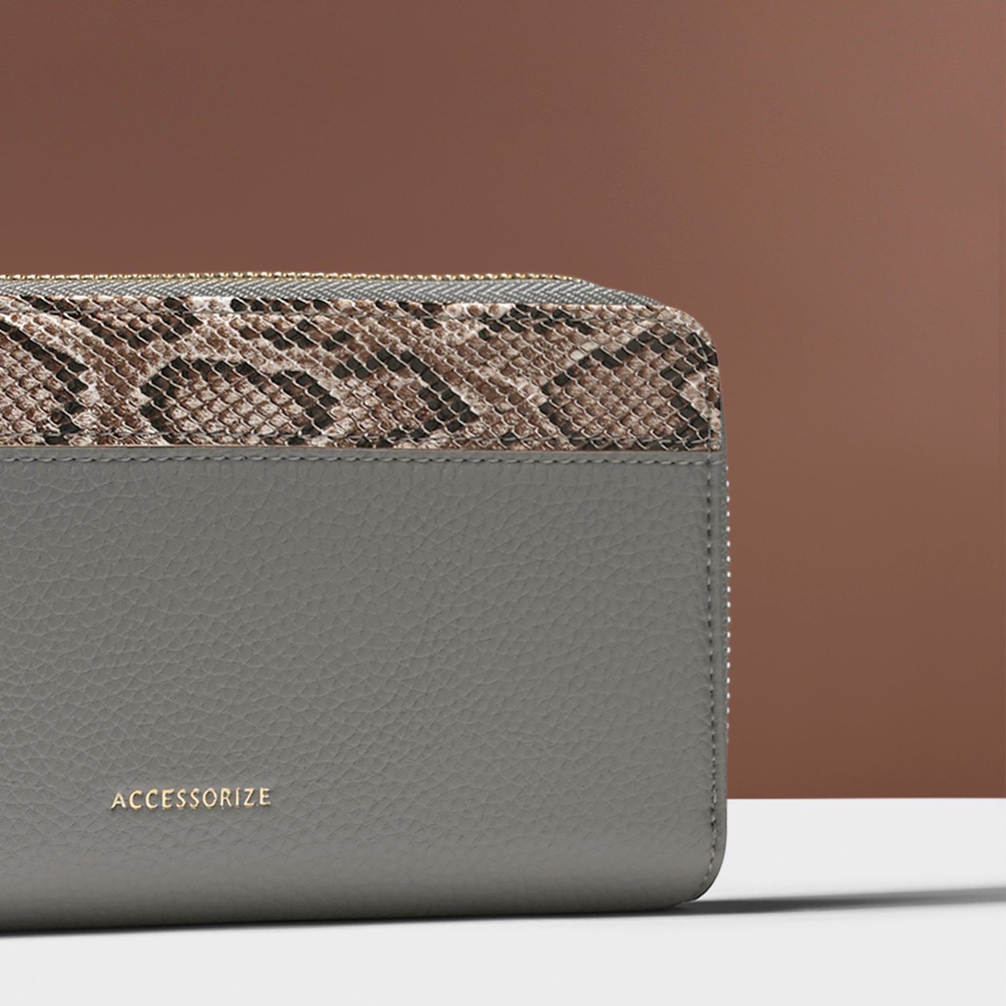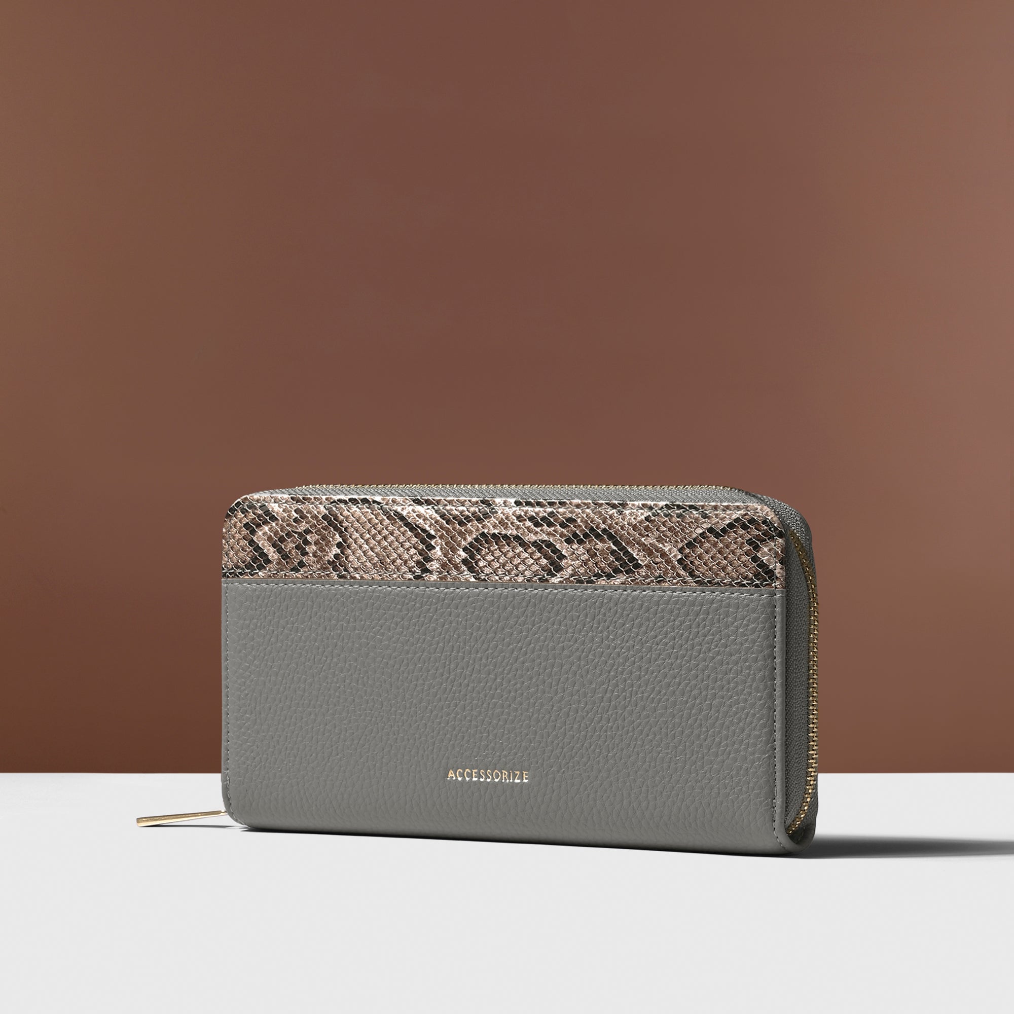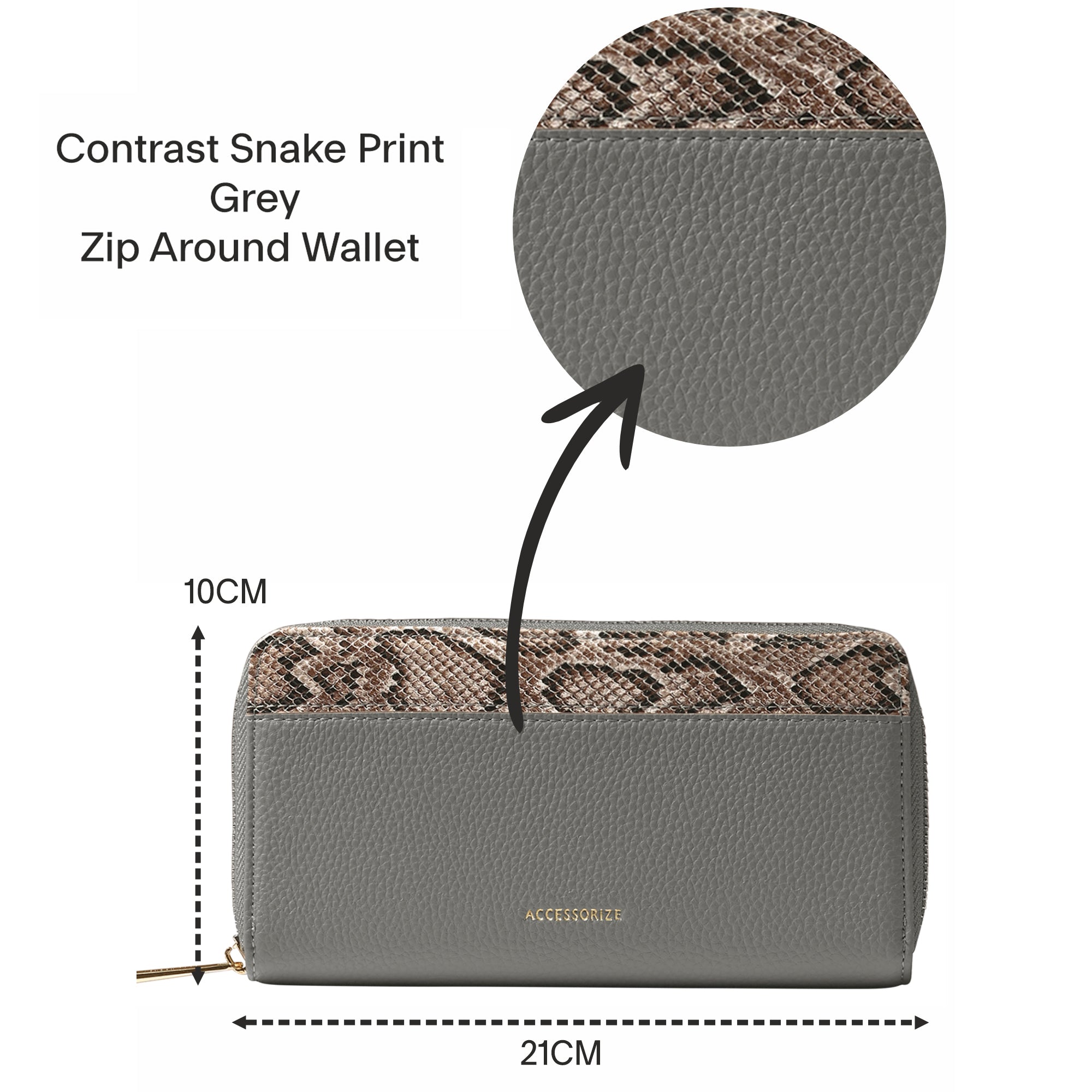 Accessorize London Women's Grey Contrast Snake Print Wallet