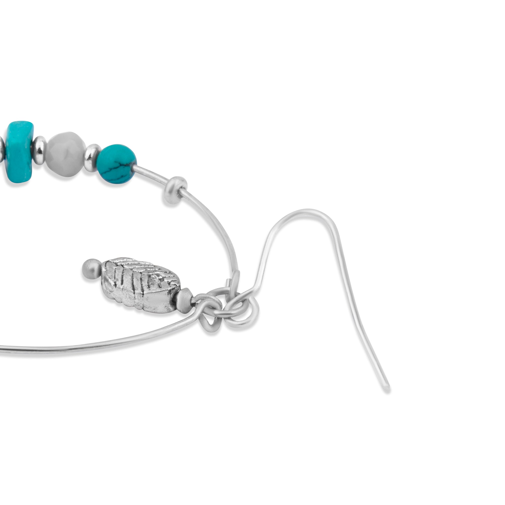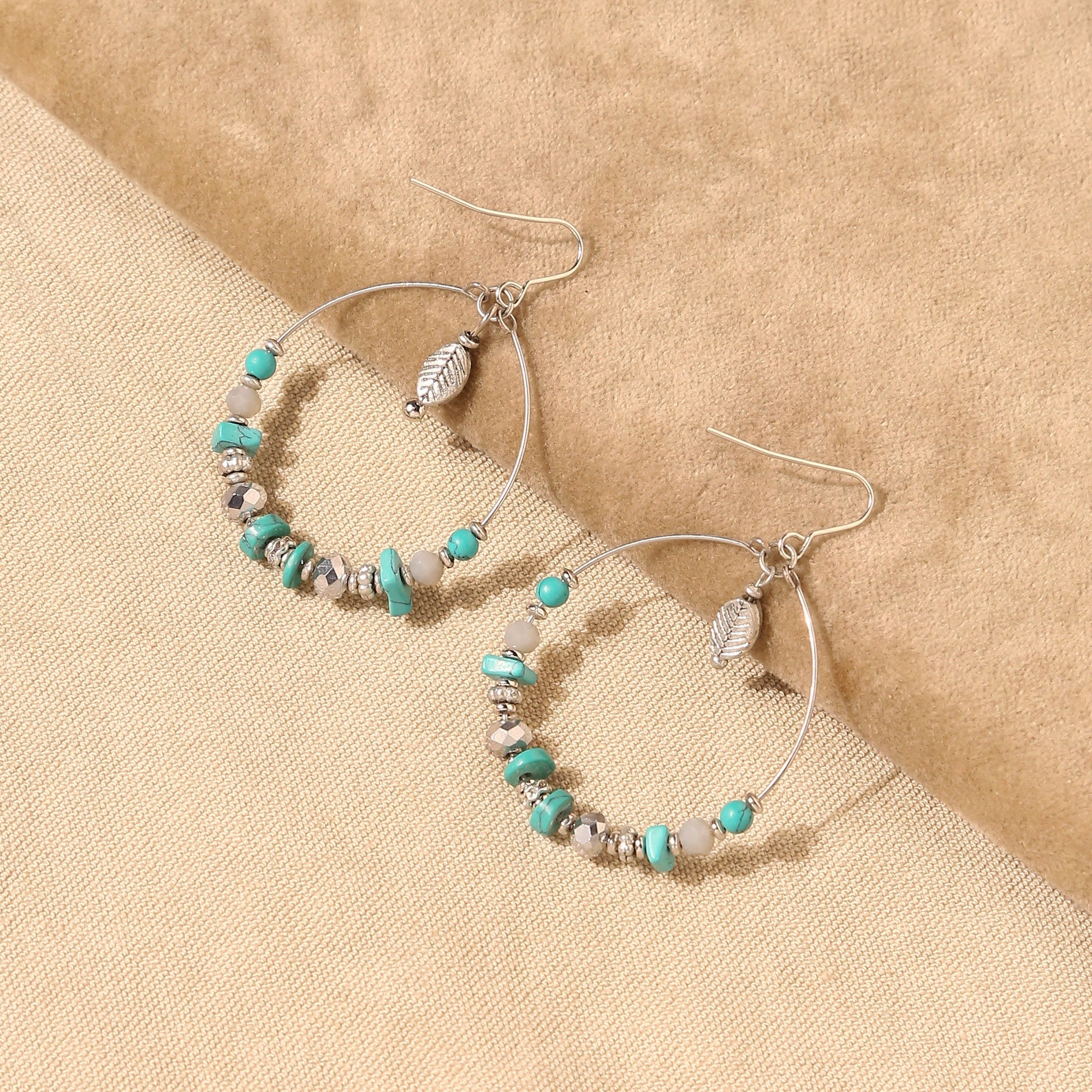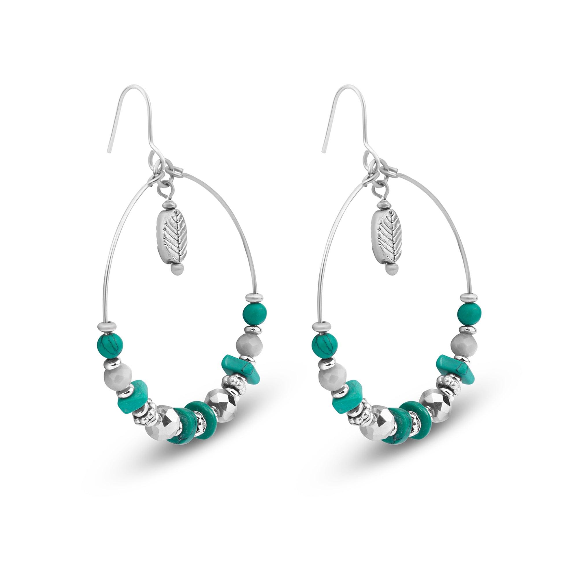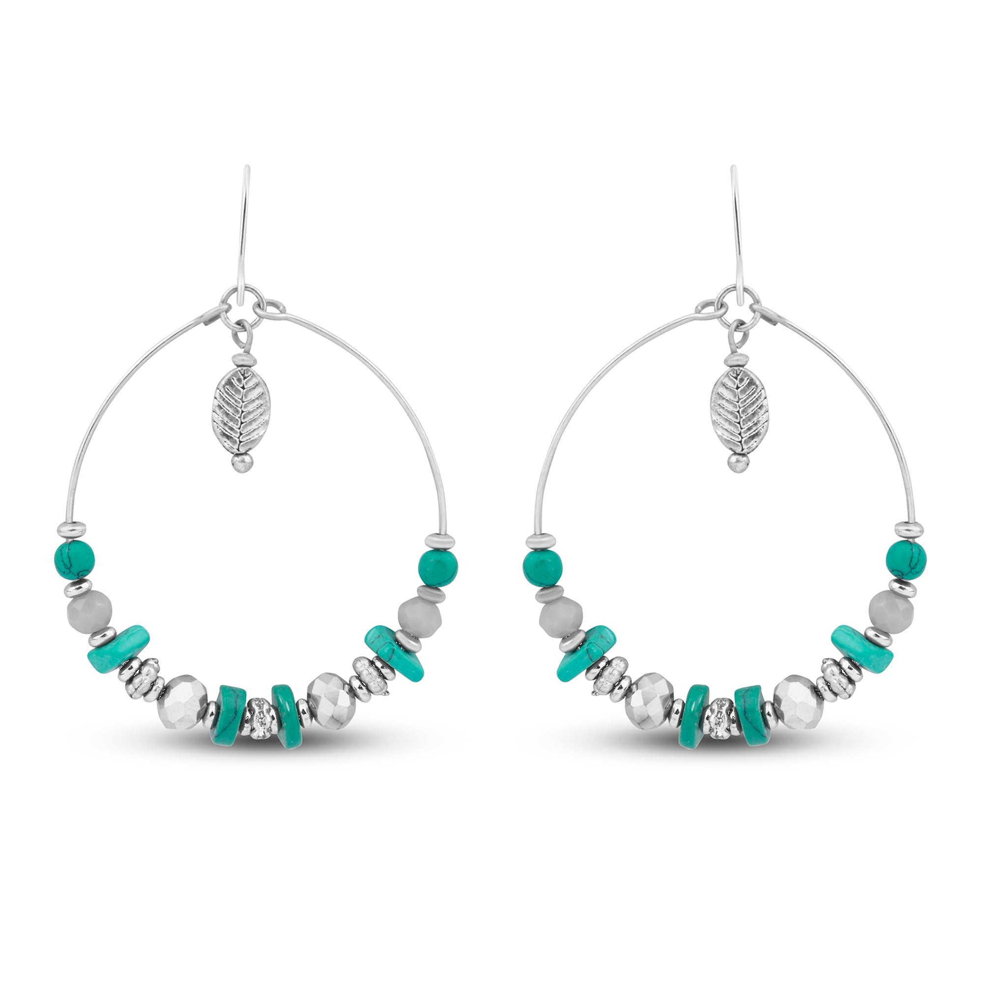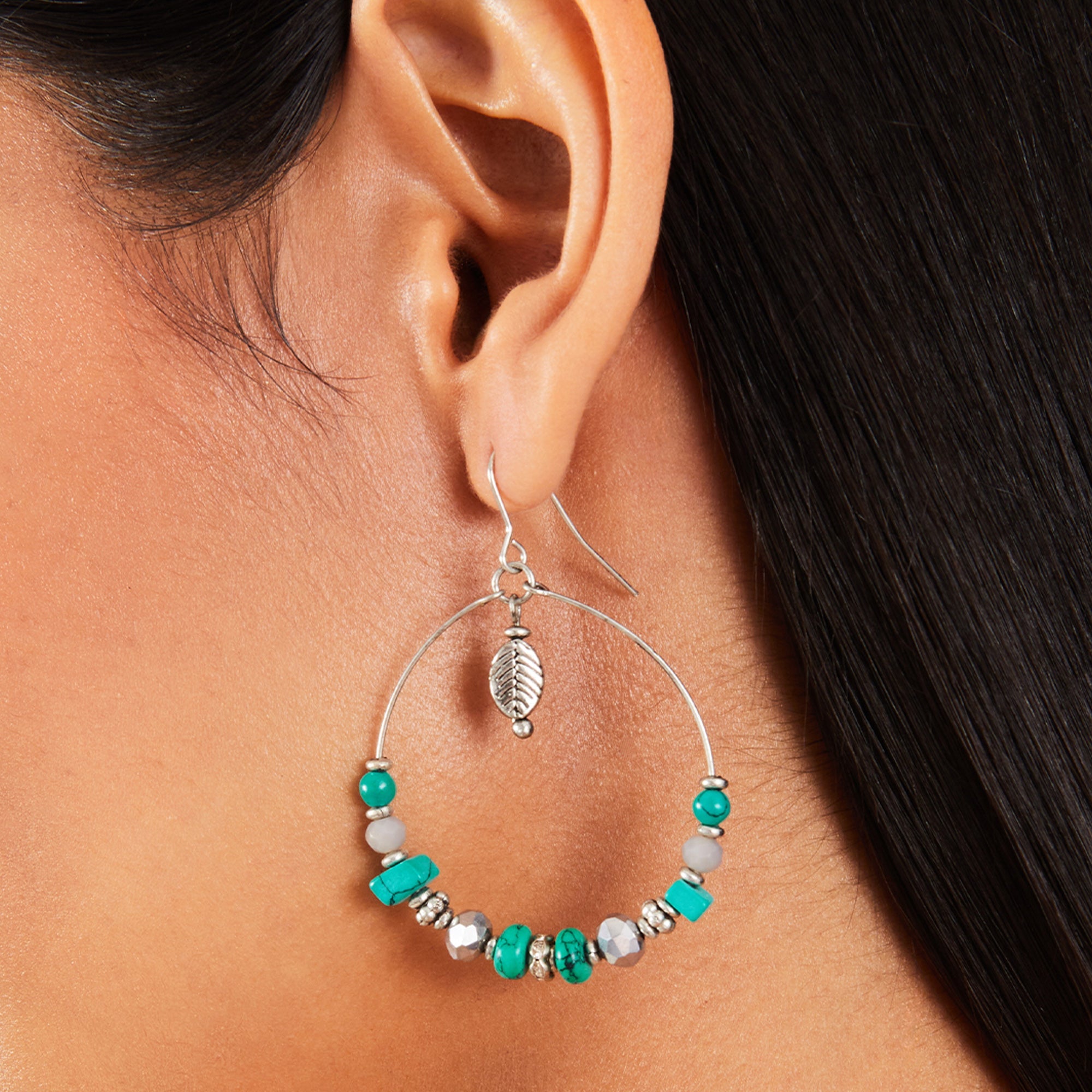 Mother Nature called, she wants her earrings back. Crafted in silver-tone metal, these Hoop Earrings are designed with a leaf drop charm with an eclectic mix of beading threaded onto the Hoop Earrings. Finished with a simple wire hook.
