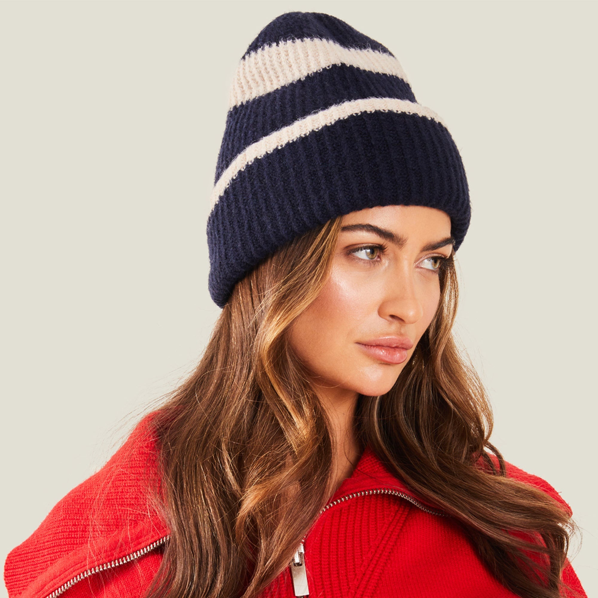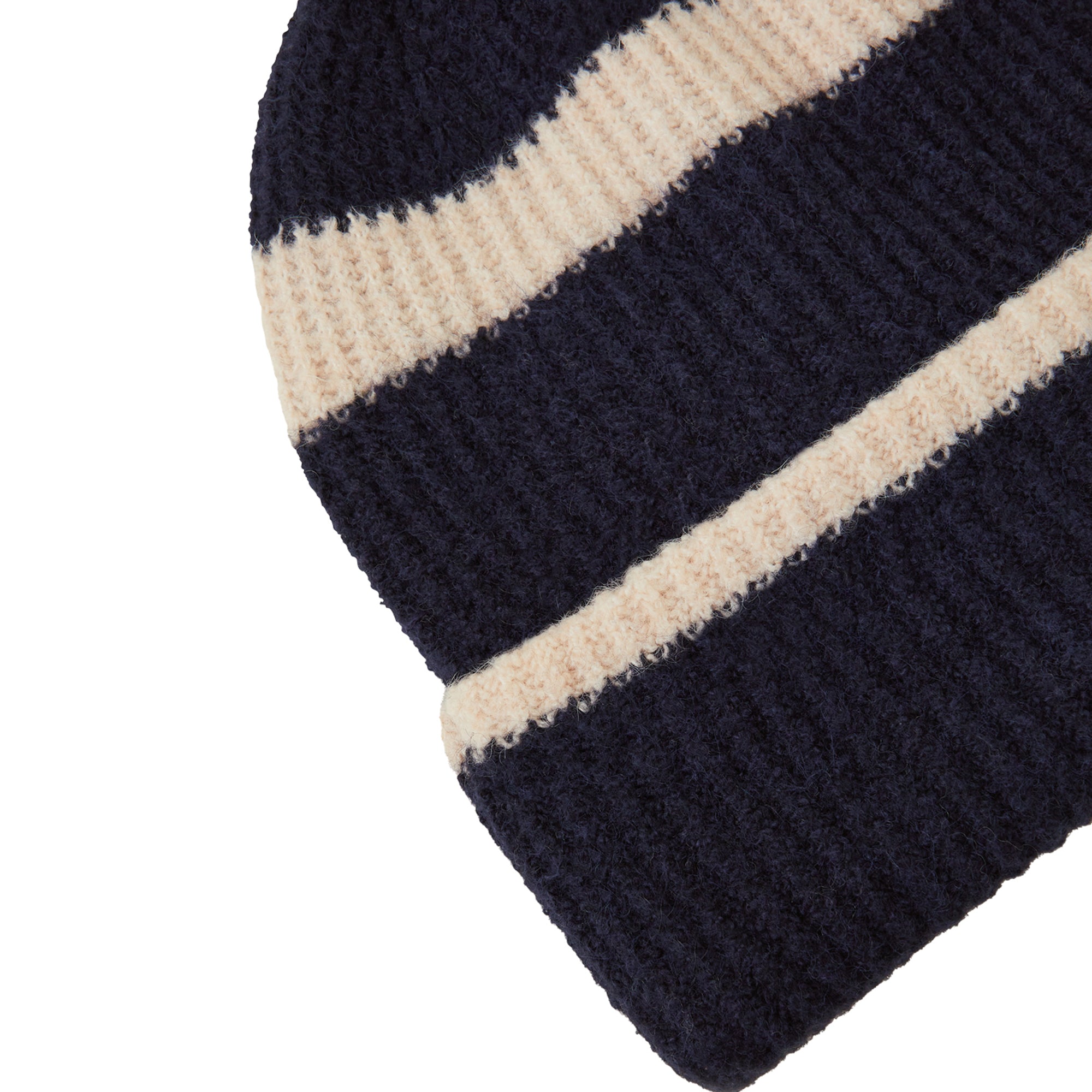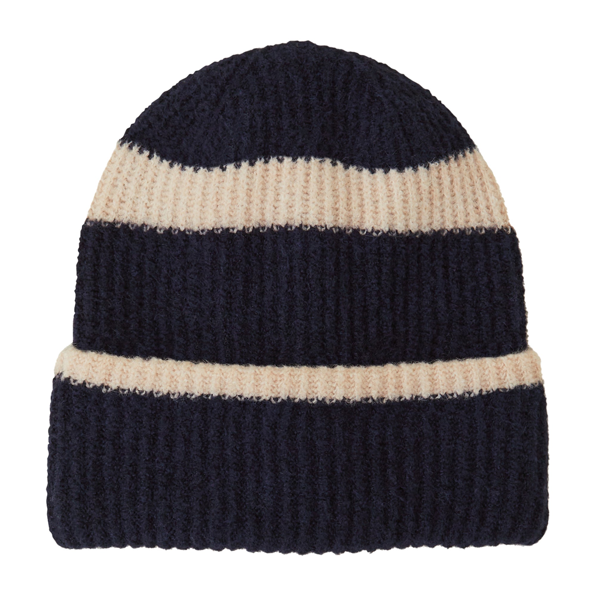 Crafted in a soft knit with a classic rib finish, this beanie hat is a staple for cold-weather styling. This stripe design has a turn-up brim with a snug fit.