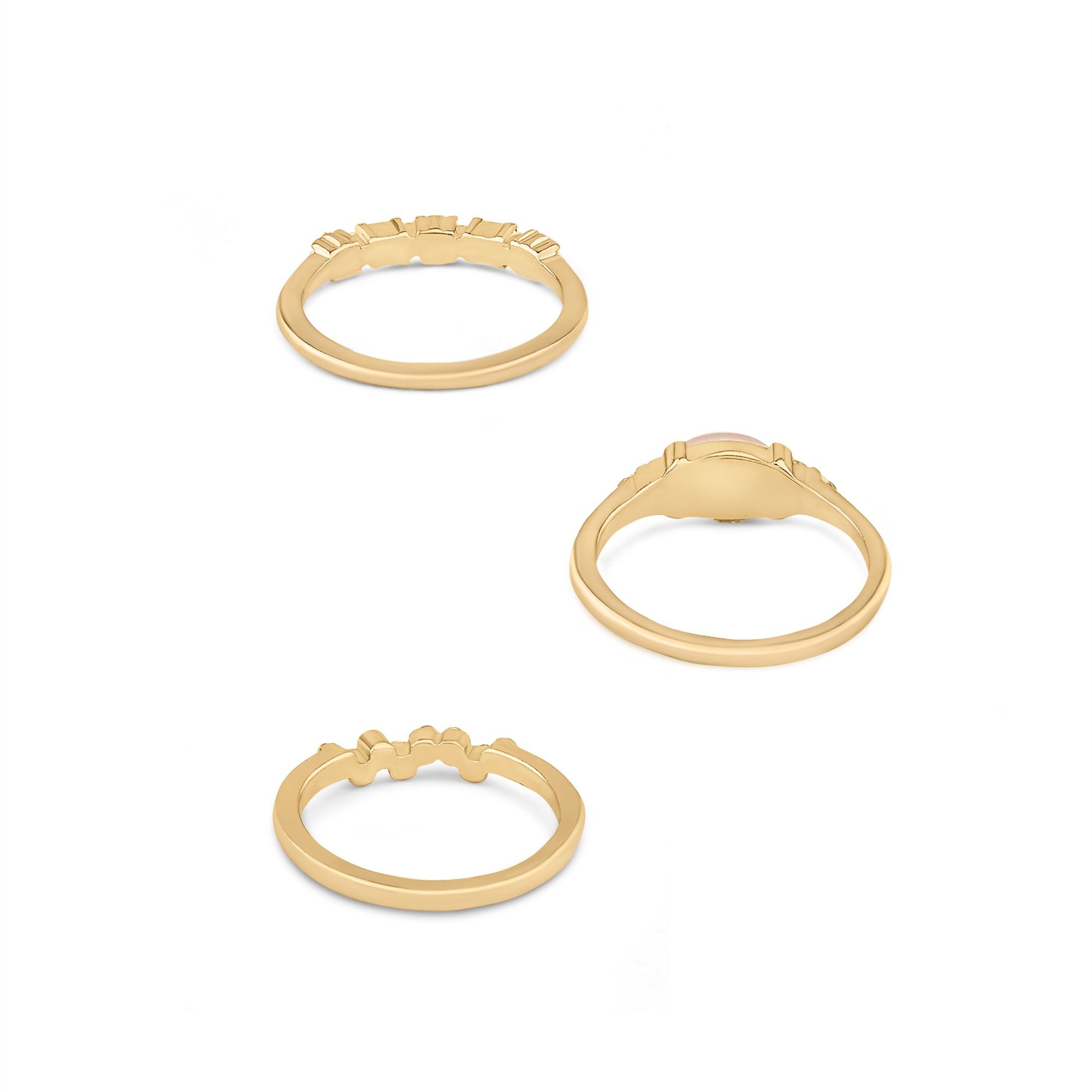 Stack up your sparkles with this ring set, comprising three rings encrusted with crystals and faux opals. Gold