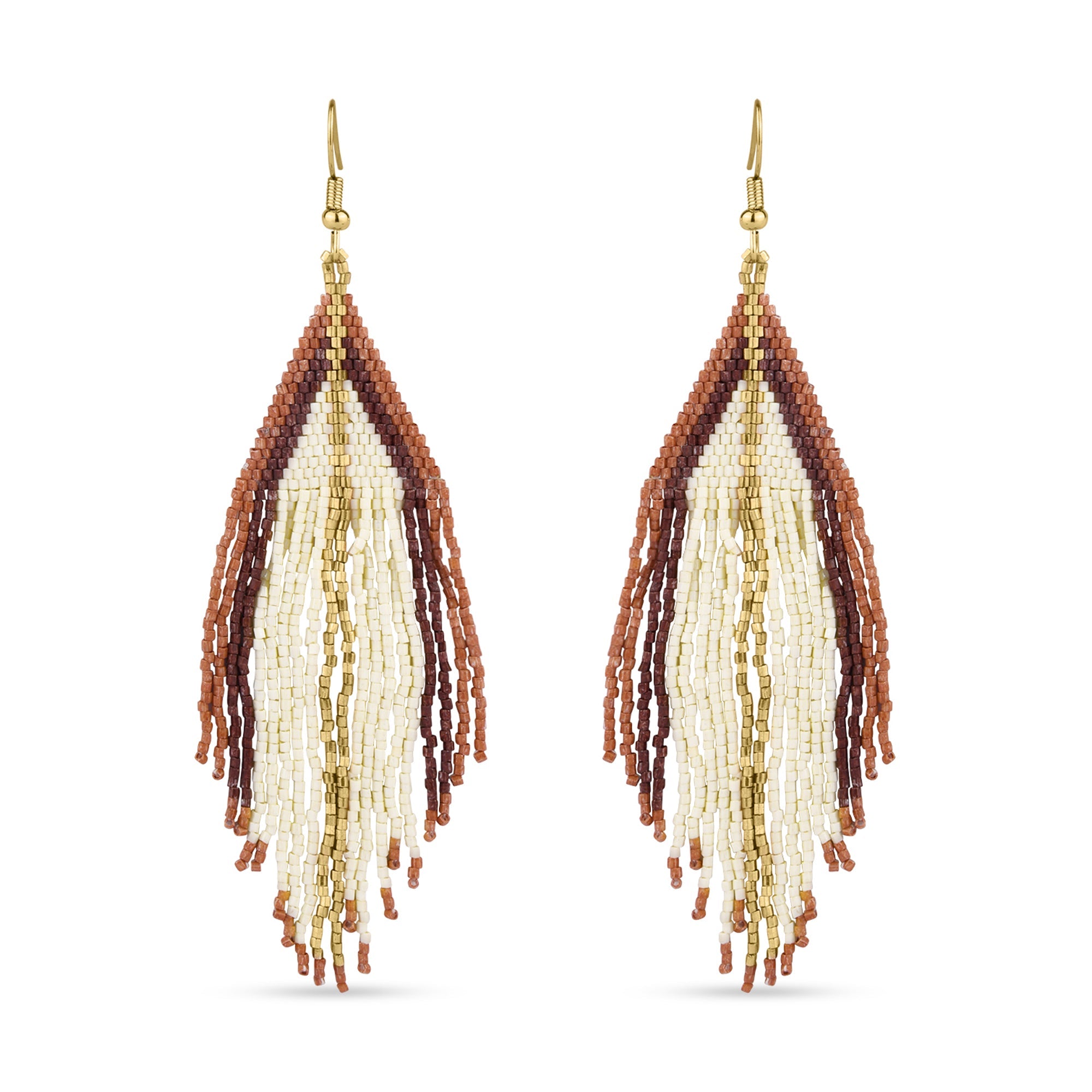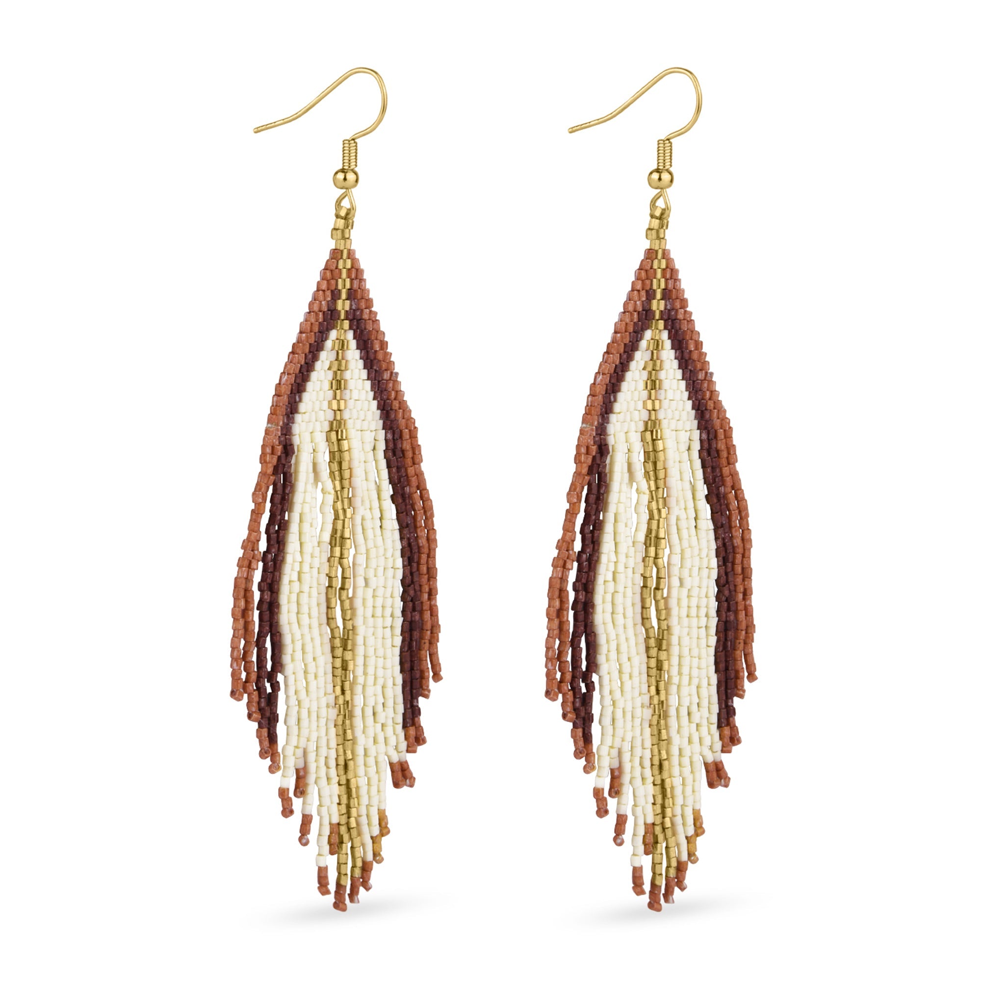 Jazz up your summer outfit with these statement earrings. Featuring a collection of teeny seed beads in a neutral colour palette, they're guaranteed to glisten in the sunshine.