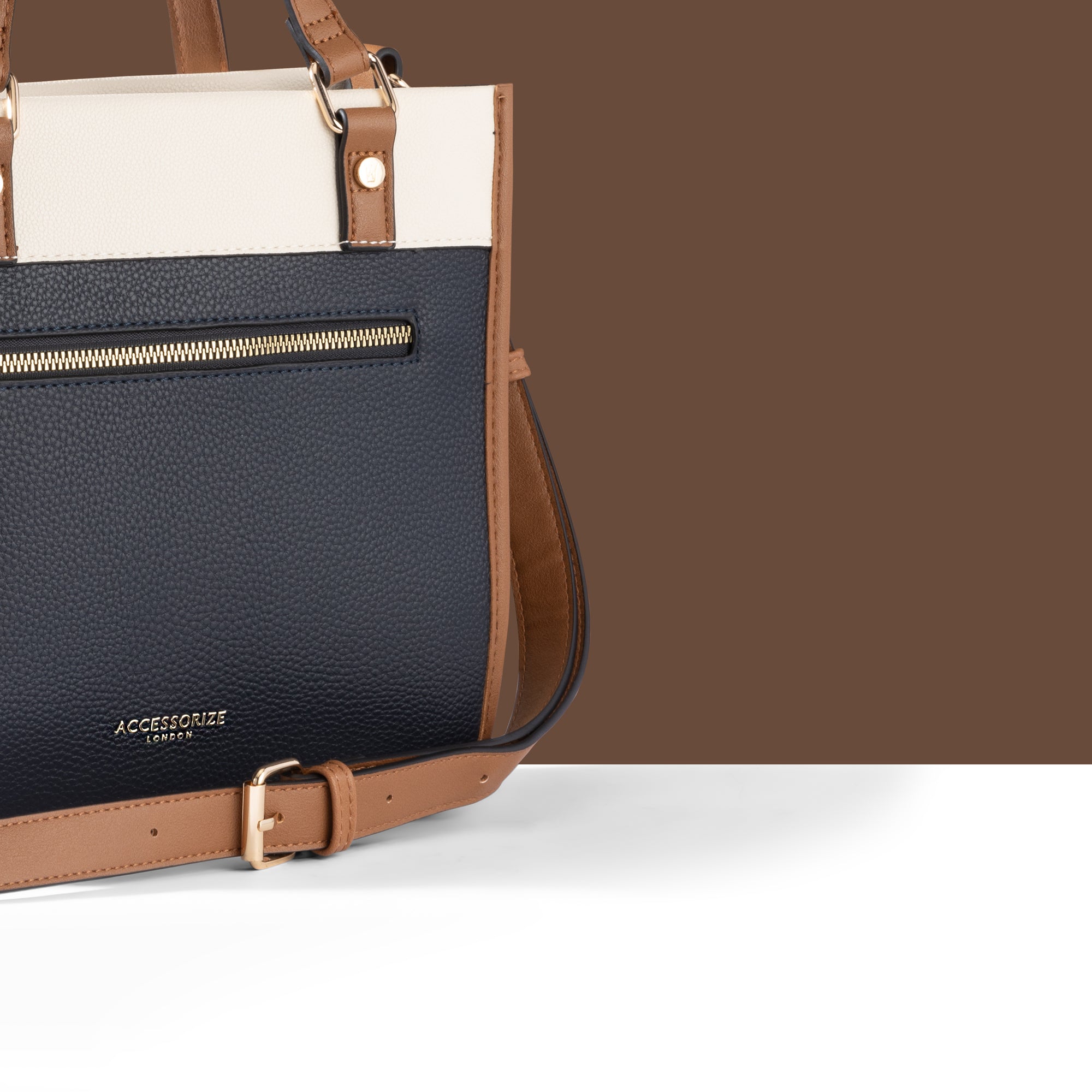 Accessorize London Women's Navy Blue Mini Colour Block Handheld Bag