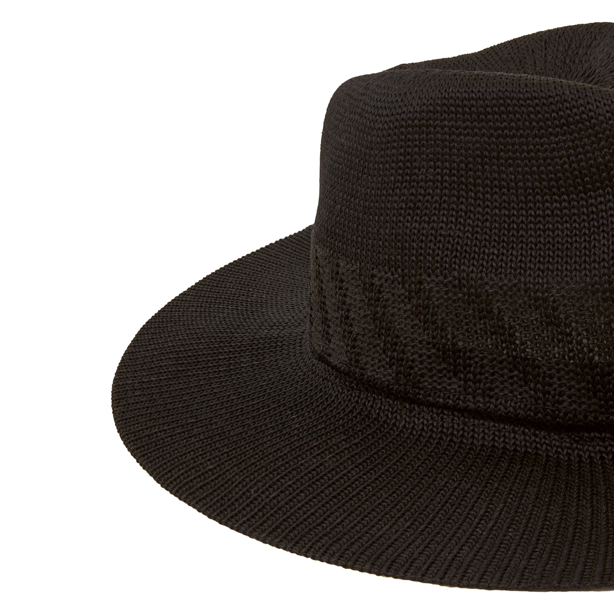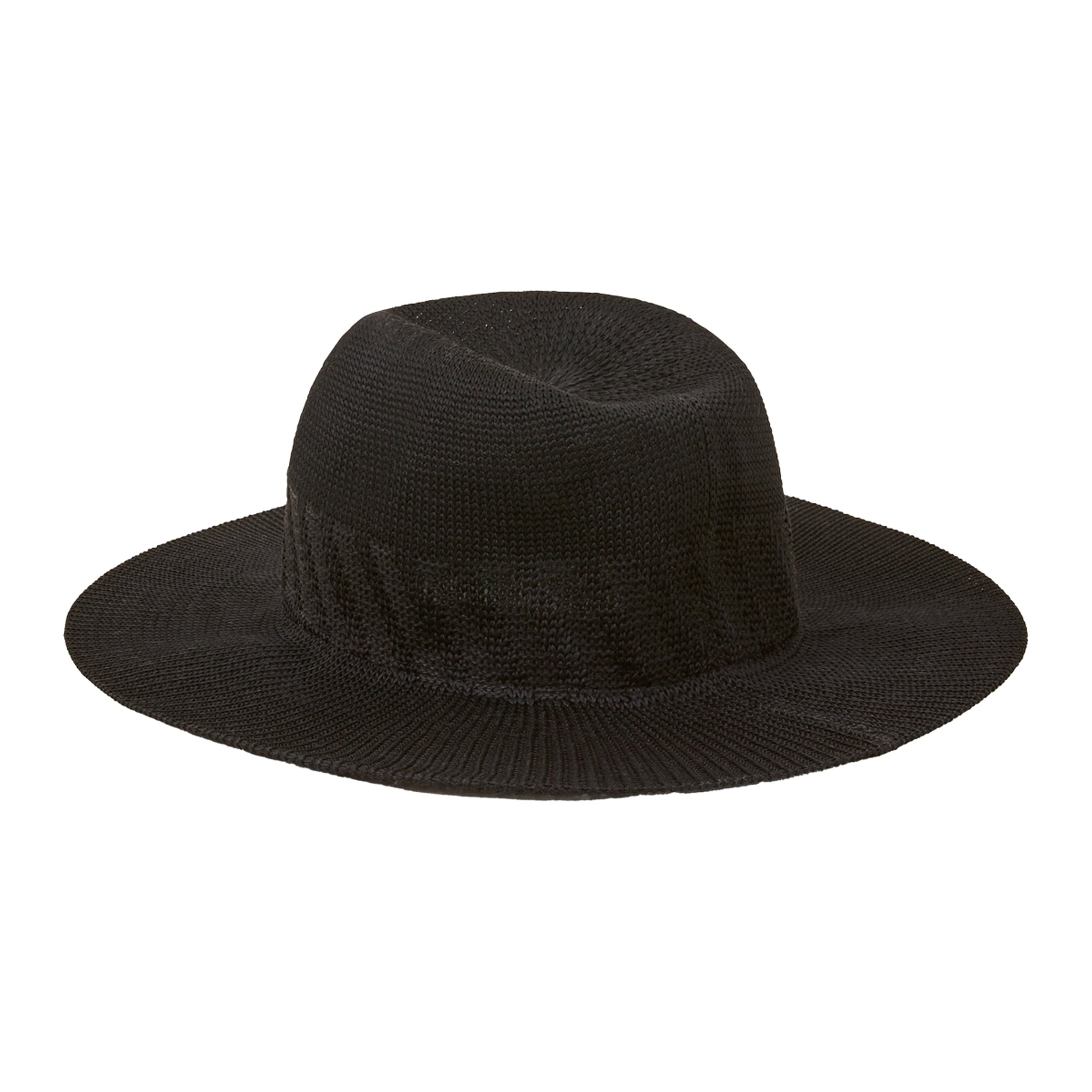 Tightly woven, this flexible fedora can be softly squashed down to pack easily into your tote bag. Finished with a dipped crown and wide brim, keep it at arms reach on those sunny winter getaways. Black