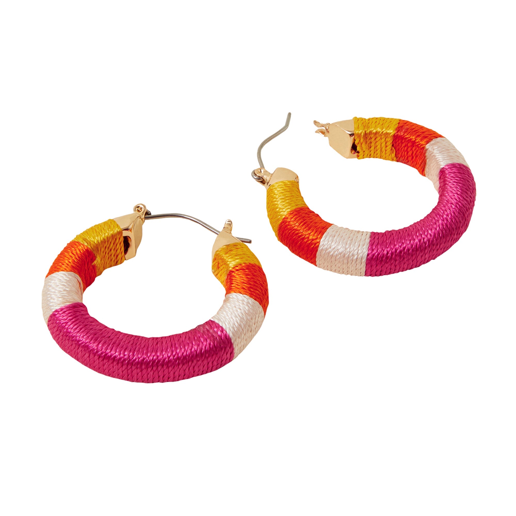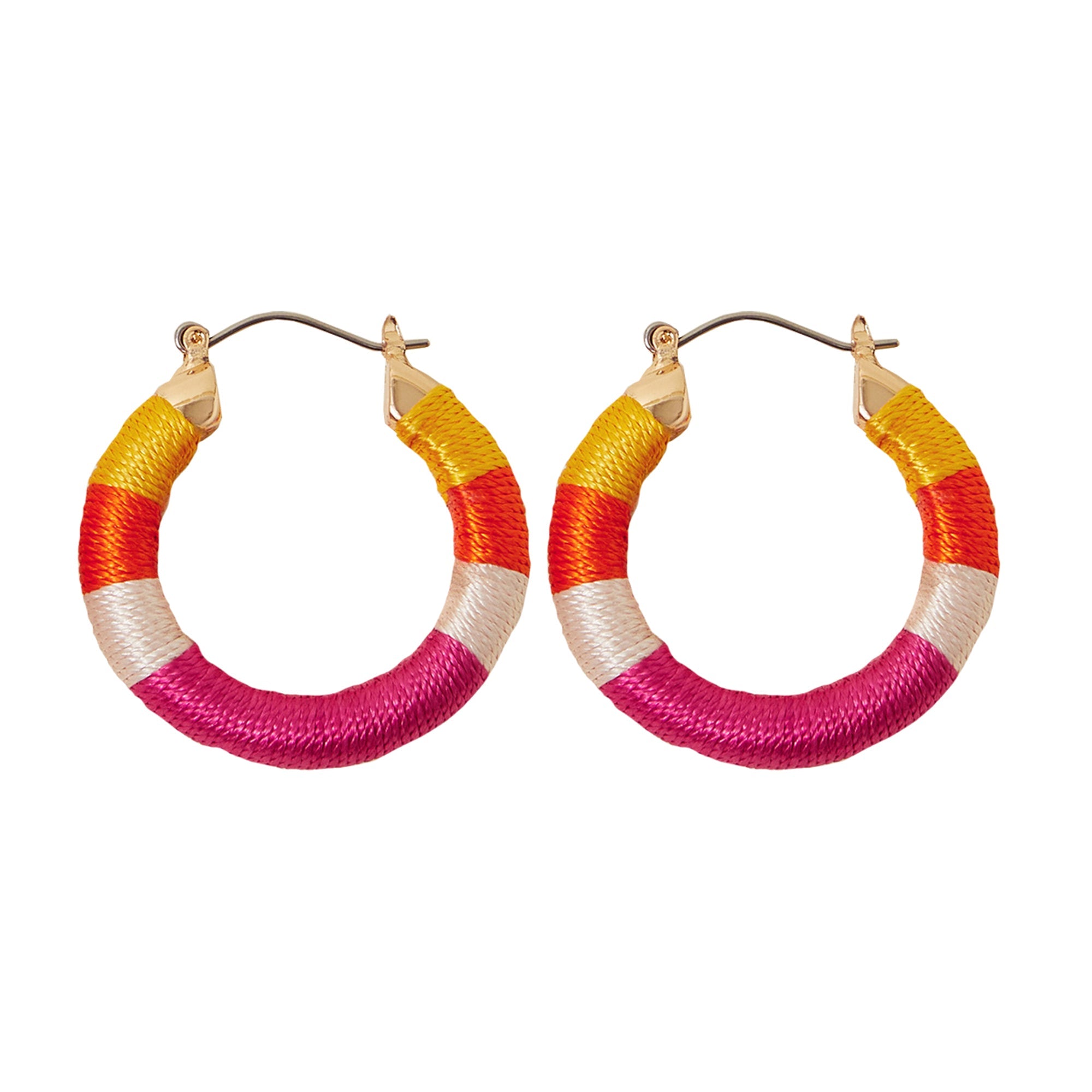 Accessorize London Women's Pink Chunky Thread Stripe Hoop Earrings