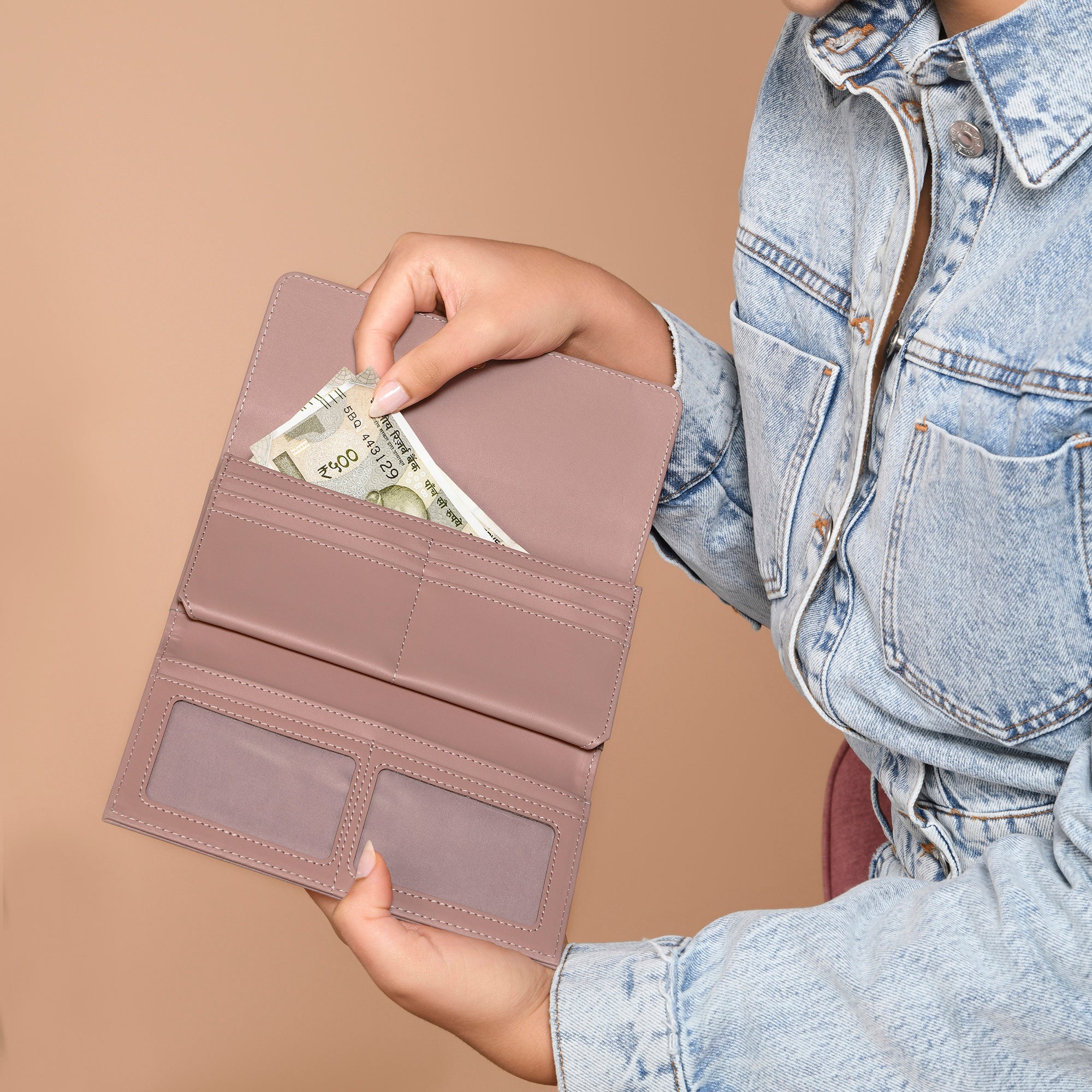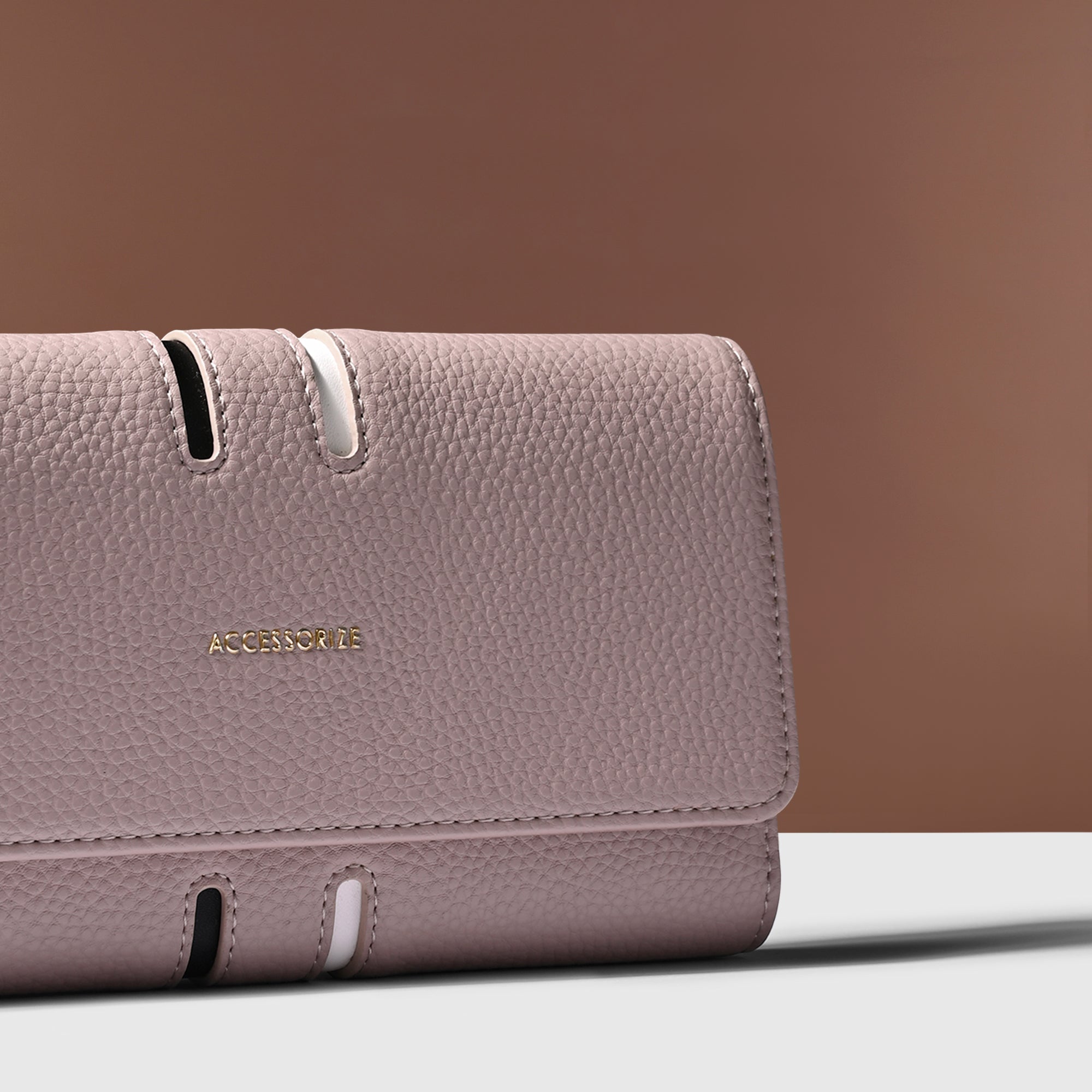 Enhance your style with this classy women's wallet featuring trendy stripe detailing. It's designed to keep your essentials organized and secure. With a spacious cash compartment, six card slots, two ID slots, and a long slip pocket, it's both fashionable and functional. Plus, it's easy to close with a convenient button closure