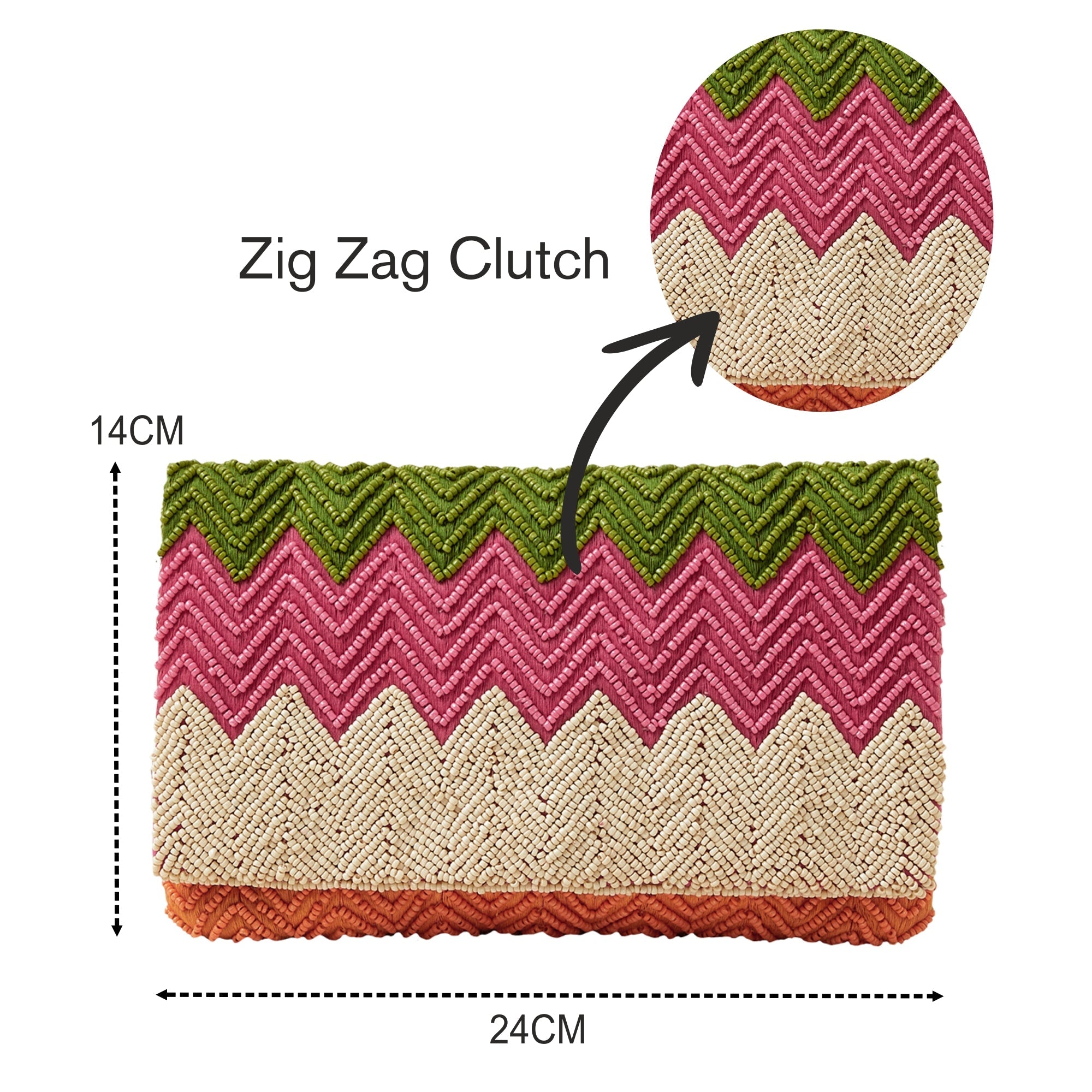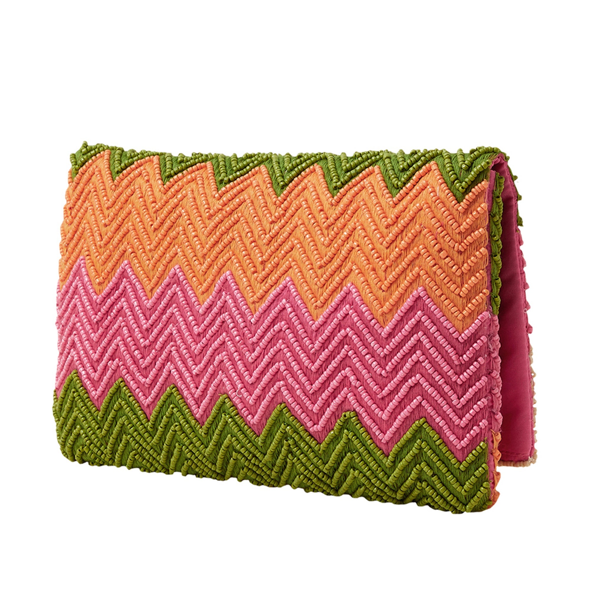 Accessorize London Women's Pink Zig Zag Clutch Bag