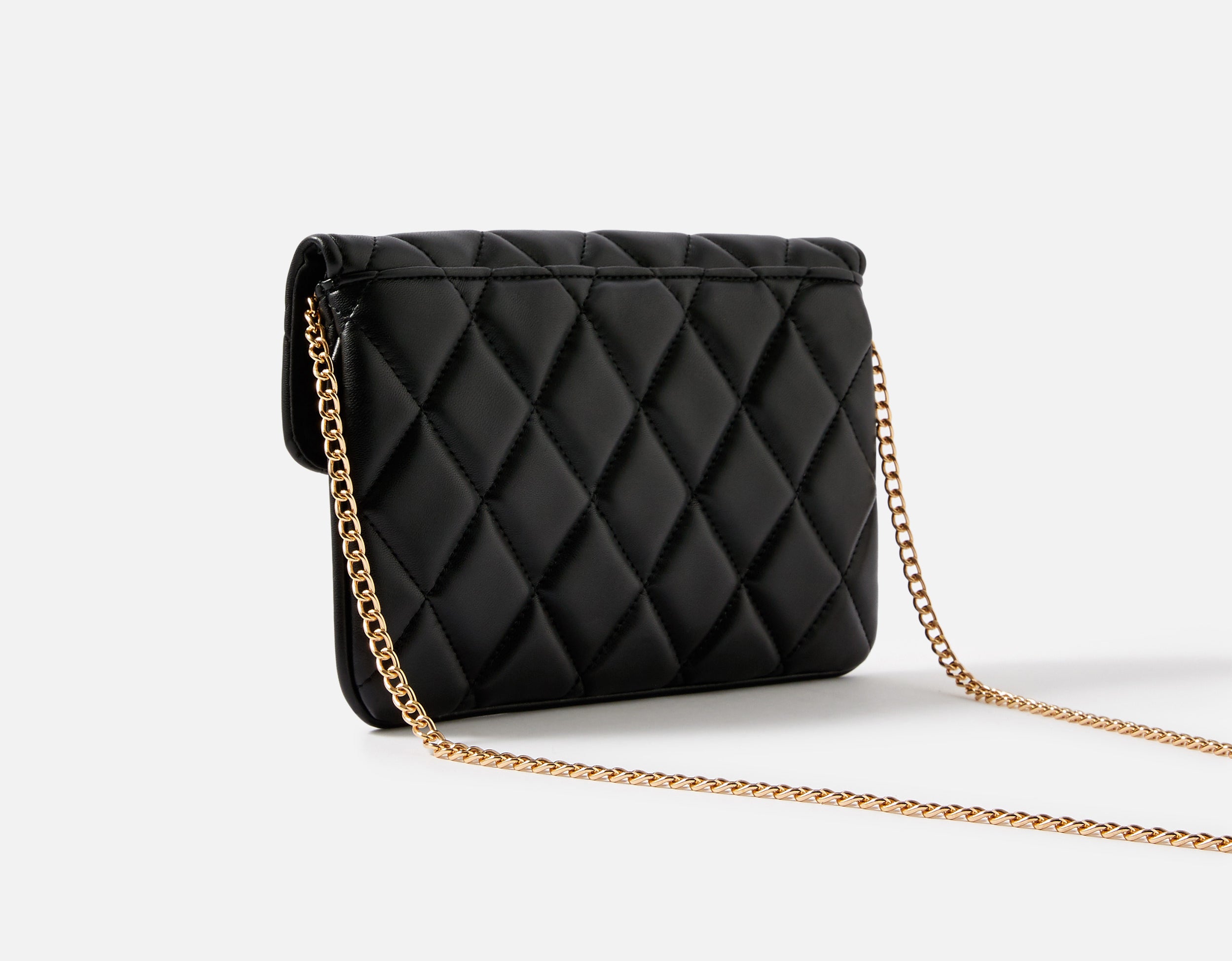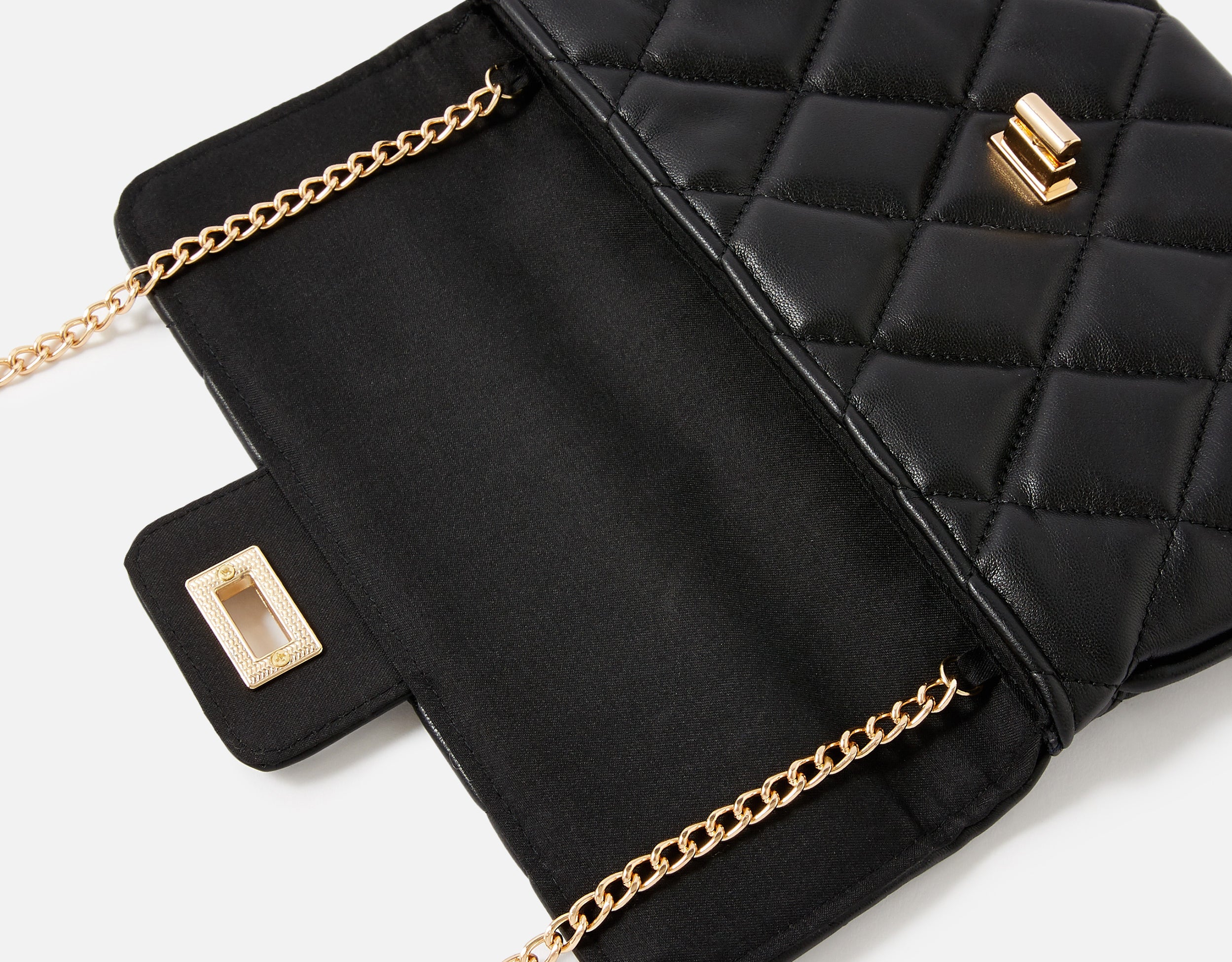 Designed to hold all your evening essentials whilst adding a touch of chic to your look, this bag can be held as a classic clutch or worn cross-body with a fine metal chain. Its quilted finish and turn-lock clasp creates a luxurious look, for less! Available in red, black and cream. Black