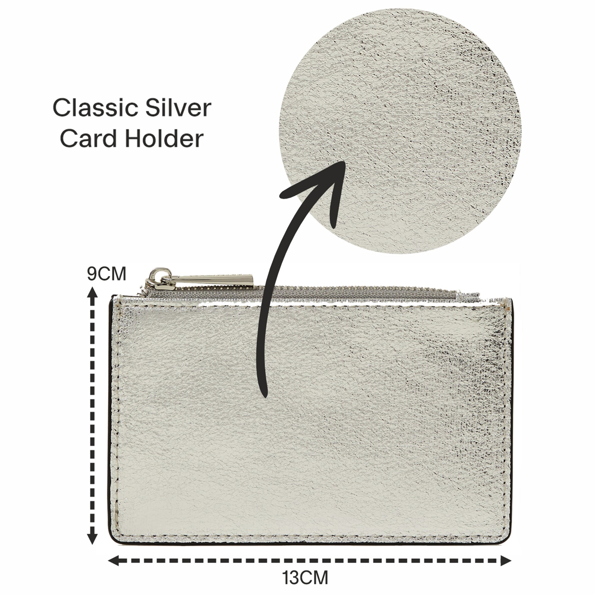 Forget scrambling around at the bottom of your bag, this card holder holds your cards, notes and loose coins all-in-one! Designed in faux leather, it features five card slots and zip up pocket.