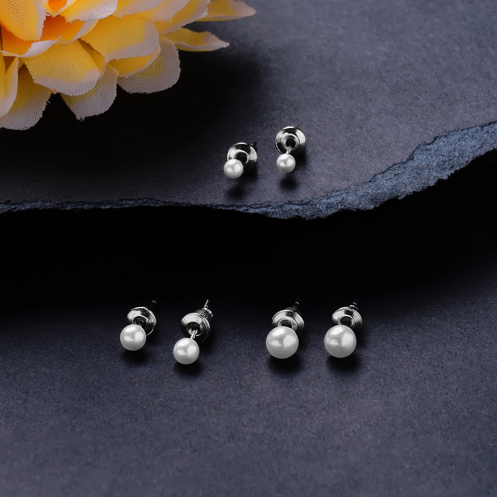 Accessorize London Women's Silver Pearly Studs Pack of Three