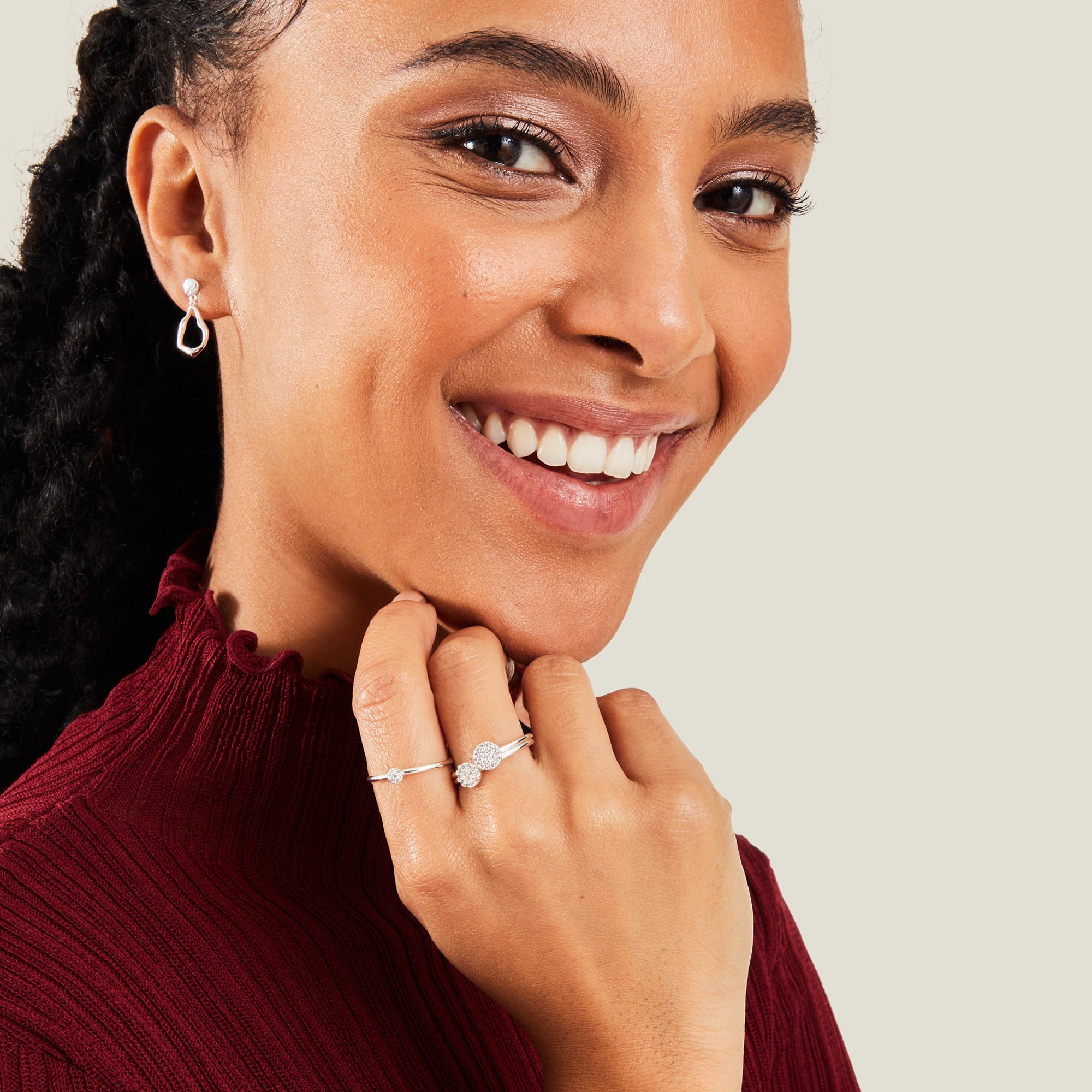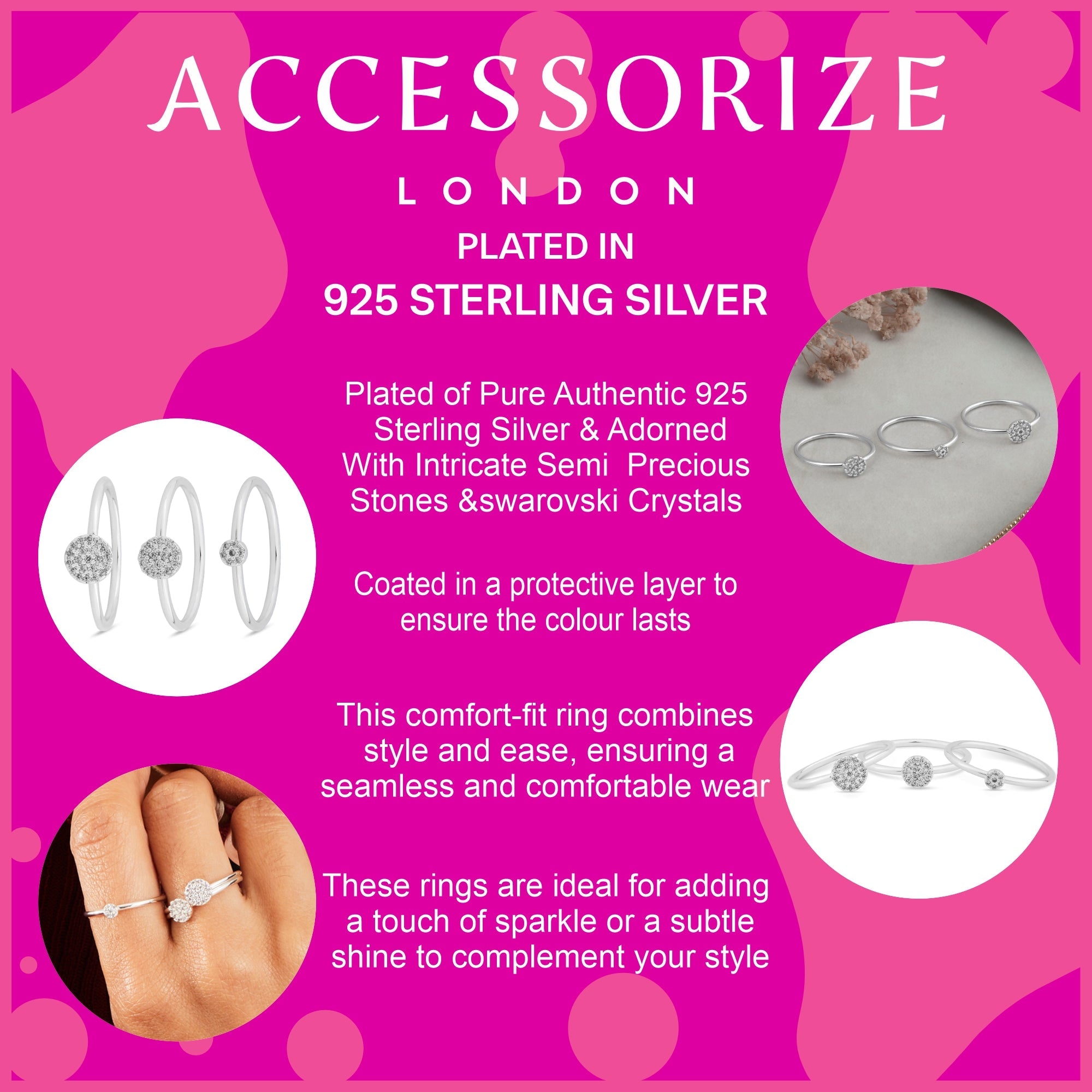 Accessorize London Women's Silver-Plated Cubic Zirconia Rings Silver Pack Of Three-Large