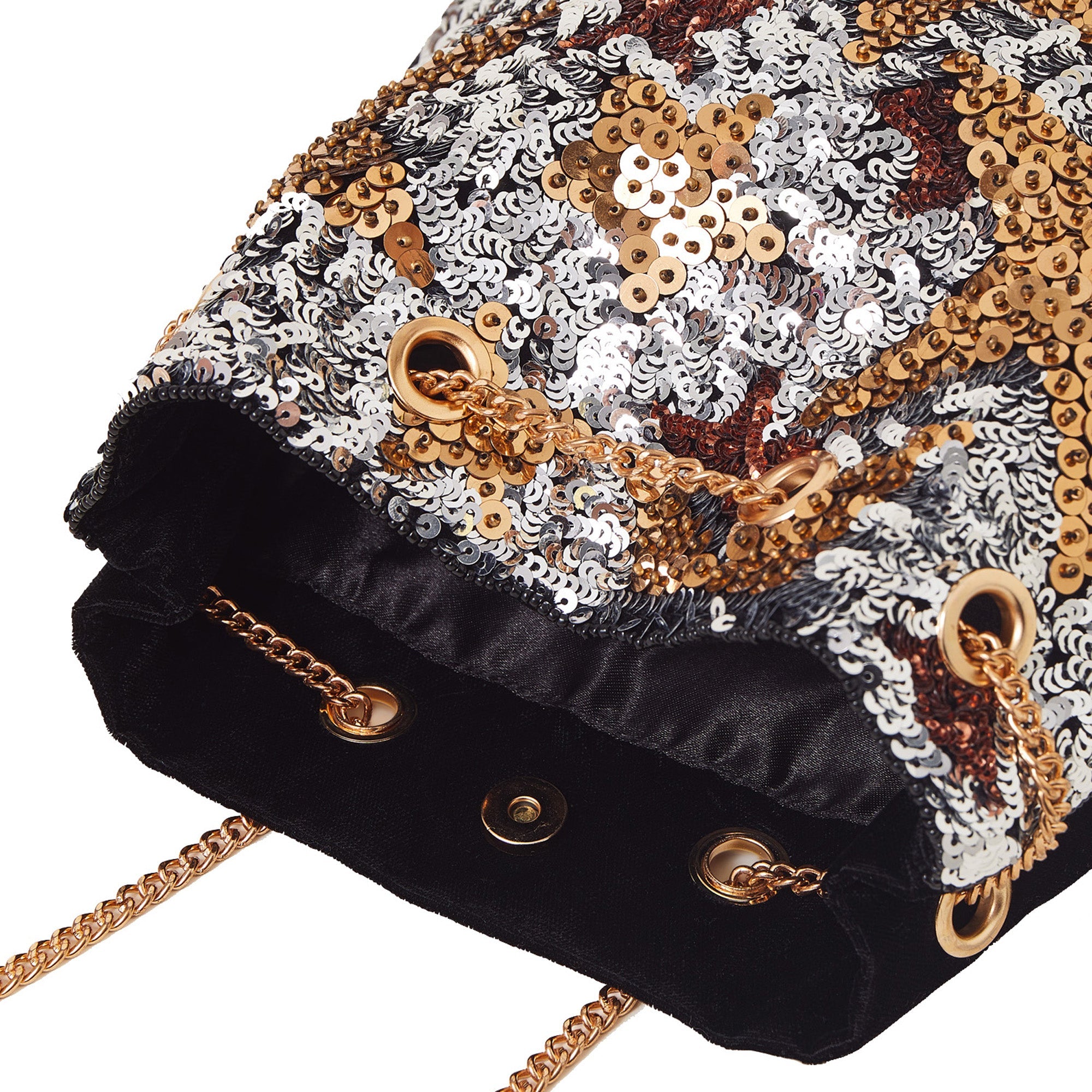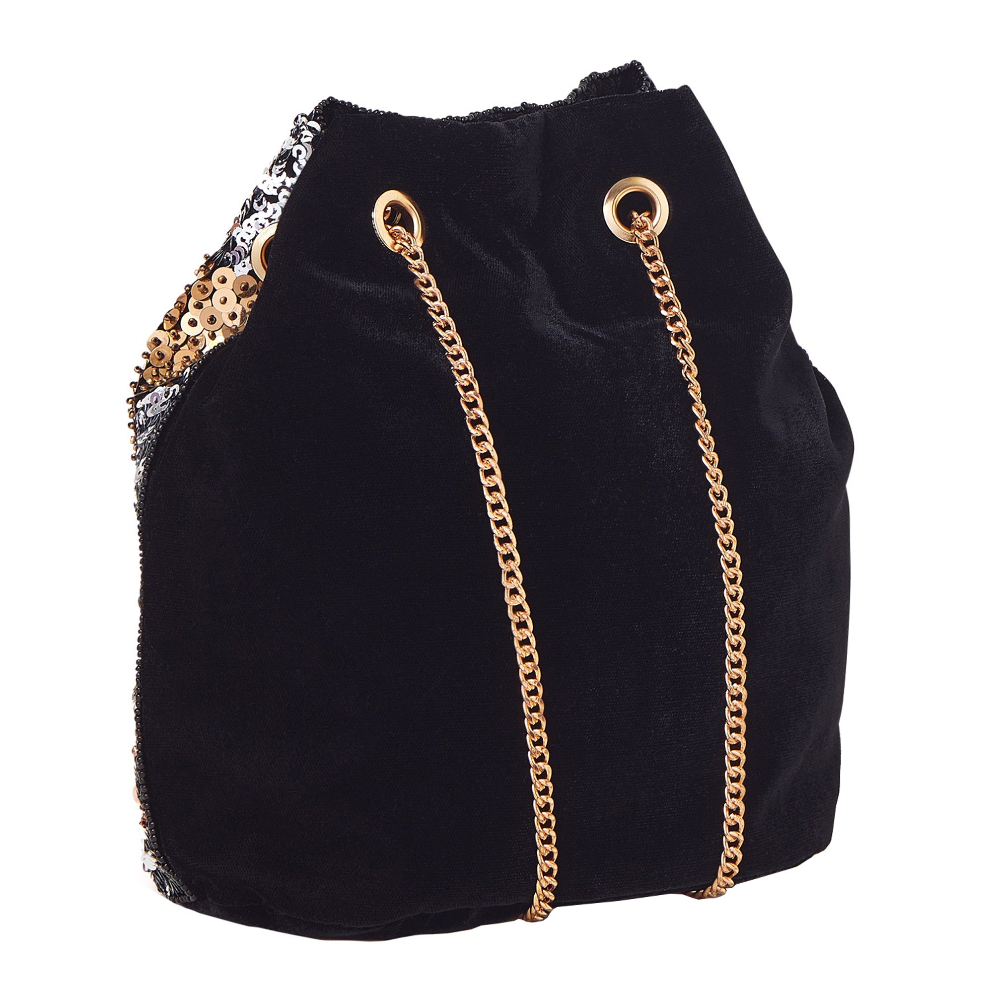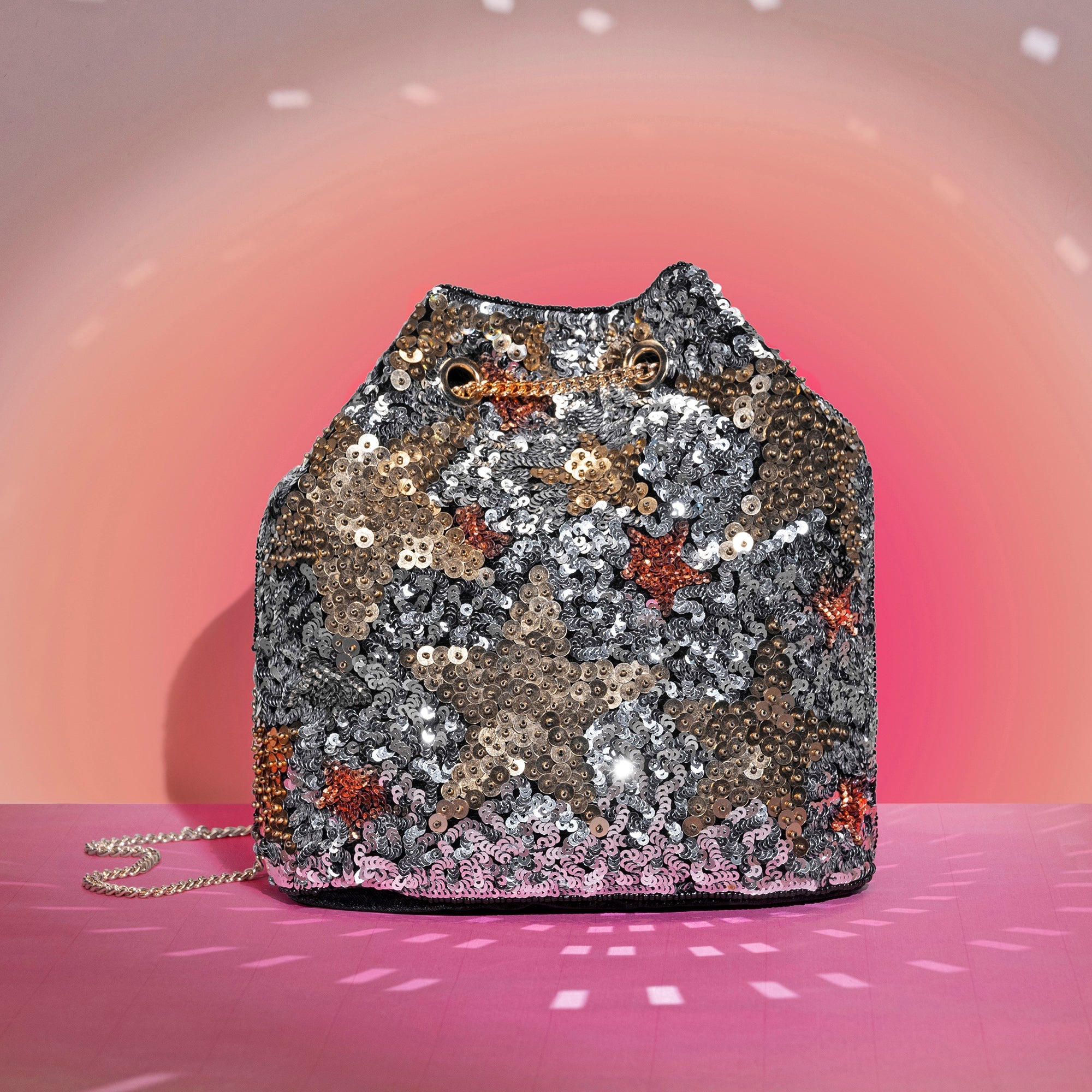 Extend the sparkles all the way down to your accessories with this bag. It's designed with a star pattern to the front, with a black velvet back. It features a chain strap, threaded through the eyelet detailing at the top for a drawstring fastening.