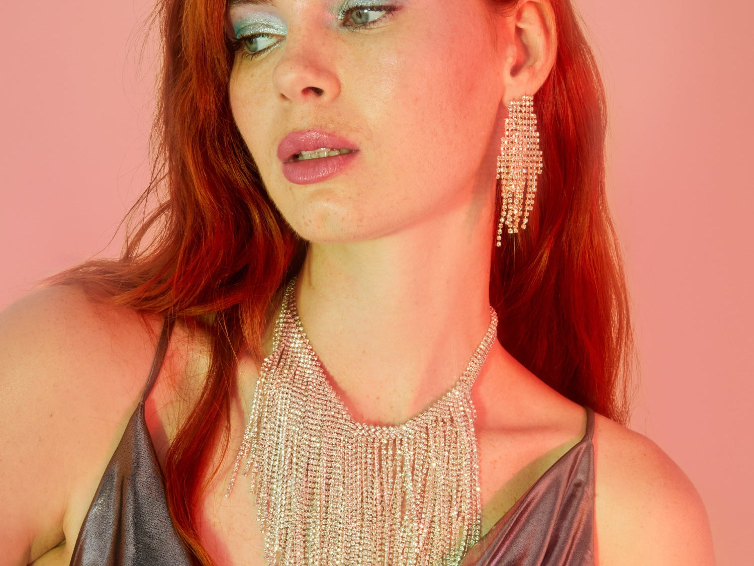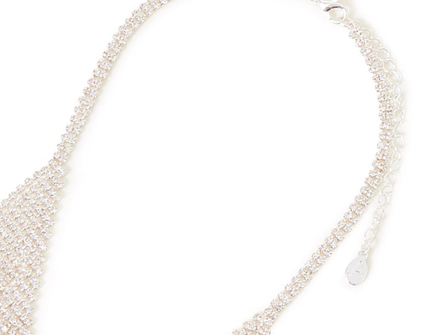 Statement: Made. Glistening with rows, upon rows, upon rows of diamantes, this necklace is sure to sparkle amongst party lights. Finished with a lobster clasp.