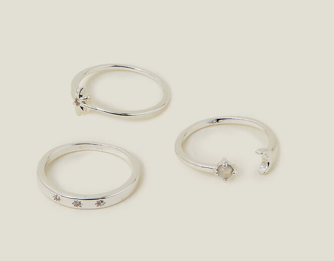 Accessorize London Women's Sterling Silver-Plated Celestial Rings Silver 3-Pack-Medium