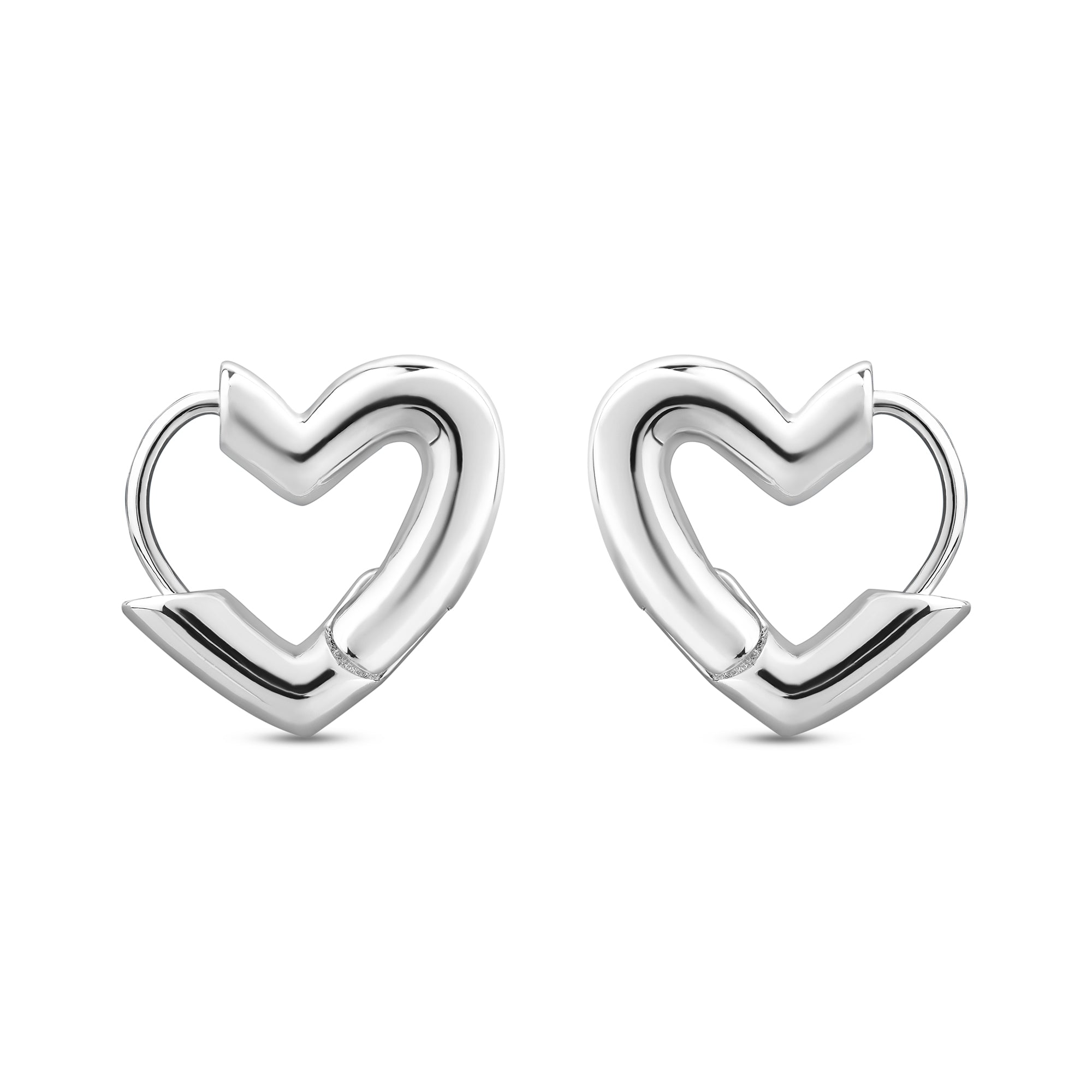 We heart these. Crafted in sterling silver-plated metal, these chubby hoop earrings are designed in a heart profile with a hinged closure. Just lovely. The lever back type lock ensures a secure and convenient fit, providing ease of wear while ensuring the earrings stay in place