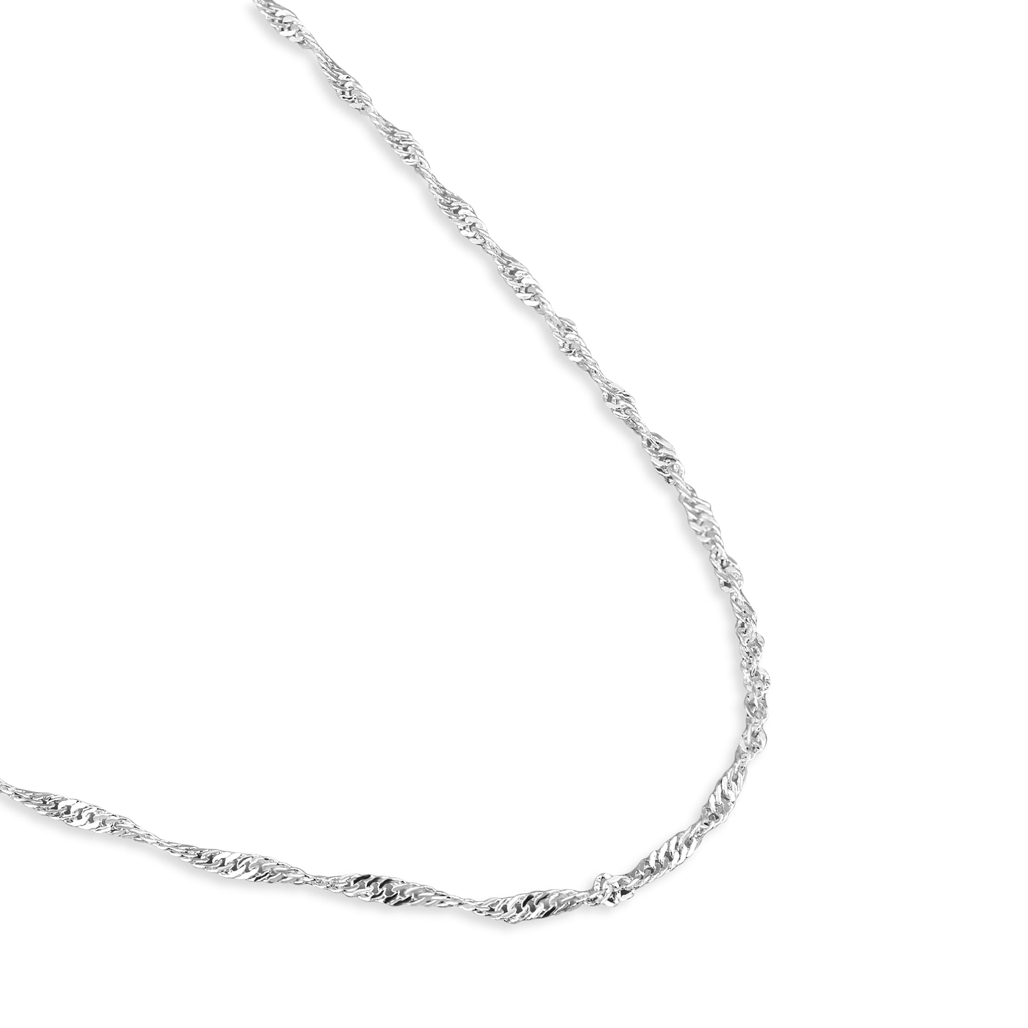 Your everyday chain, but with a twist. Plated in sterling silver, this necklace features a fine, twisted chain that hangs beautifully down to a long length.Fastens with a lobster clasp and extender chain to adjust size and Perfect fit always