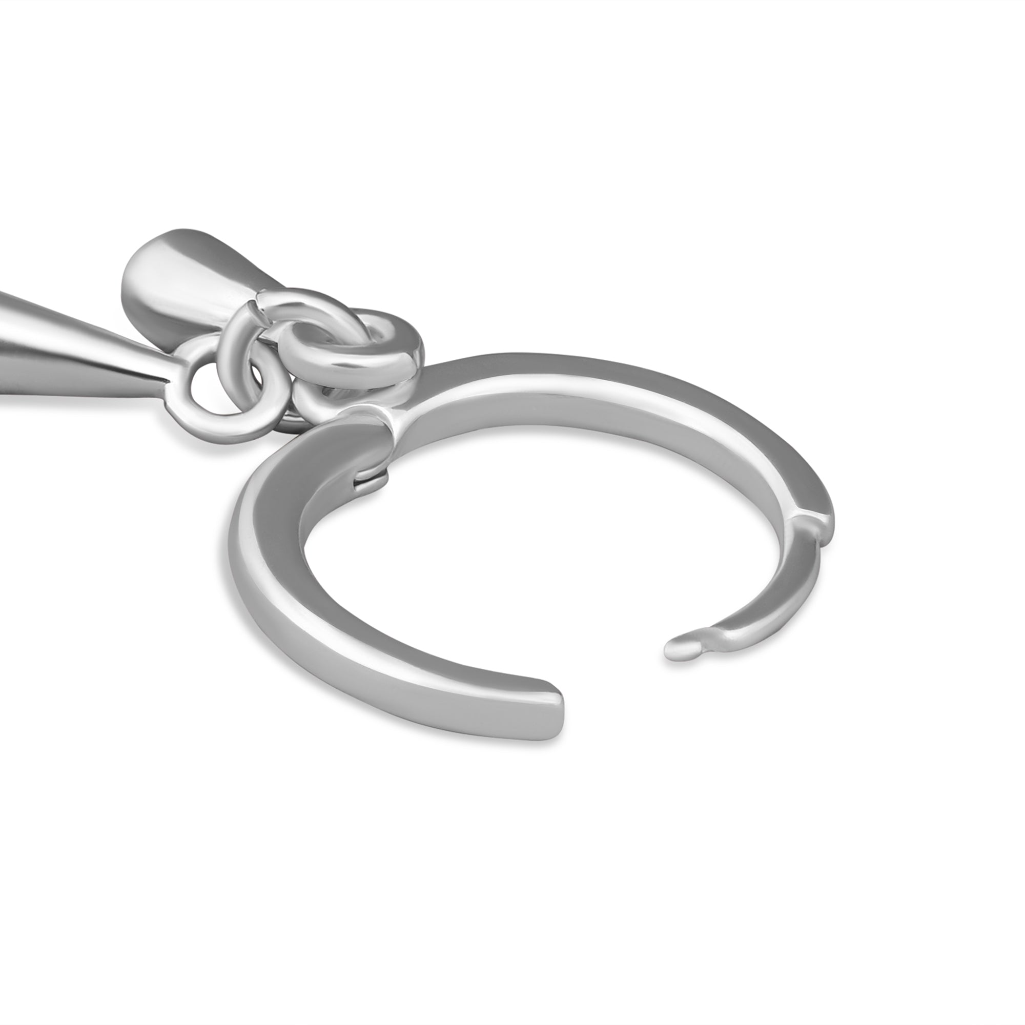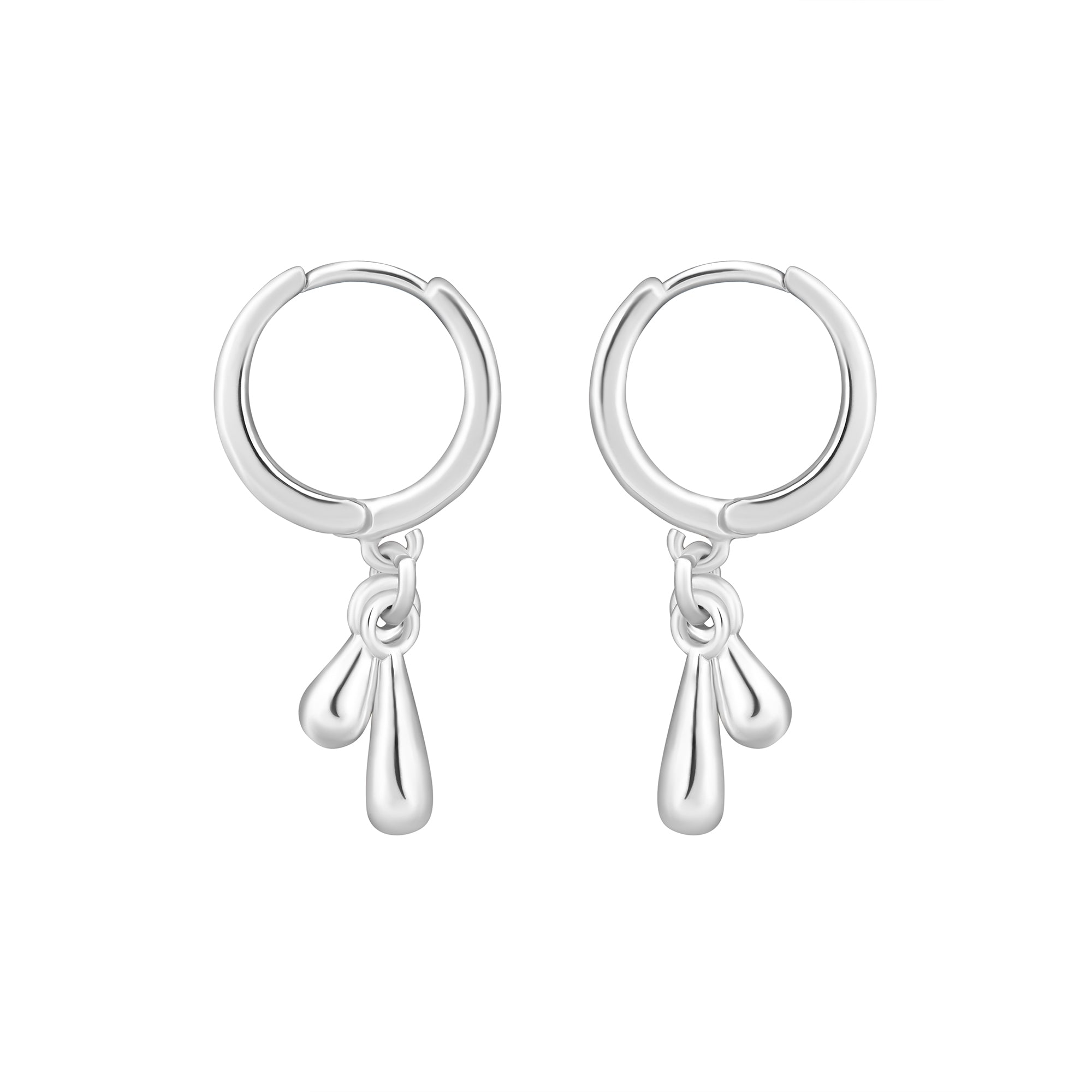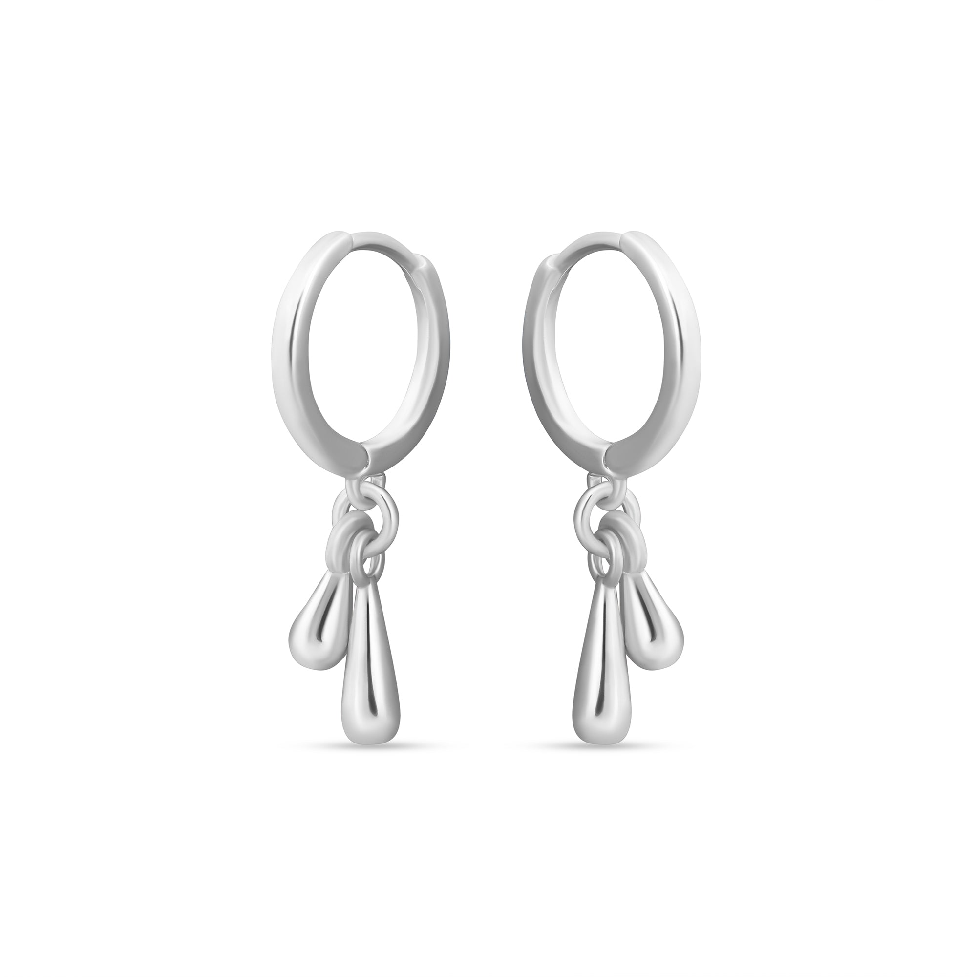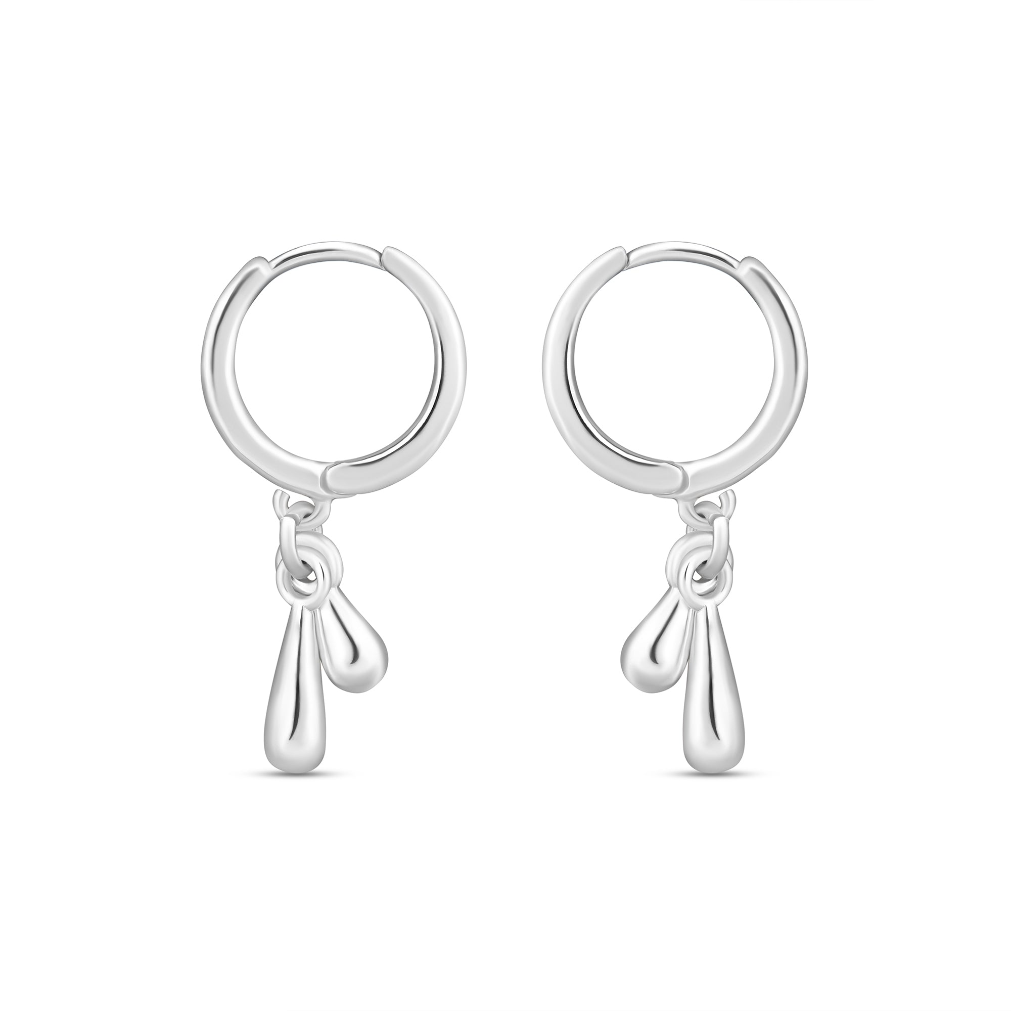 Sweet, simple, shiny. These hoops are ideal for everyday, featuring huggie hoops and molten style drop charms. Plated in sterling silver.