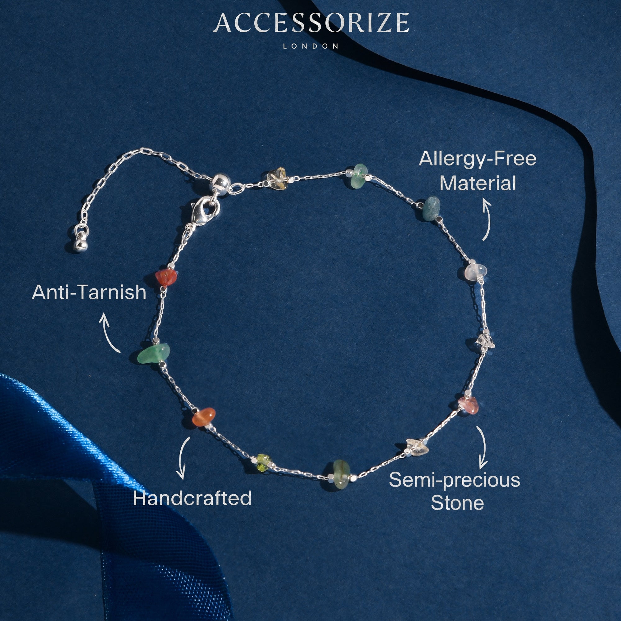 Accessorize London Women's Sterling Silver-Plated Raw Cut Stone Anklet