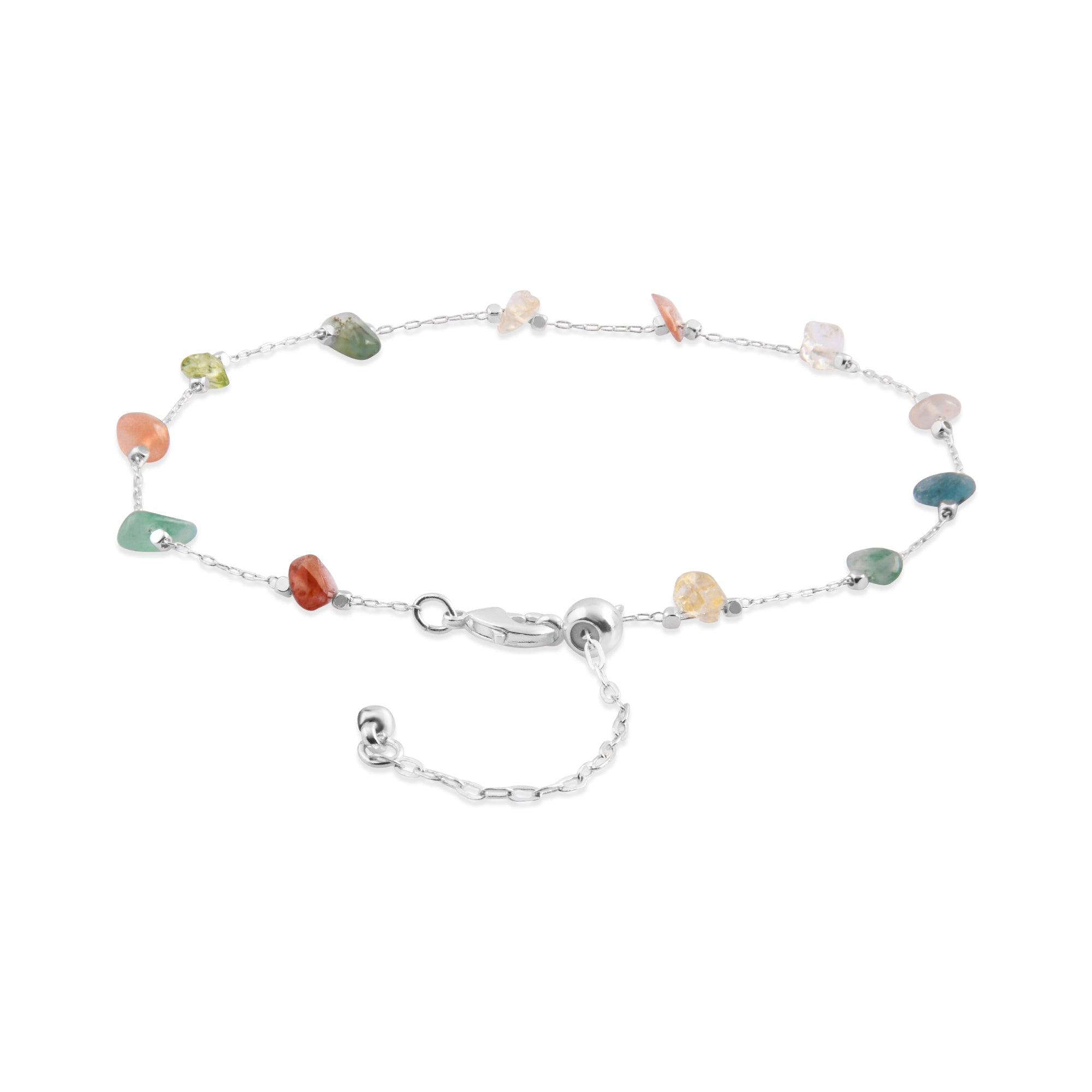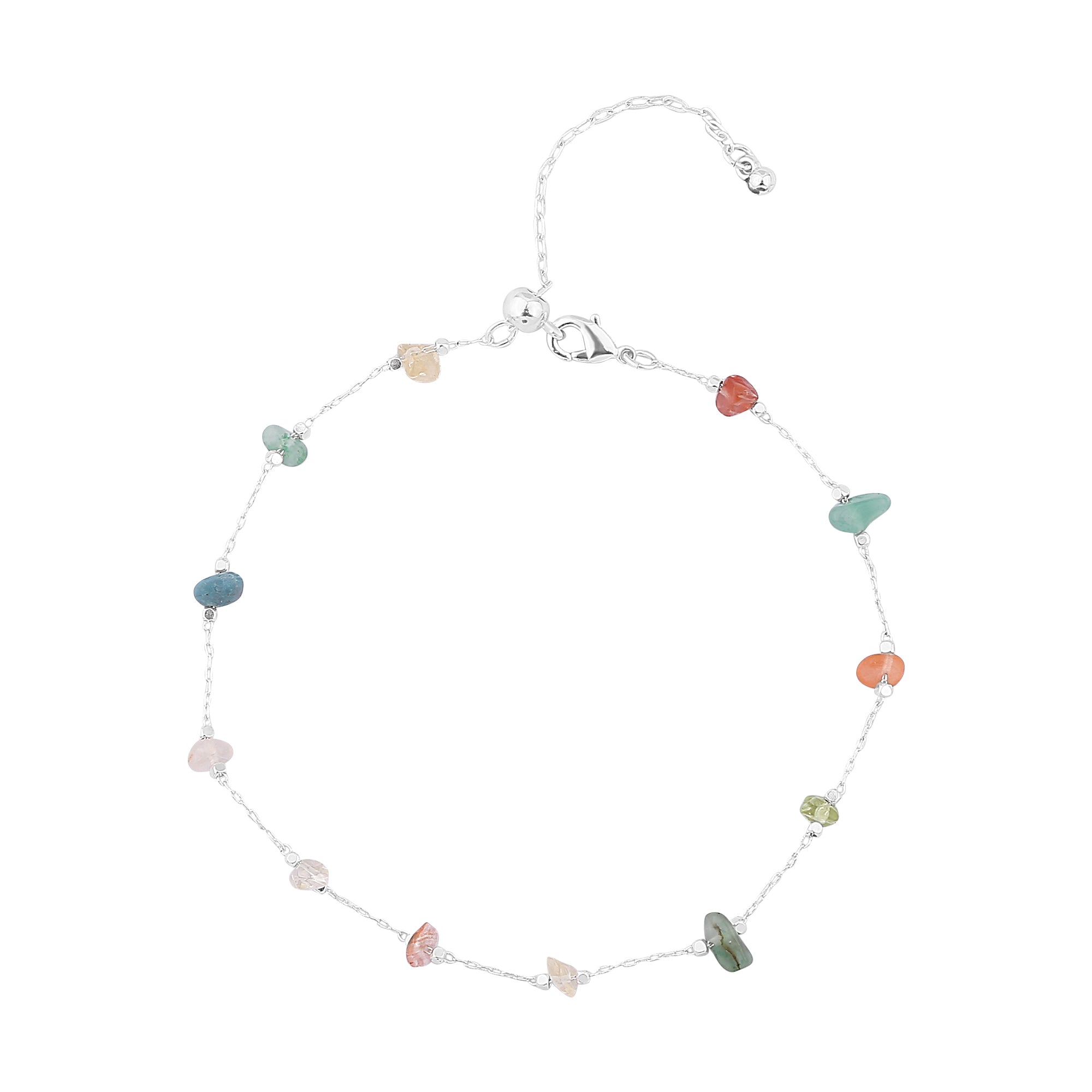 This is your sign to book that holiday. Featuring a sterling silver-plated chain with stationed drops of raw cut stone, this anklet pairs best with sandy toes.