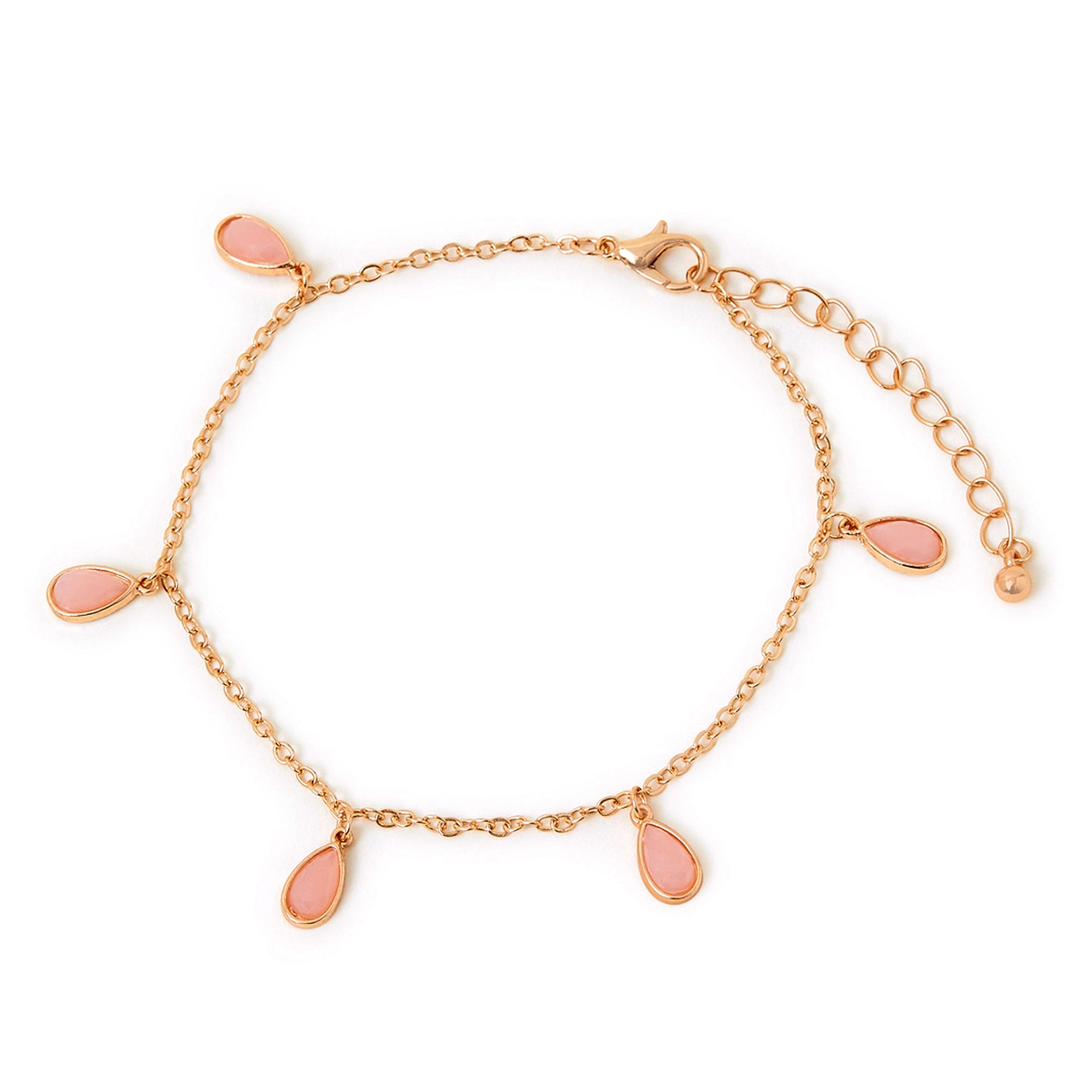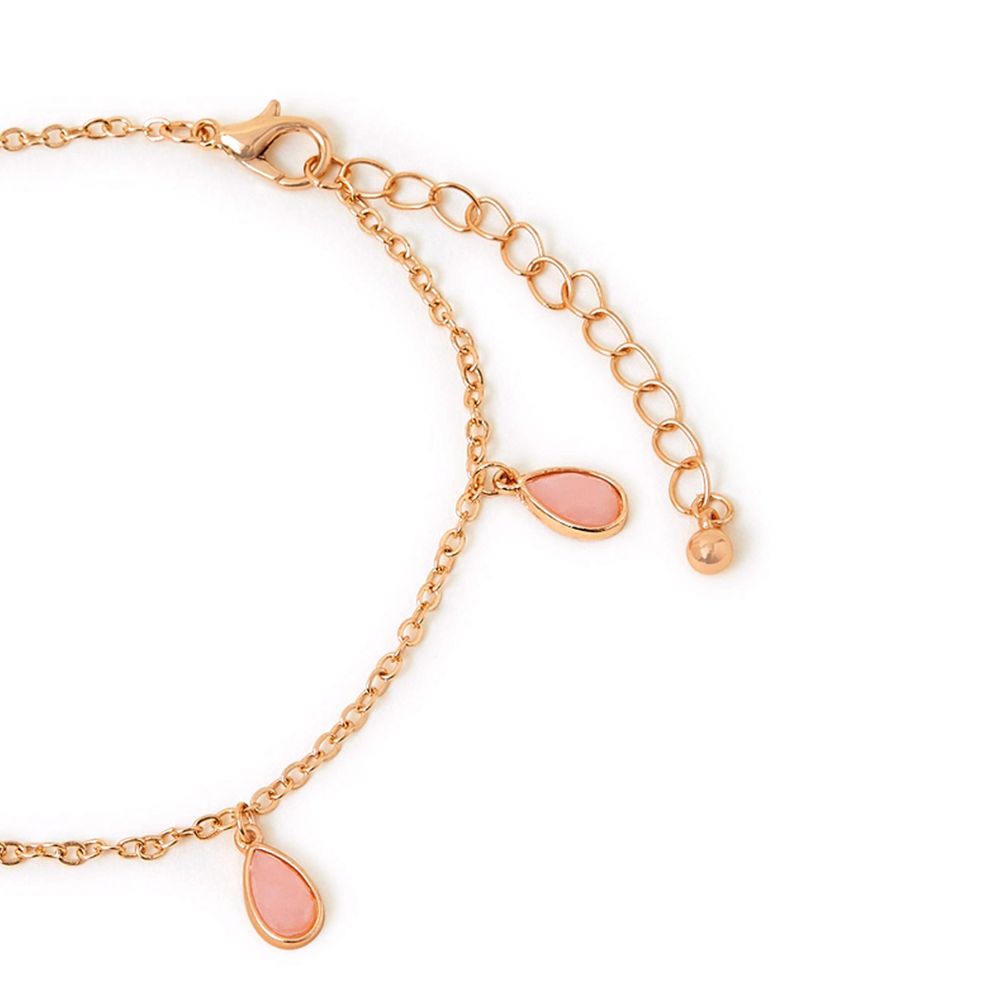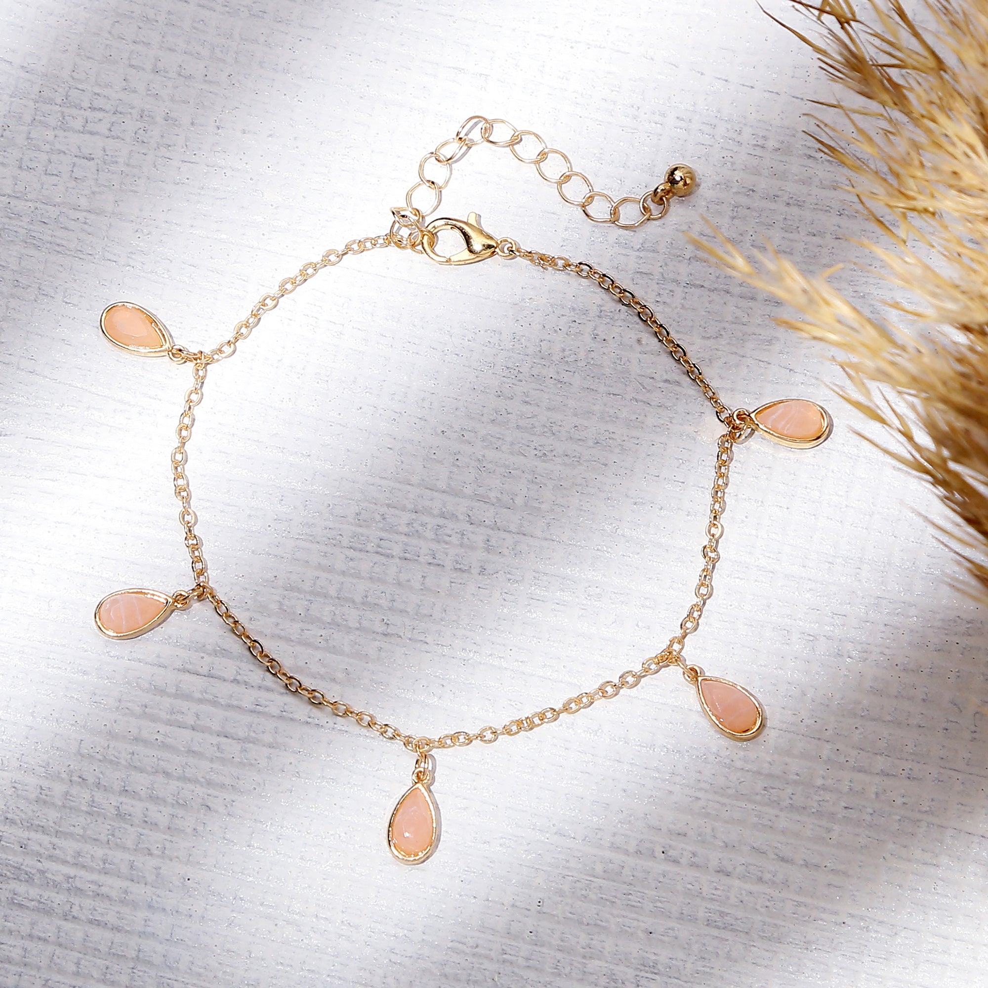 This is your sign to book that holiday. Featuring a gold chain with stationed drops of peach stone, this anklet pairs best with sandy toes.