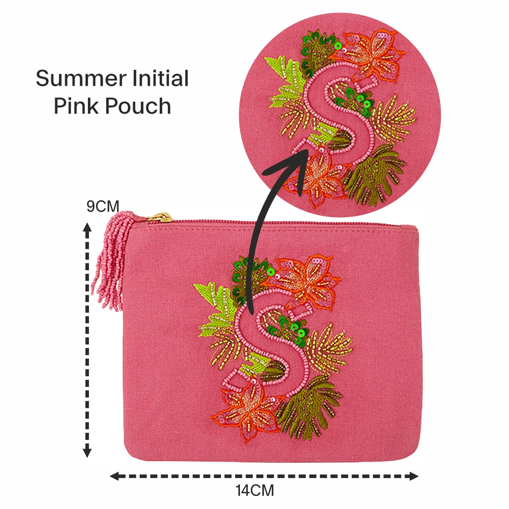 Our Initial pouches make a great birthday gift. They're decorated with a hand embroidered initial on a pretty-in-pink backdrop — perfect for holding coins, make up, and cards.