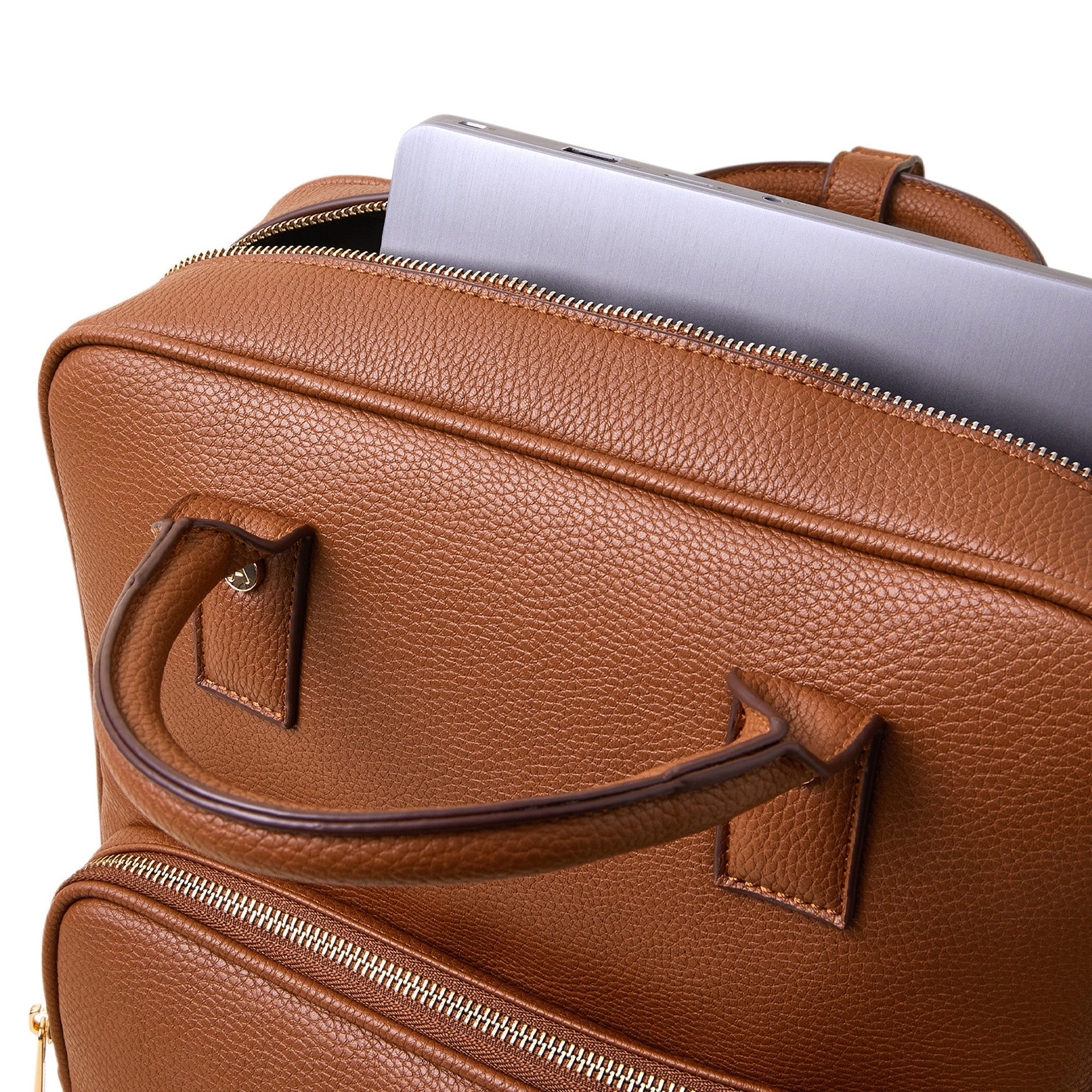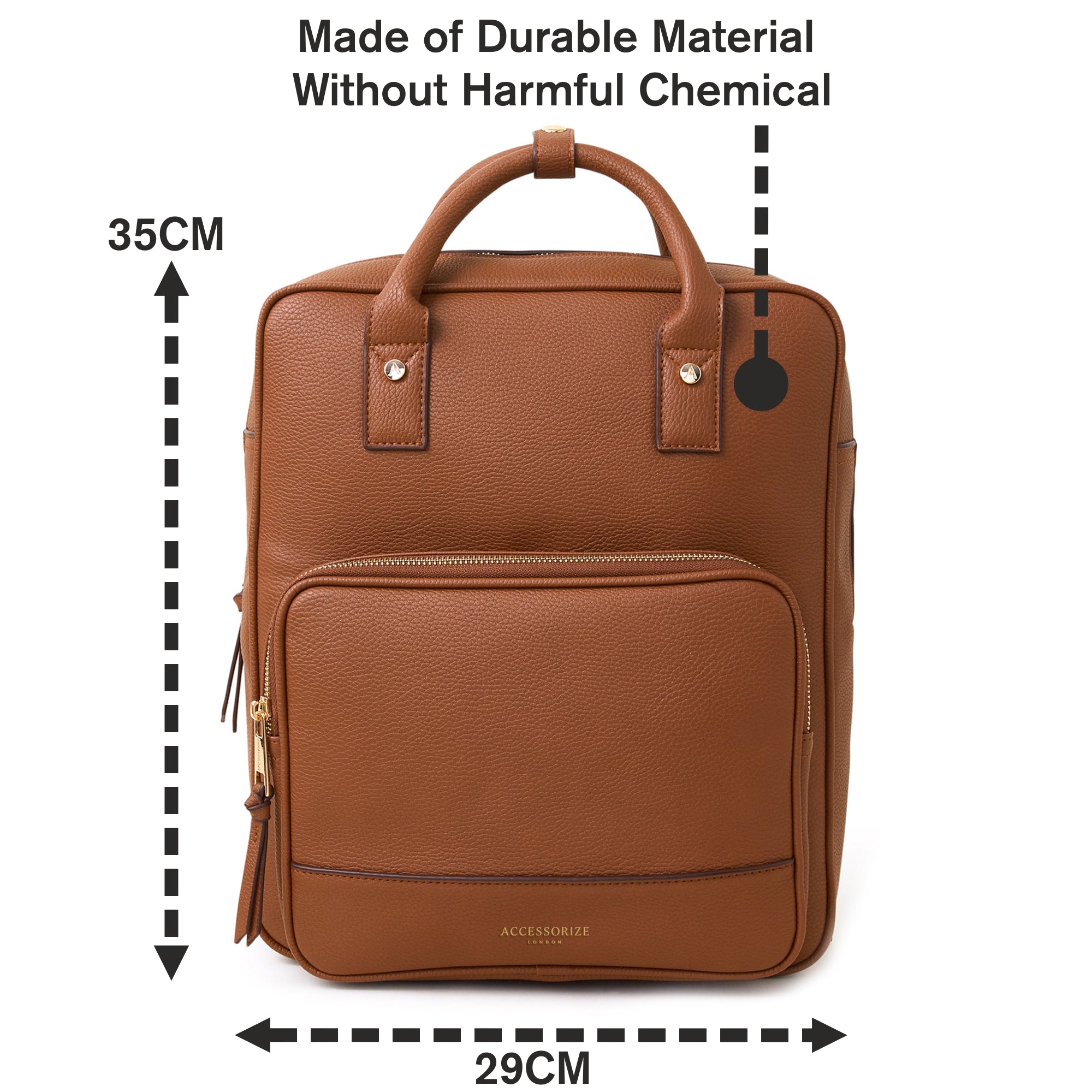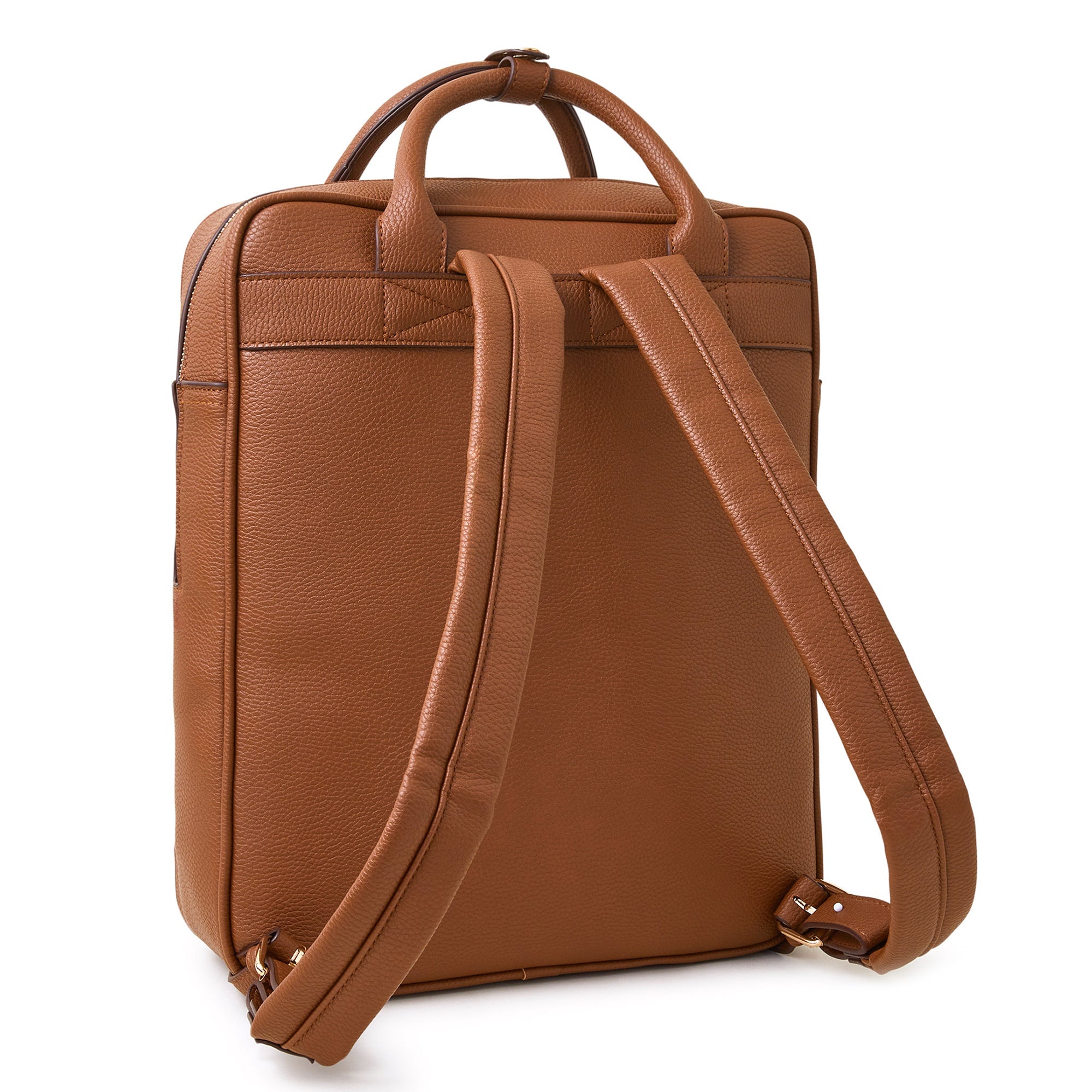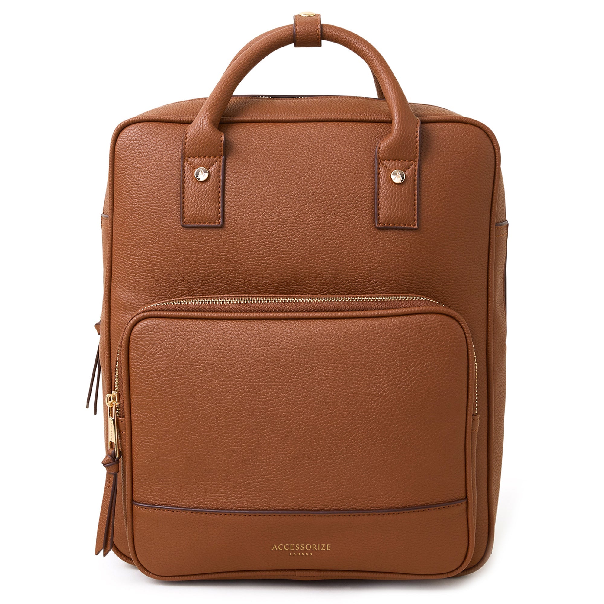 As suitable for early morning commutes as it is for holiday ventures, this bag does it all. Transitioning through the seasons with ease, its spacious interior includes several pockets and compartments to hold your laptop, purse and lanyard. Designed in faux-leather, wear it as a rucksack with the adjustable straps or in-hand for easy access. Fits a 12x8 in laptop.