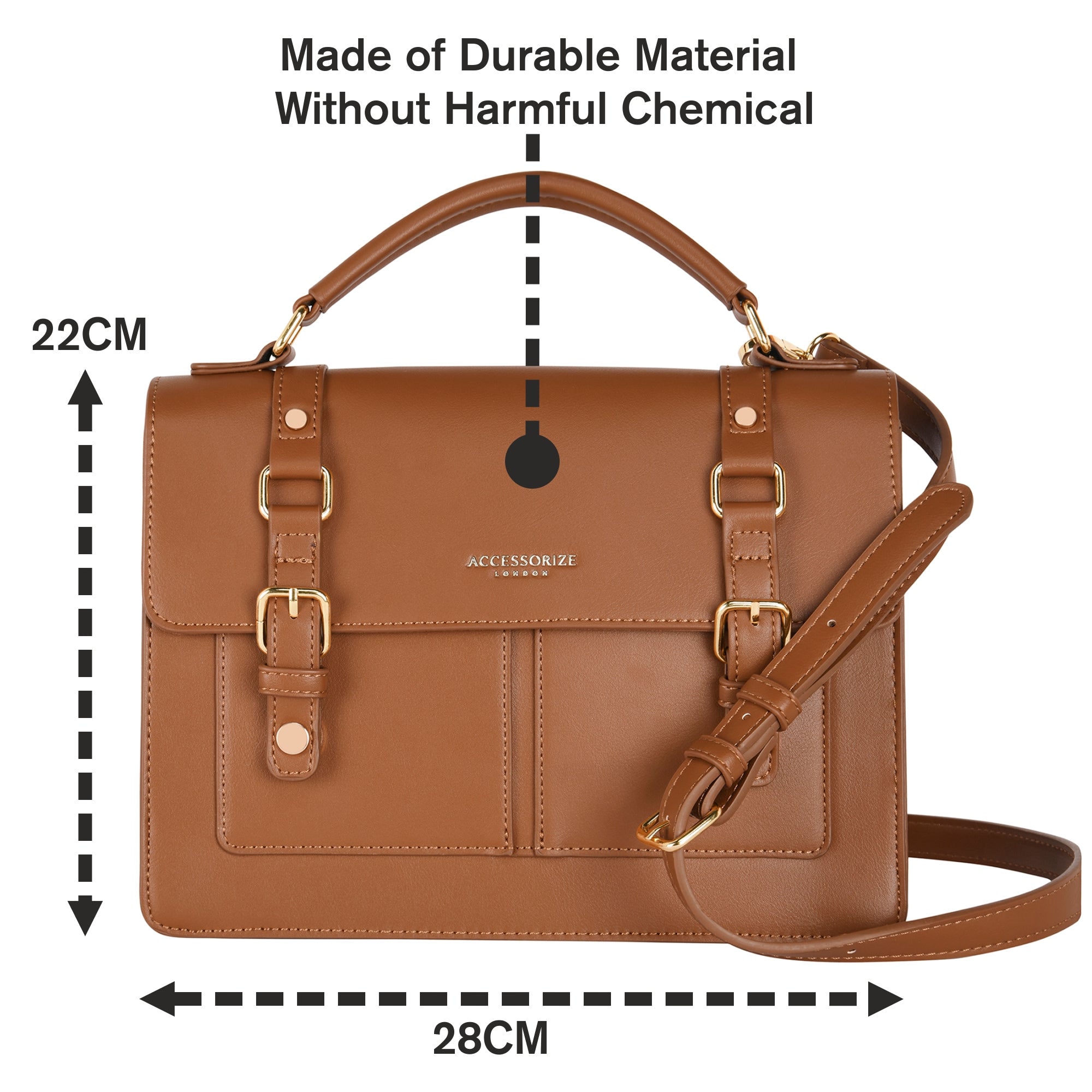 These Synthetic leather satchel bag with Front pocket ,with Gold buckles for old school look.