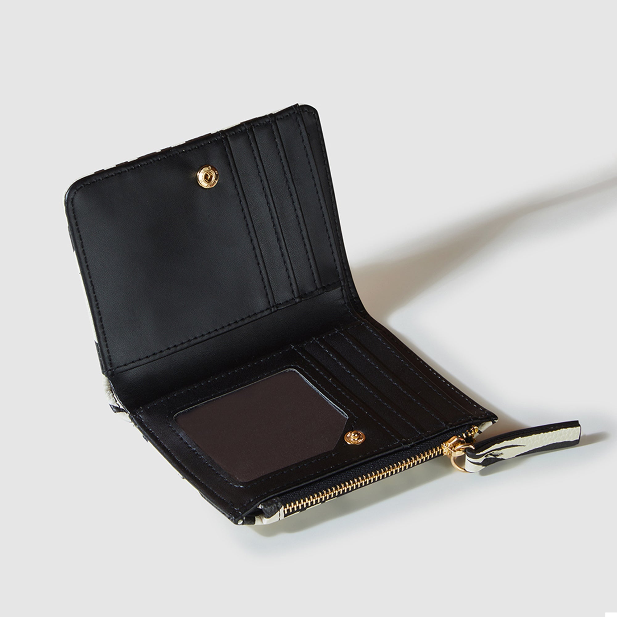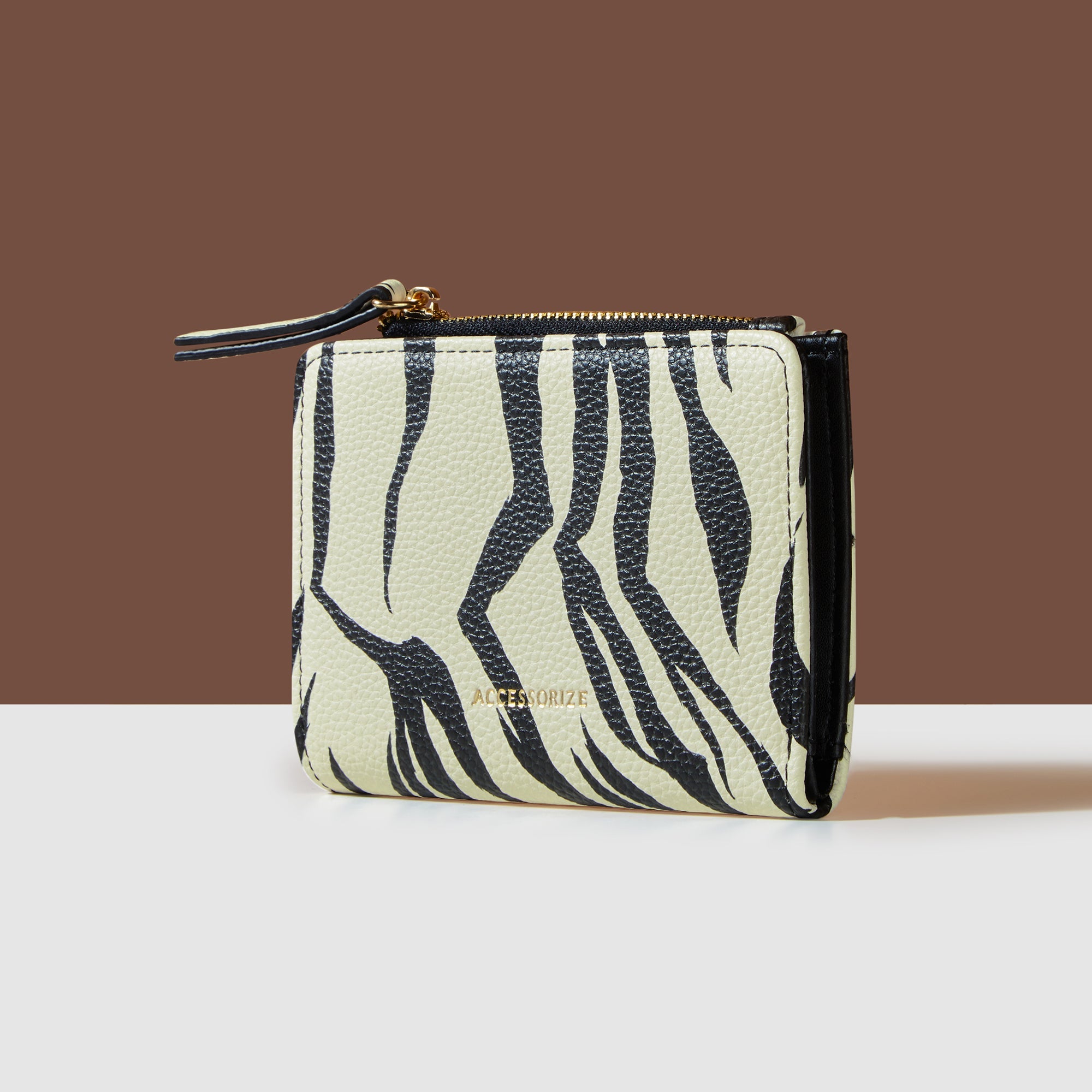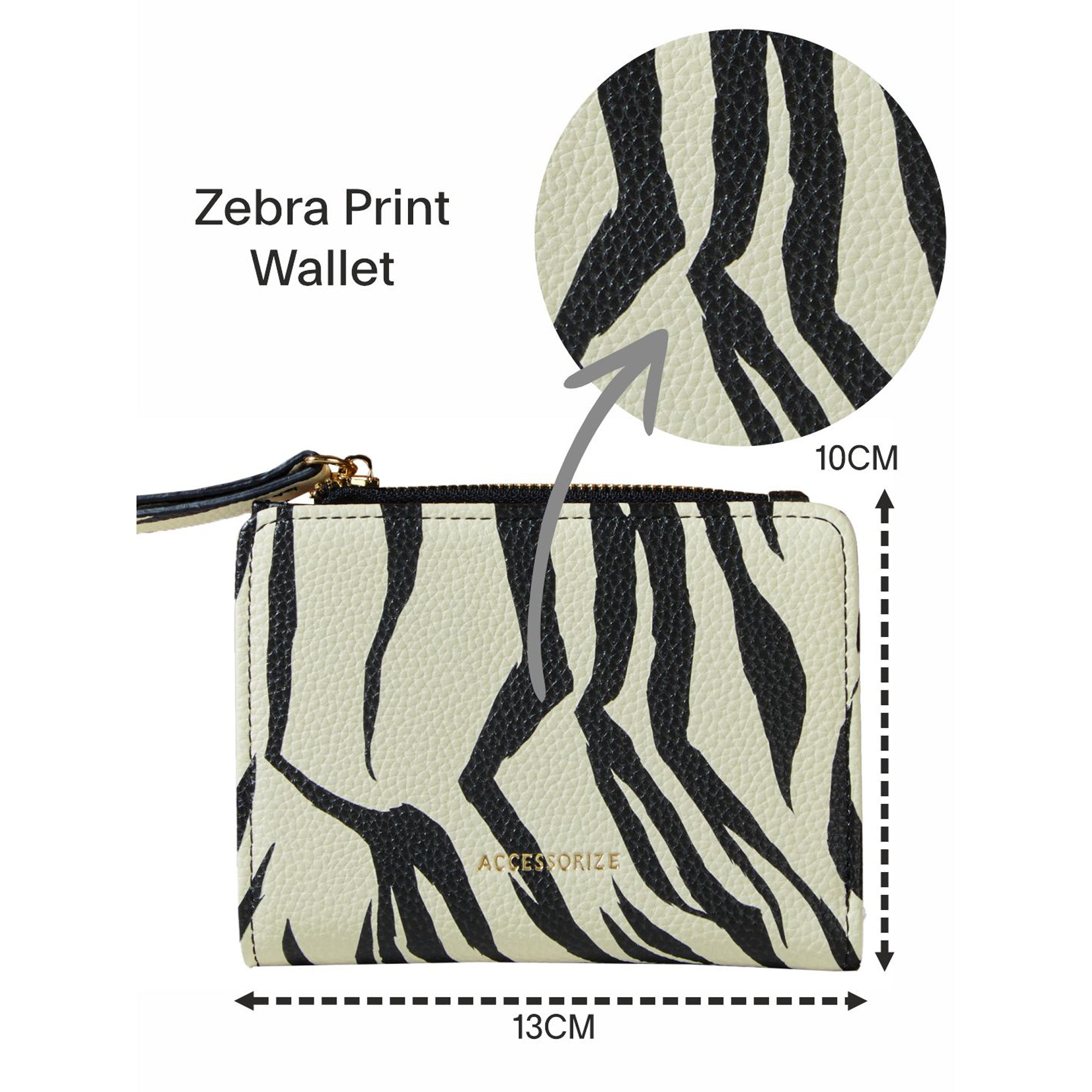 Designed in faux leather, this wild-at-heart zebra print wallet boasts eight card slots and one zip compartment, perfect for storing your bank cards and loose change. Finished with a clear window for your ID.