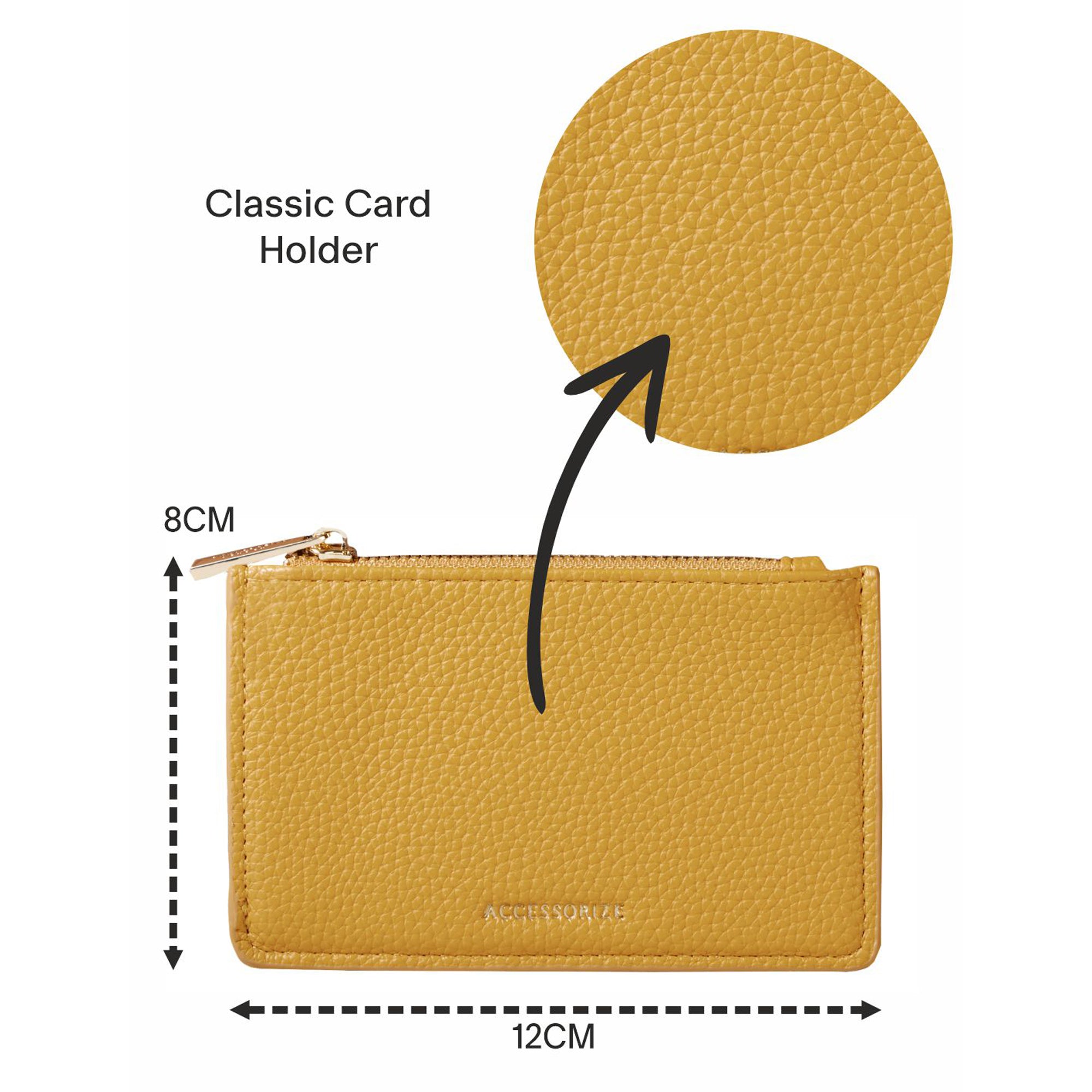 Forget scrambling around at the bottom of your bag, this card holder holds your cards, notes and loose coins all-in-one! Designed in faux leather, it features five card slots and a zip up pocket.