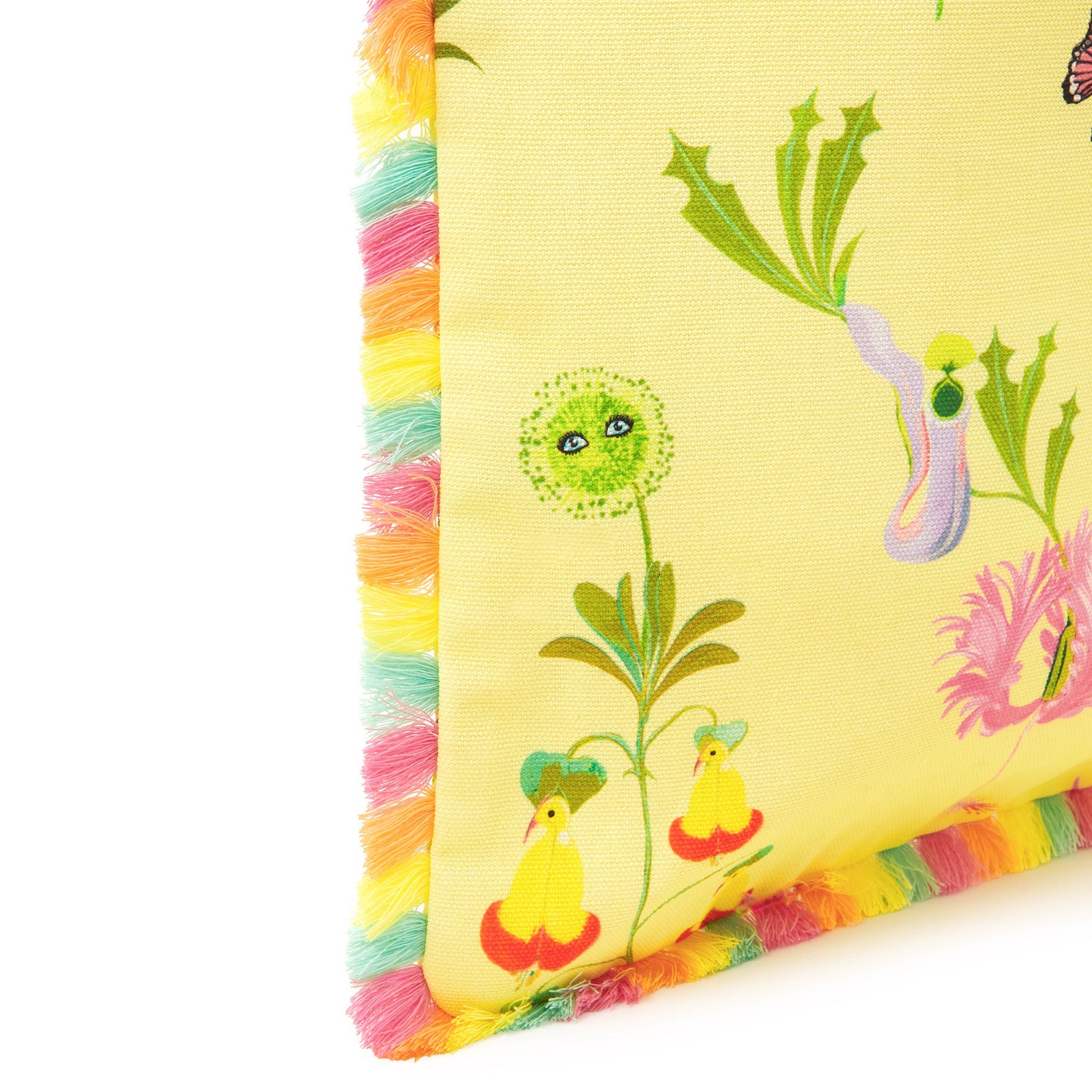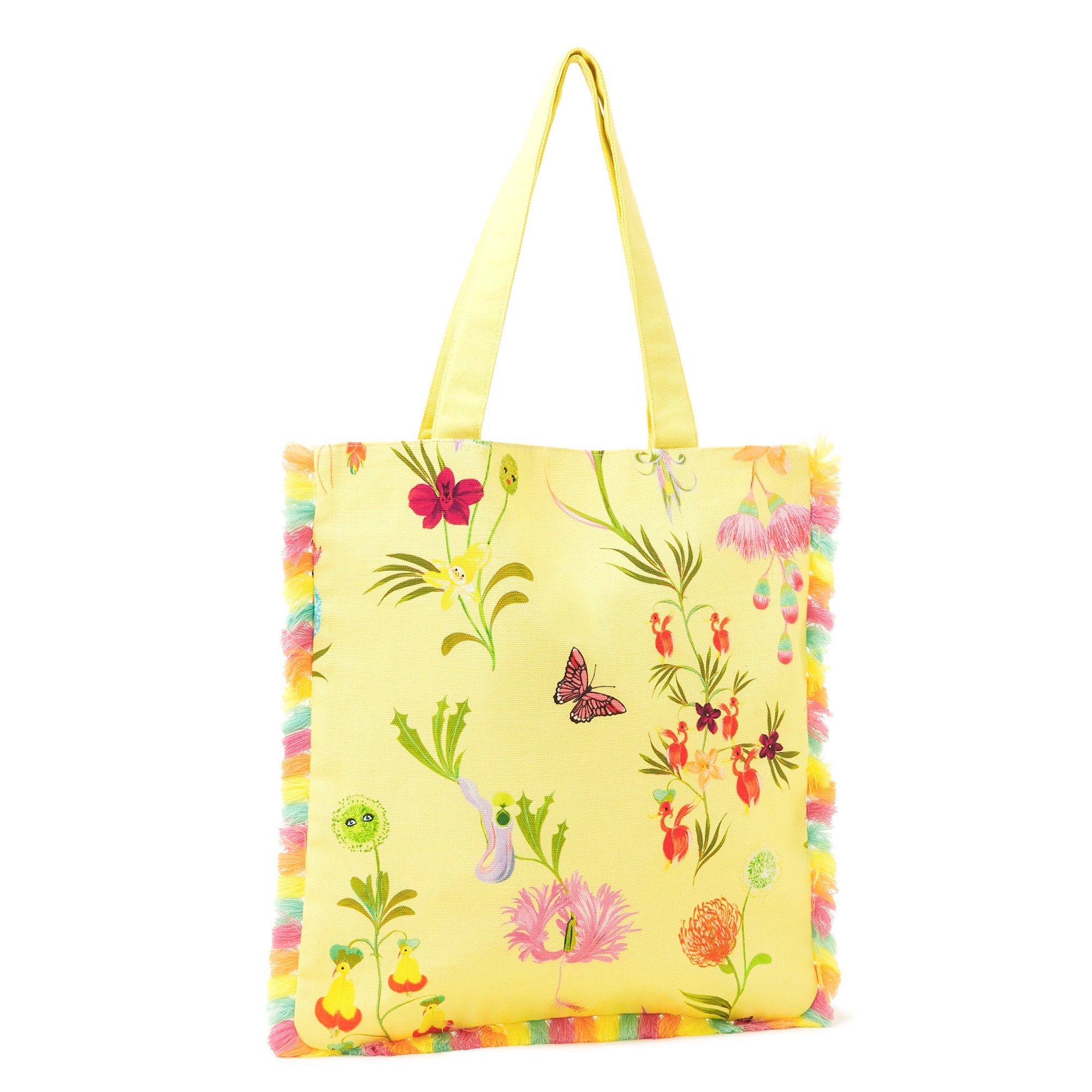 Designed with our new fave floral print, this tote shopper bag is cast in a sunny yellow hue with rainbow tassel trims, because you can never have enough colour.