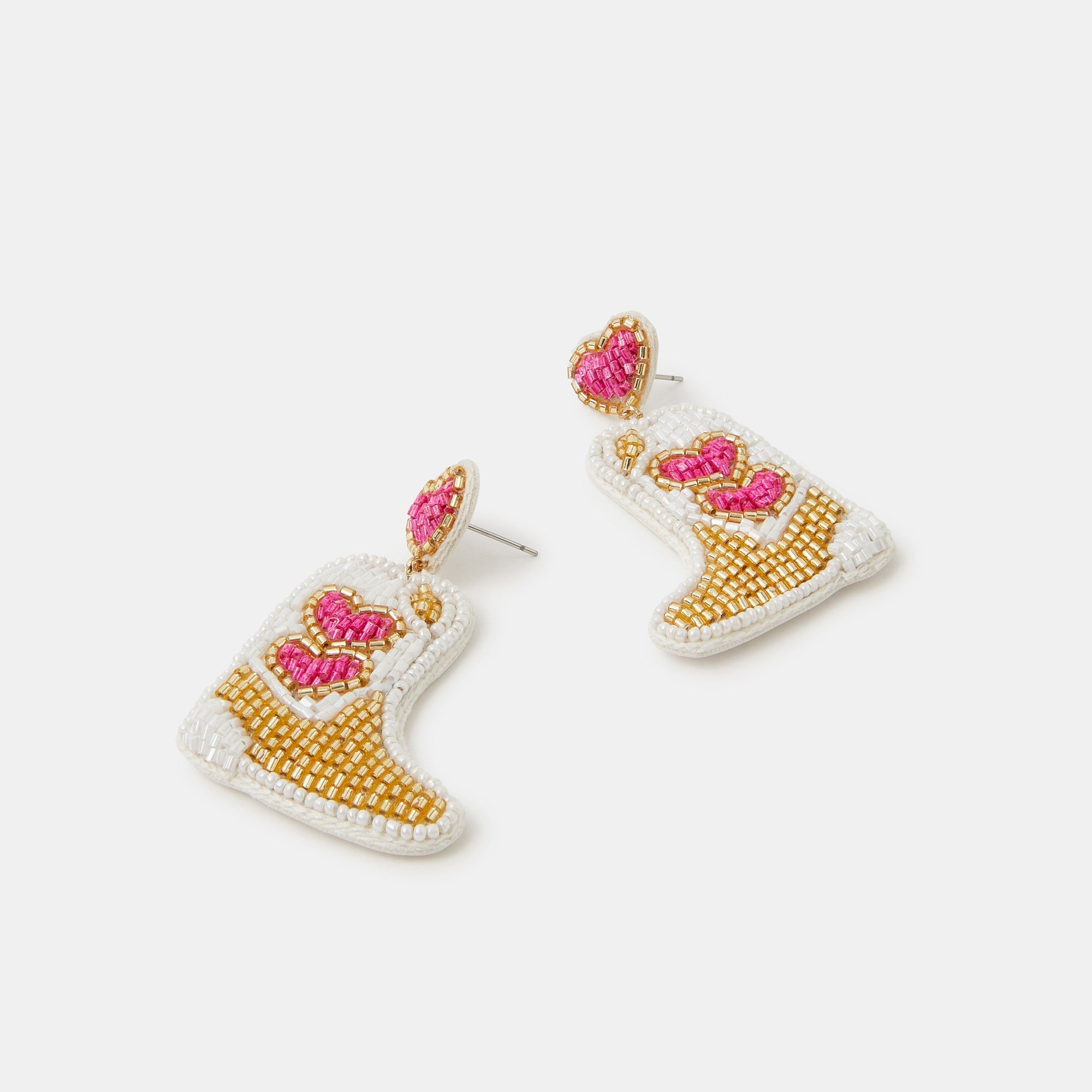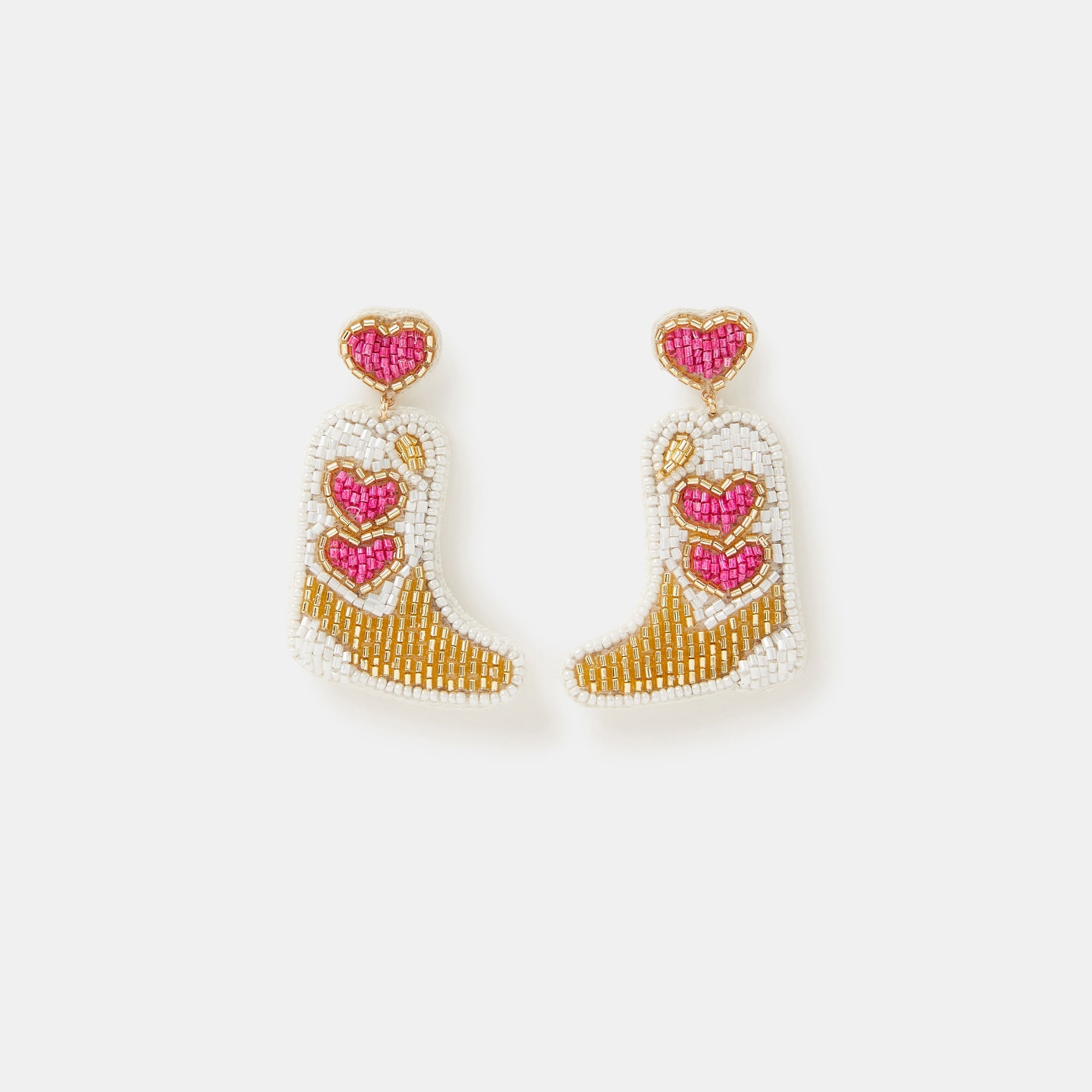 Not our first fashion rodeo... Whether you're going to a festival or off to do some line dancing, these earrings are the perfect statement to complete your look. Bedazzled with beads, they feature a cowboy boot dangling from the heart stud profile.
