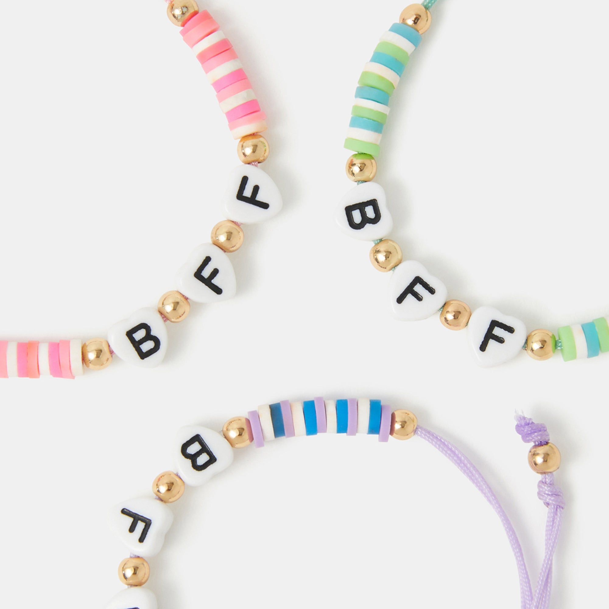 A cute gift for sharing with their besties, these friendship bracelets are strung with pink, yellow and purple beads, with matching BFF and heart beads at the centre.