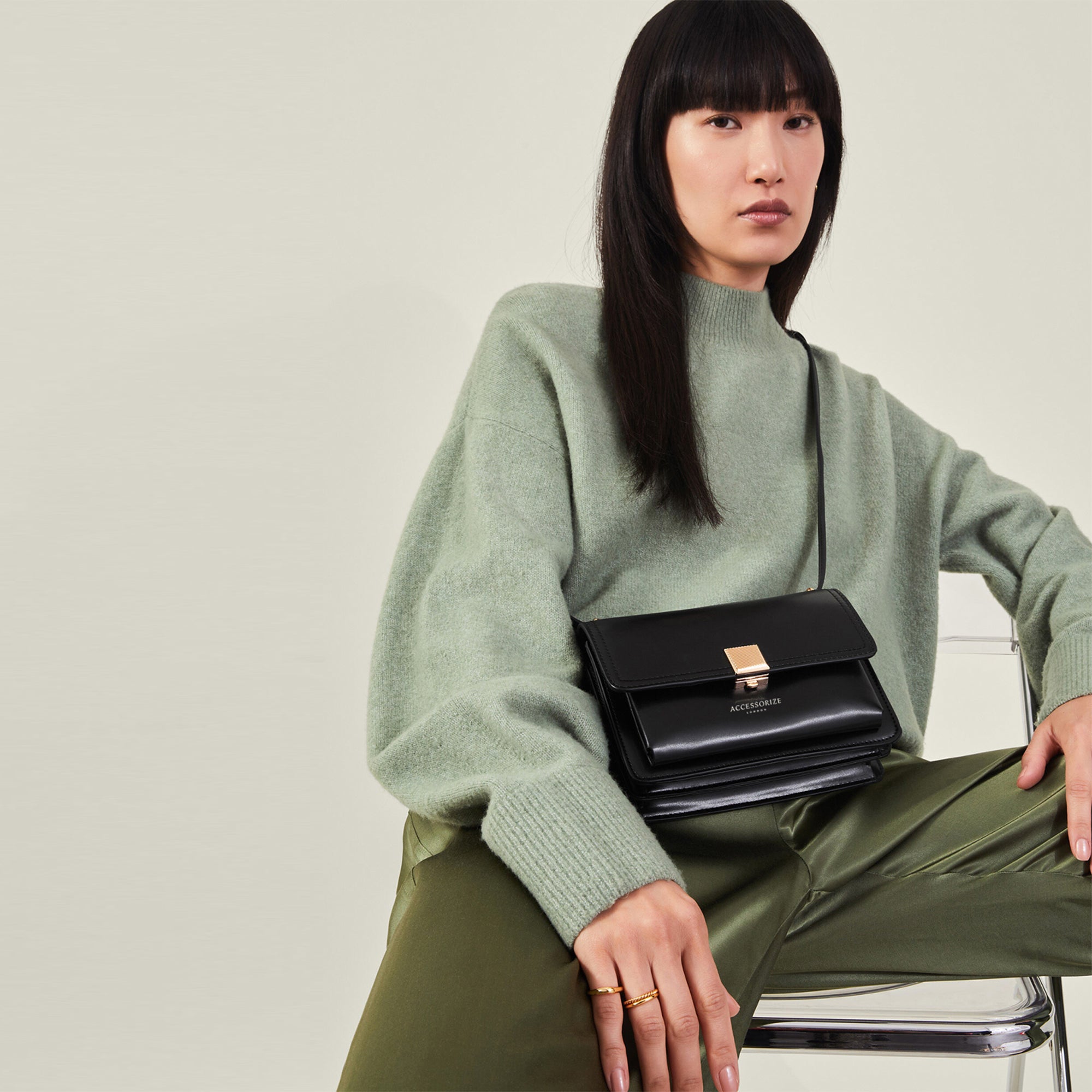 Nothing completes an outfit like a cross-body, so opt for this faux leather option for a chic finish. It is designed in a boxy silhouette and features gold-tone hardware to the square lock clasp and adjustable cross-body strap.