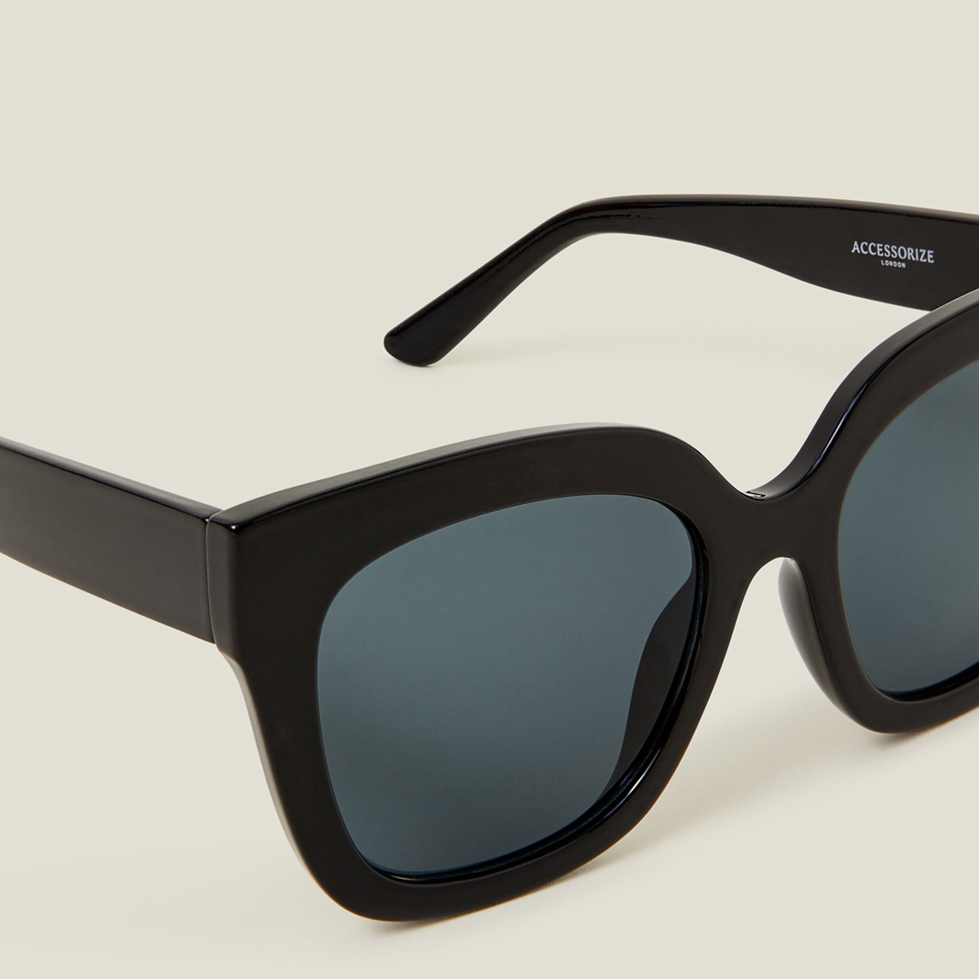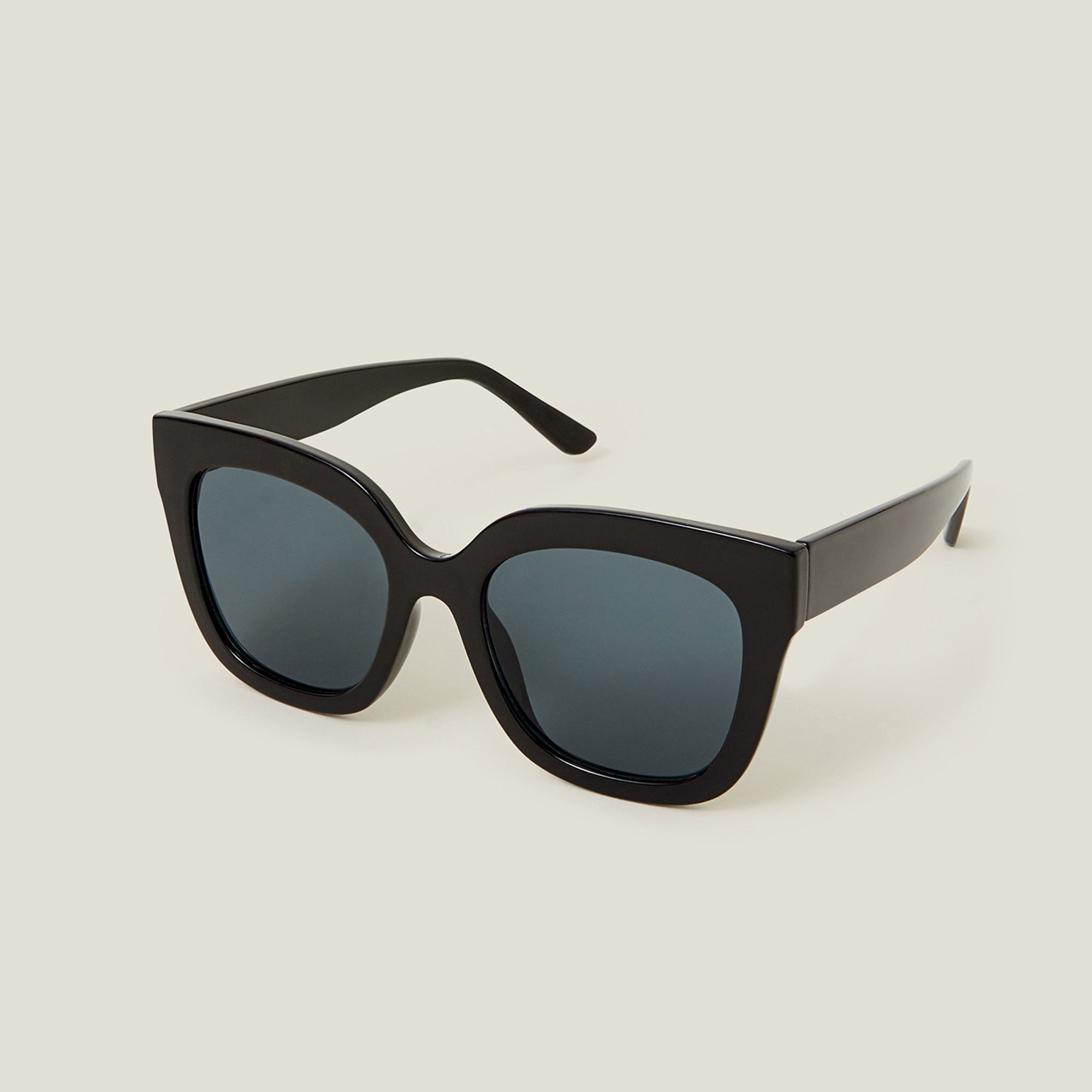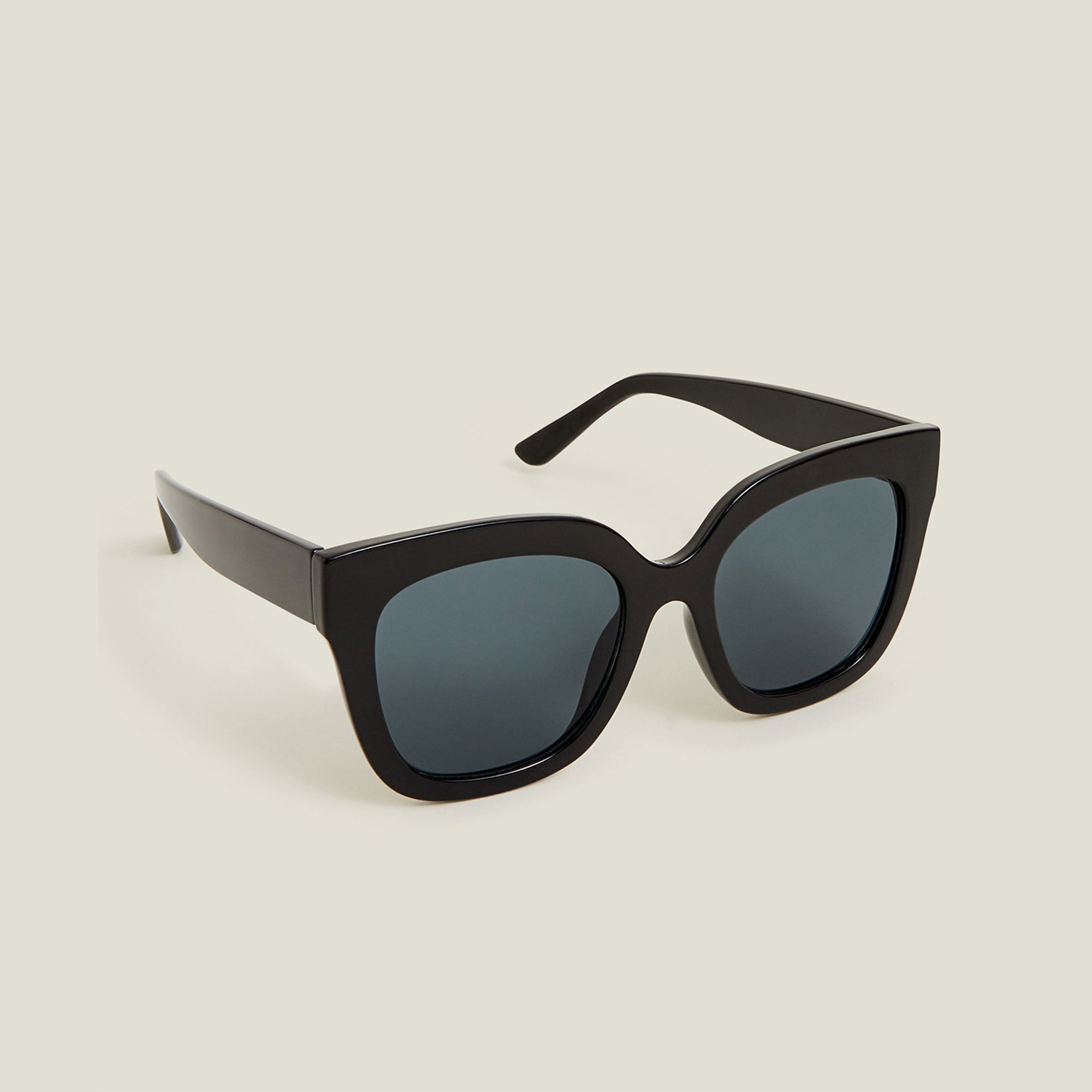 90s vibes. Effortless chic. These sunglasses are designed with chunky cat eye frames accents. Finished with dark lenses, add a floppy hat and wedges to hit the beach club.