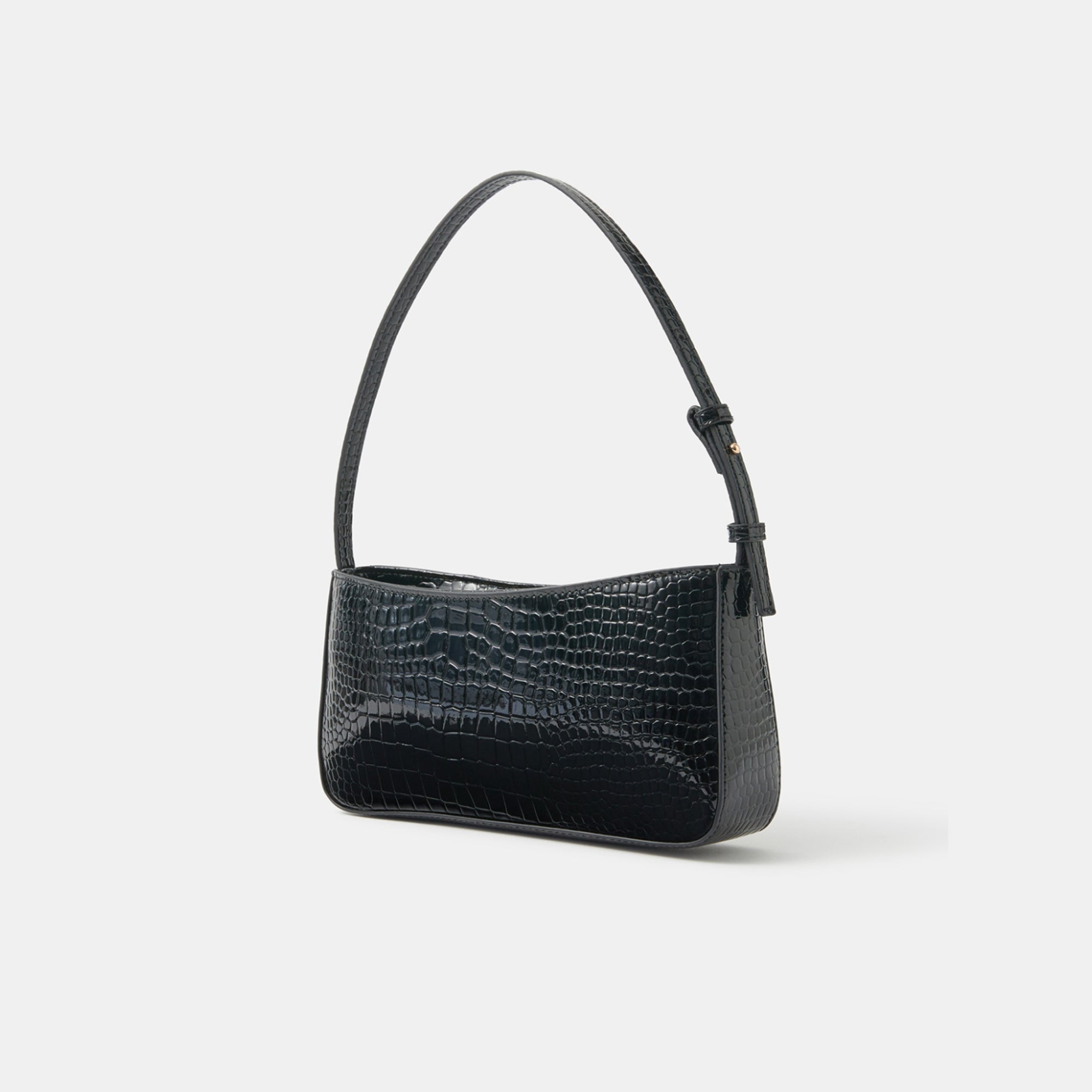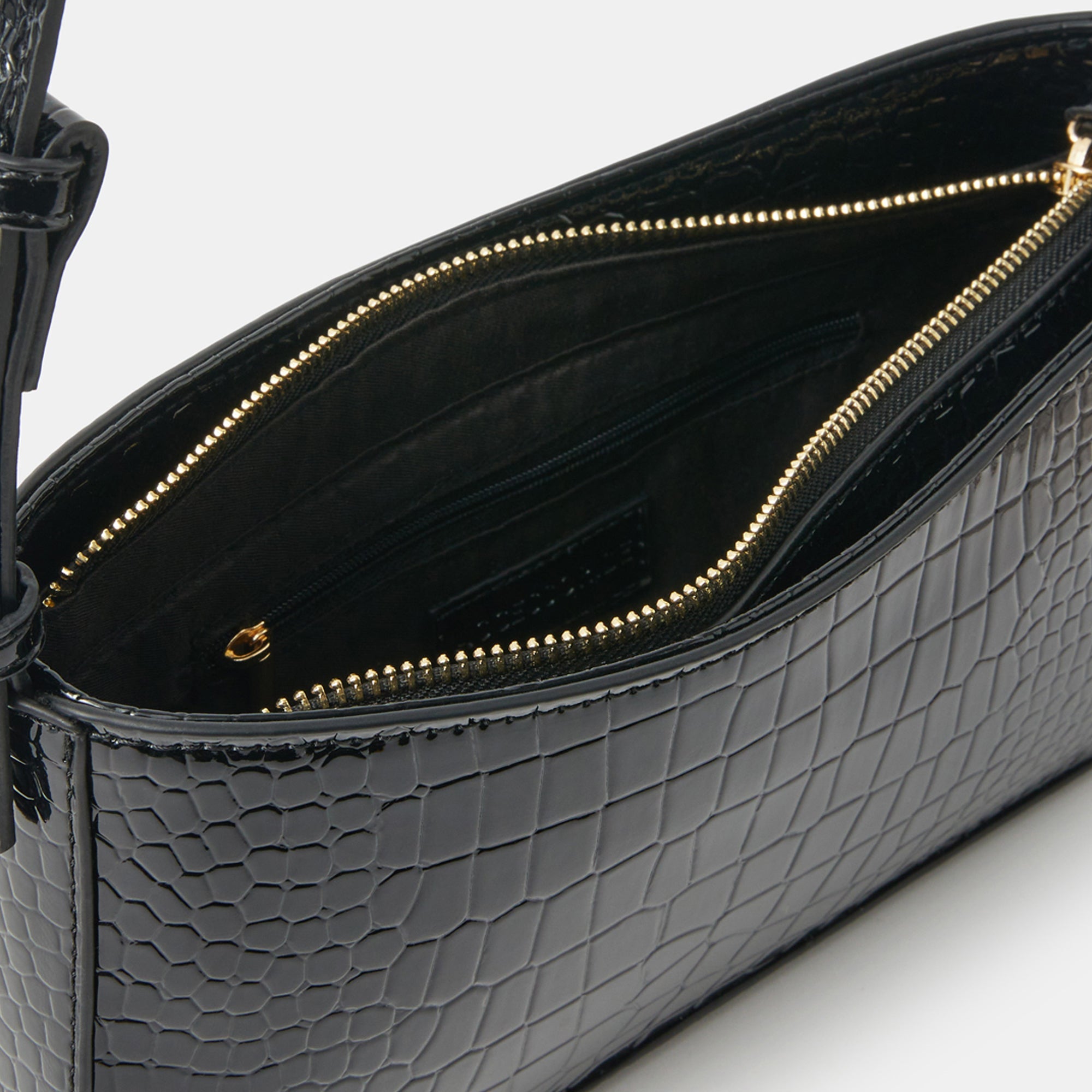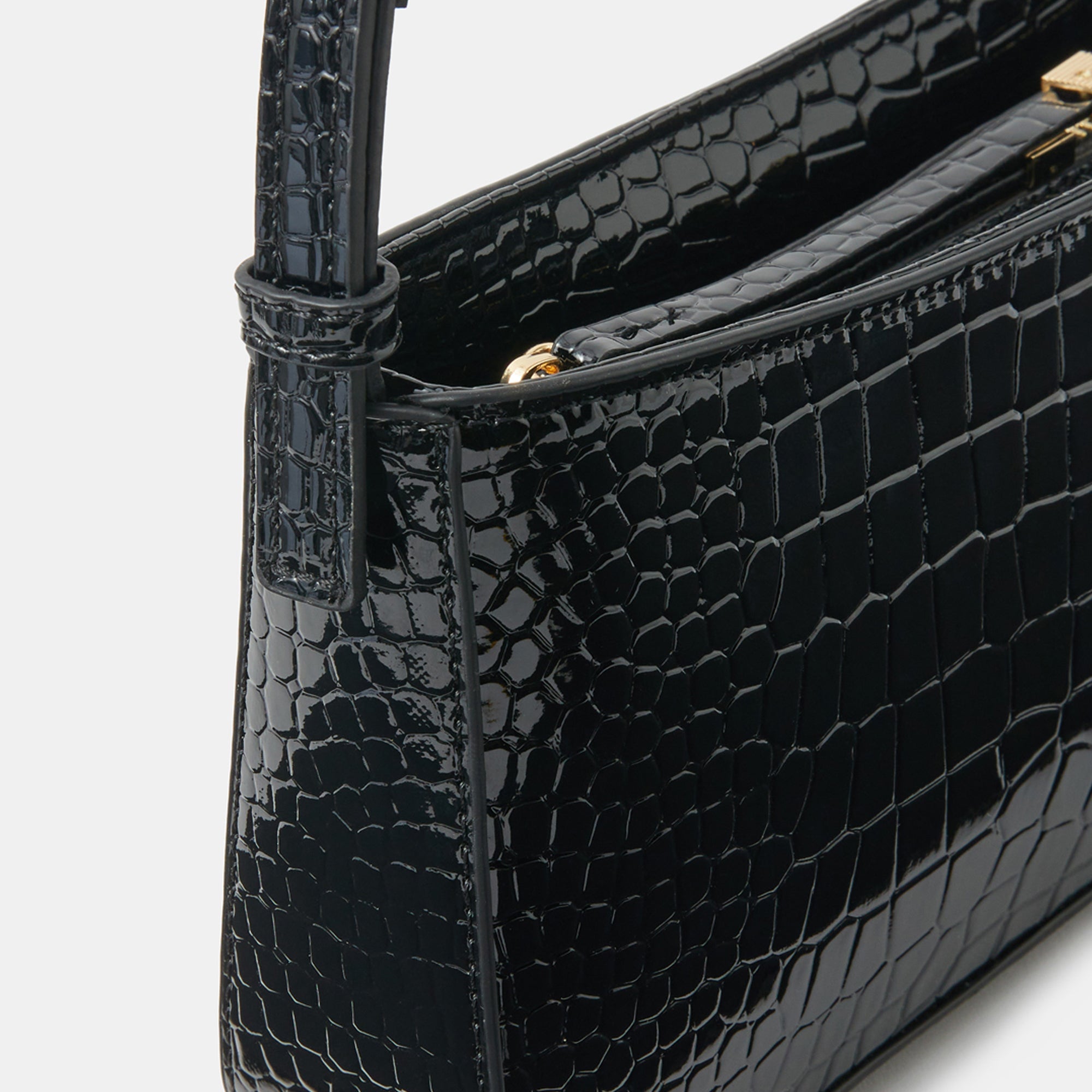 Timelessly stylish, this shoulder bag tucks perfectly under your arm during shopping trips and evenings at your favourite bar. Made from patent faux leather with a croc-effect finish, it features a main zip compartment and adjustable strap.