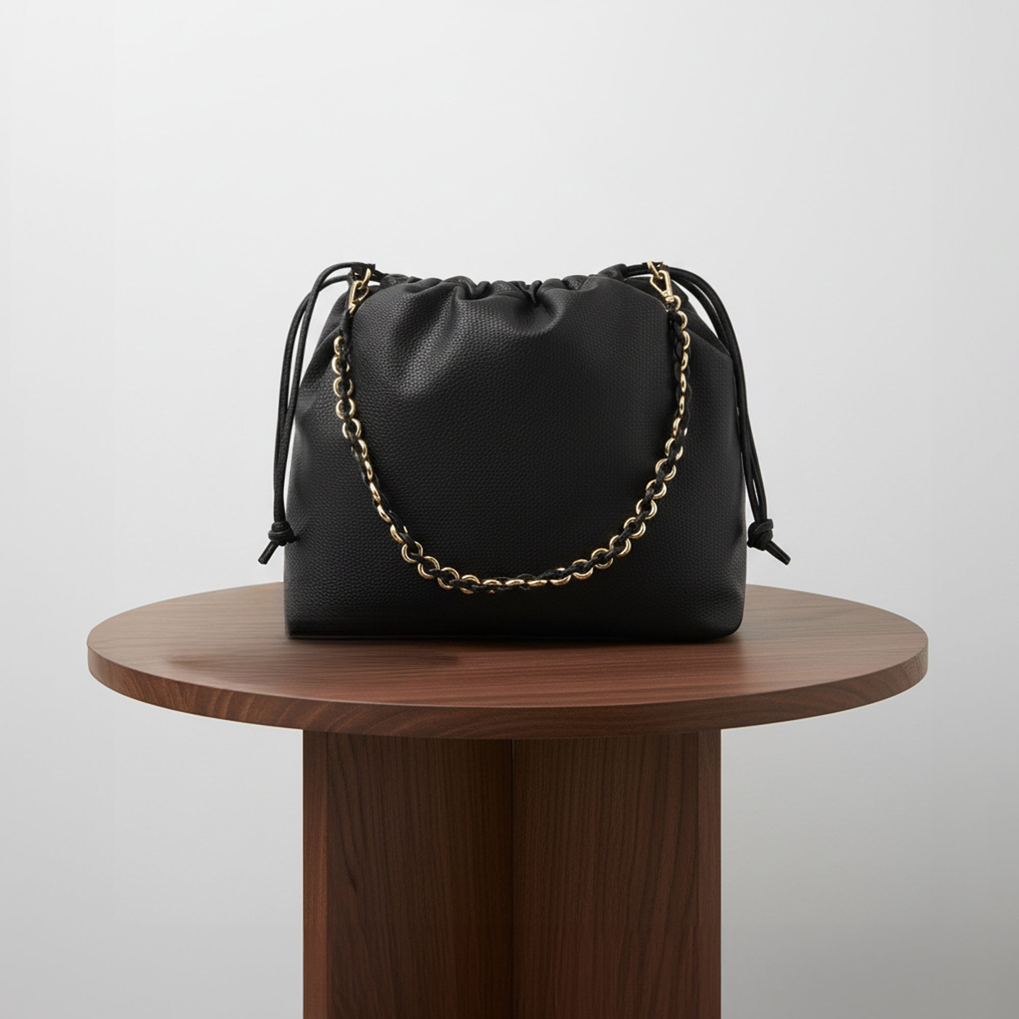 A must-have in every woman’s wardrobe, this Black Large Drawstring Shoulder Bag is designed to complement your day-to-night looks effortlessly. Crafted in high-quality faux leather, it features a roomy interior with a drawstring closure that keeps your essentials secure while adding a chic touch. With two versatile shoulder straps, including a sleek handle and a chain-detailed strap, you can switch up your style with ease. Spacious yet lightweight, it’s perfect for work, travel, or casual everyday wear.