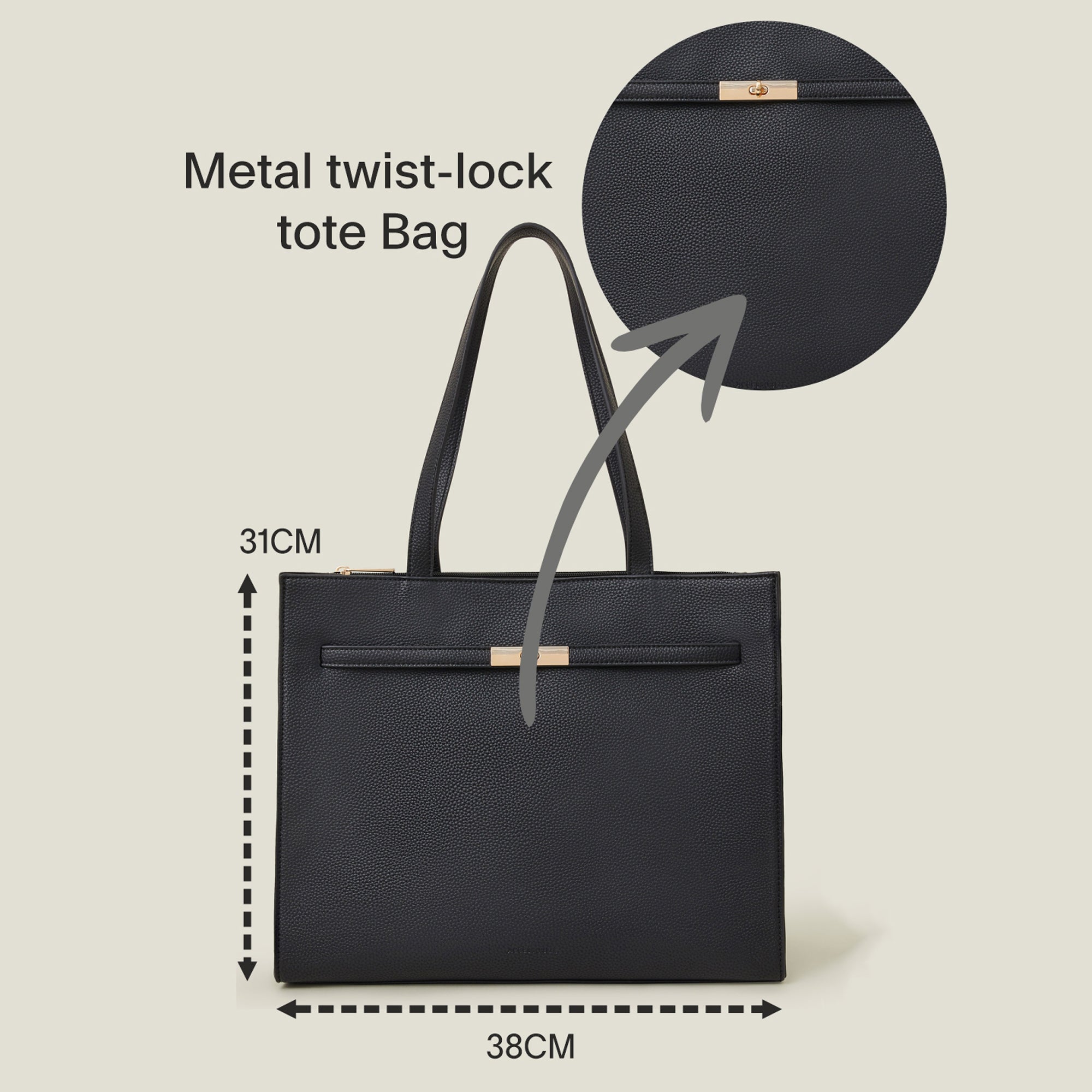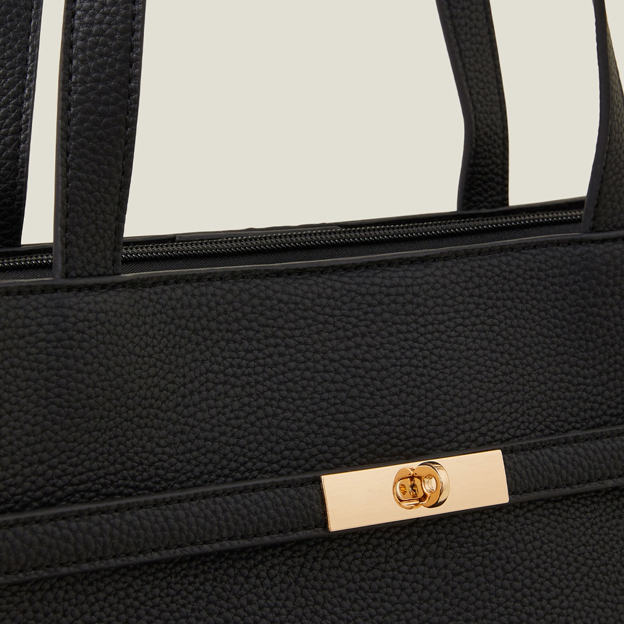 Something for everything. This bag offers plenty of room for your work essentials on even the busiest of days. Simply pop your laptop, water bottle, and notepads in, fasten it with the twist lock, sling it over your shoulder and you're good to go! Finished with adjustable straps and a zip up pocket to the inside for extra valuable items