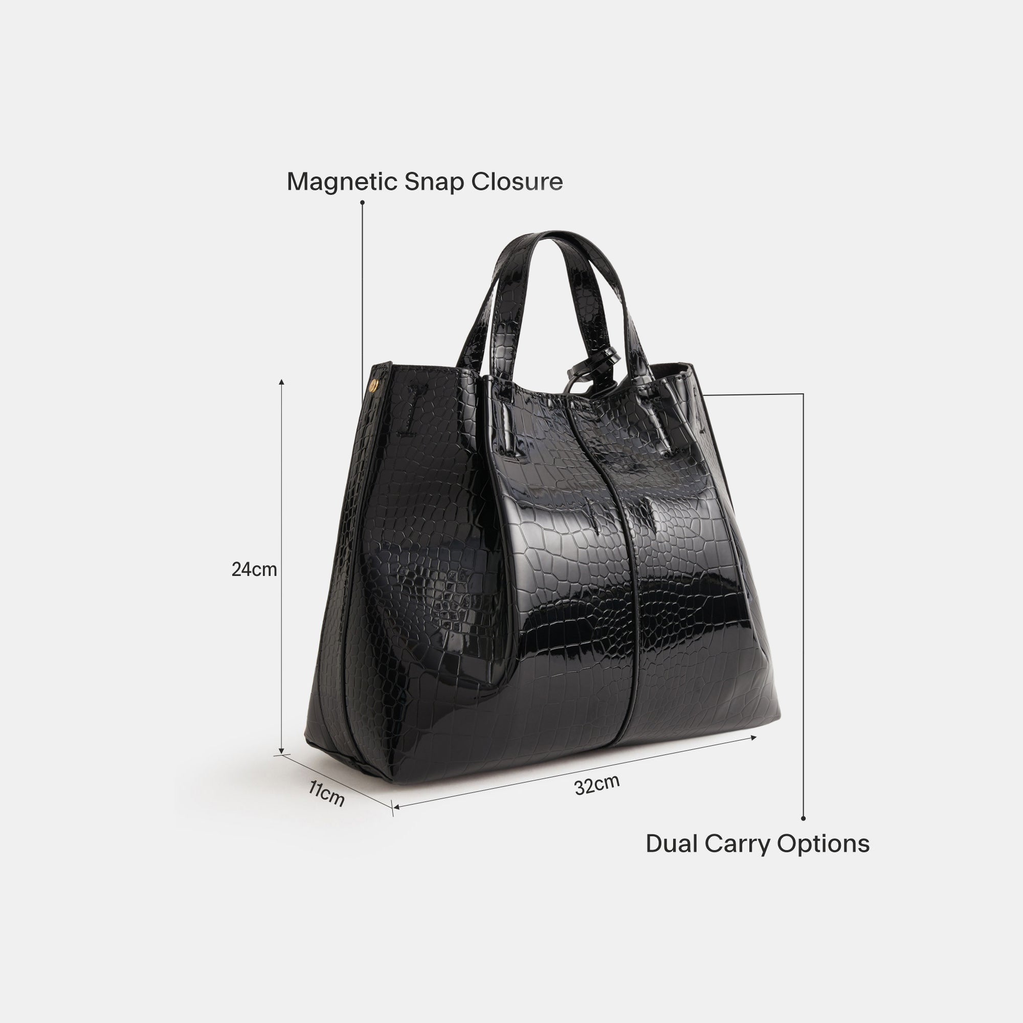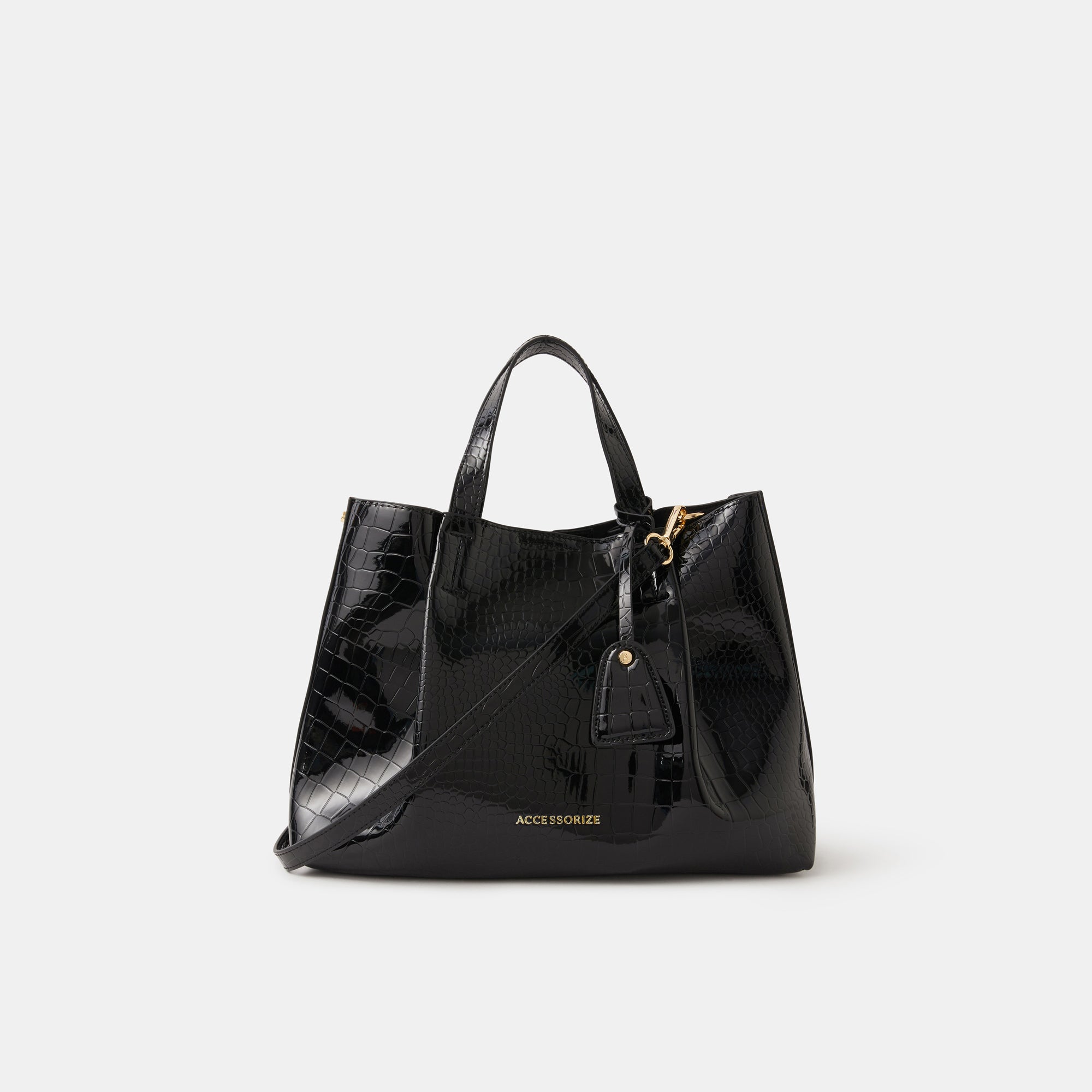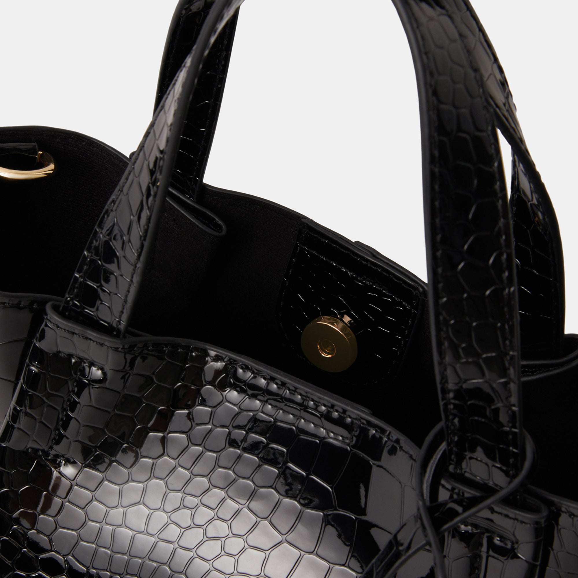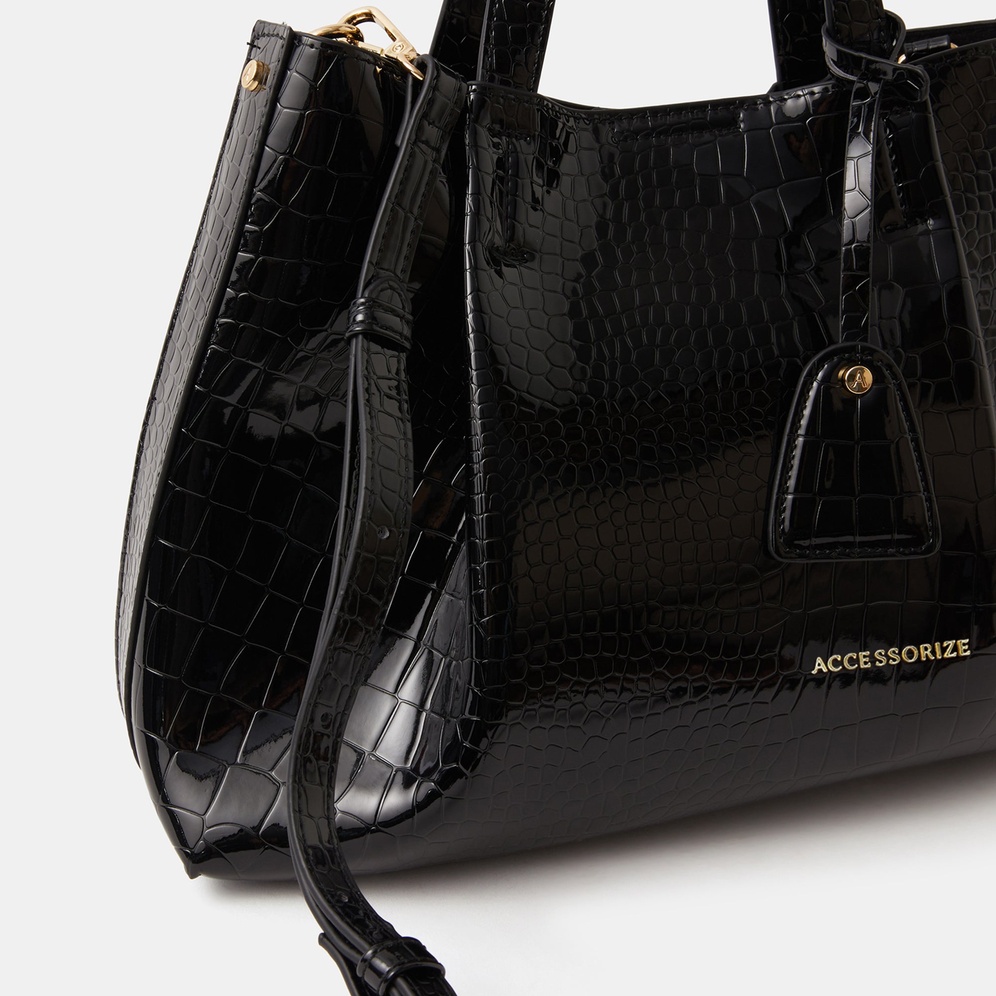 Boujee! Crafted with a faux croc finish, this bag is the perfect accessory for dressing up on office days or evening's out. Finished with a magnetic button fastening and cross body strap.