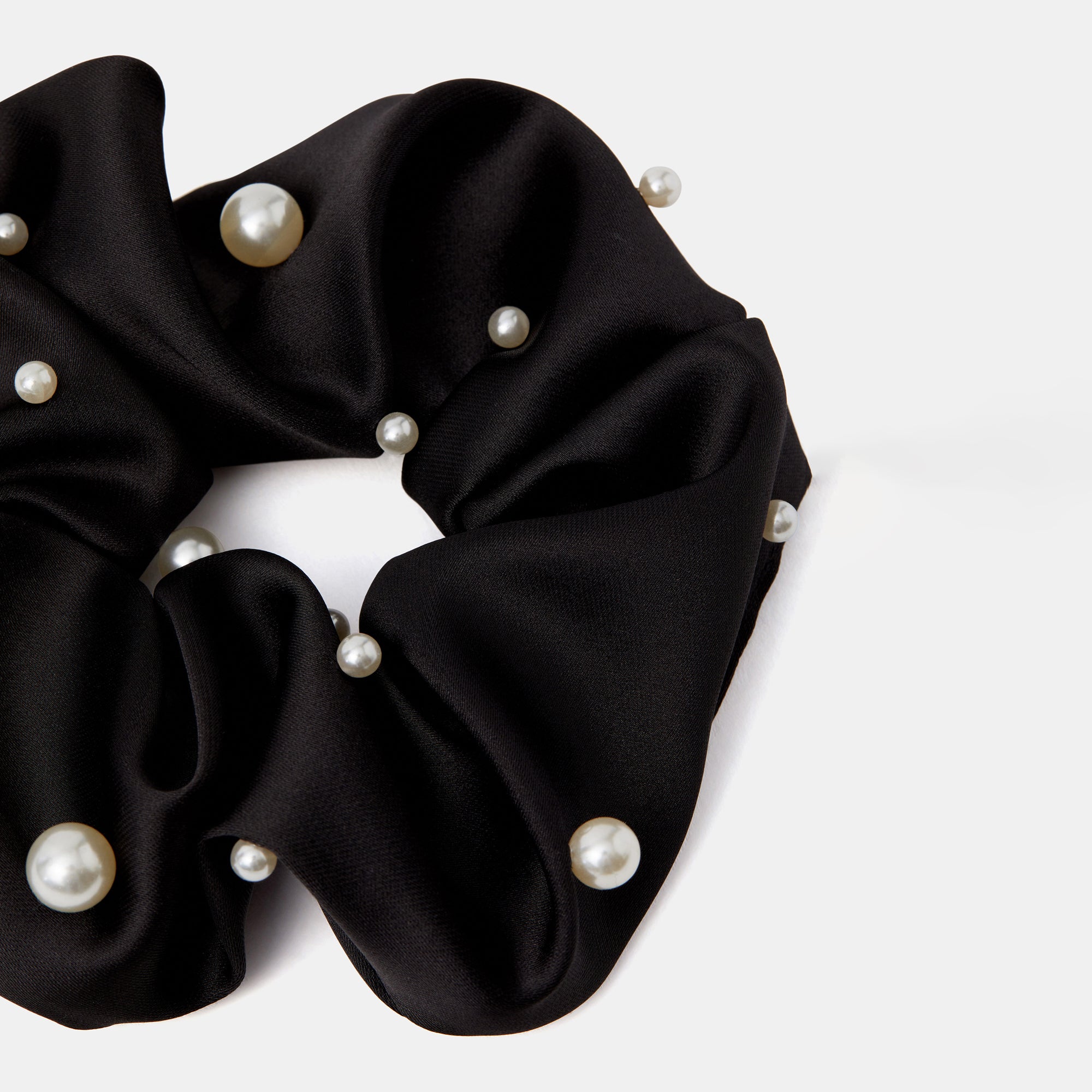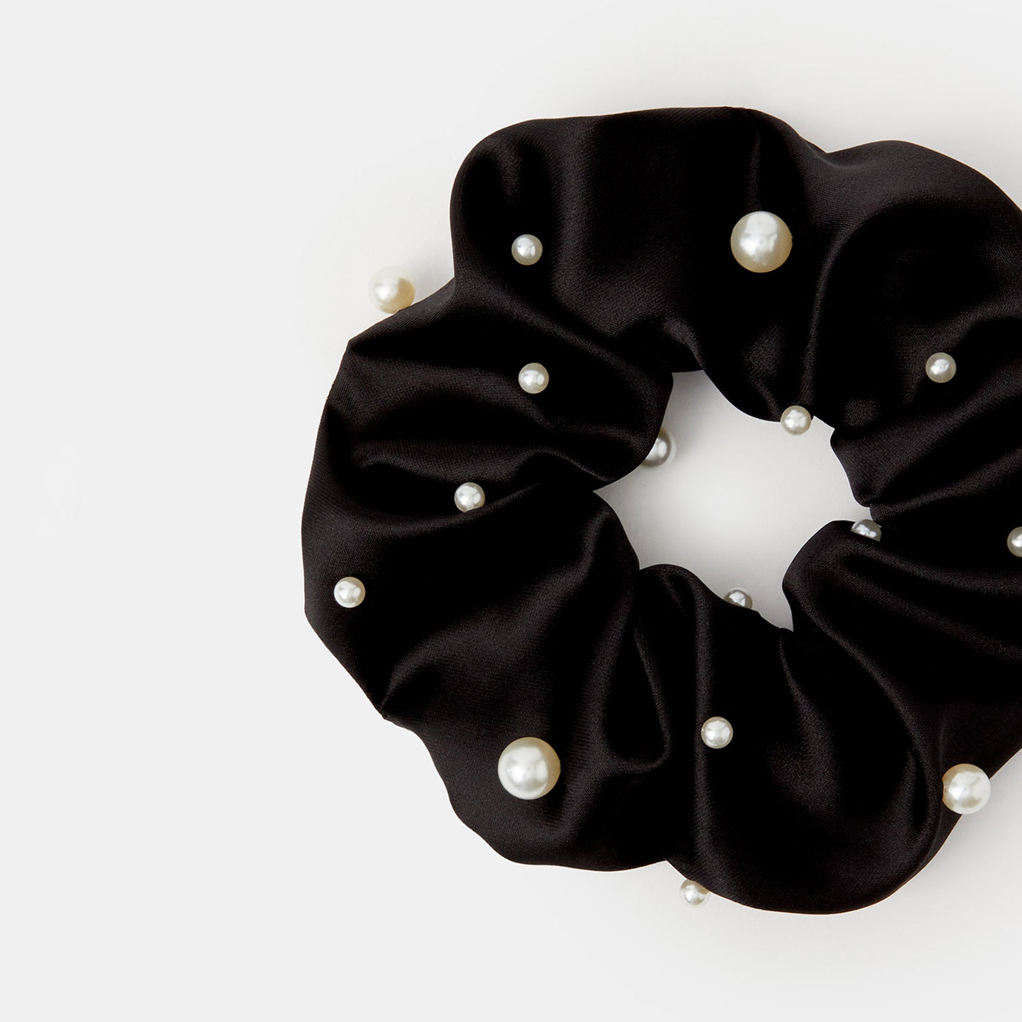 The classic scrunchie comes with an eye-catching upgrade. Made from soft, satin fabric, it's decorated with pearly beads. Gorgeous, right?