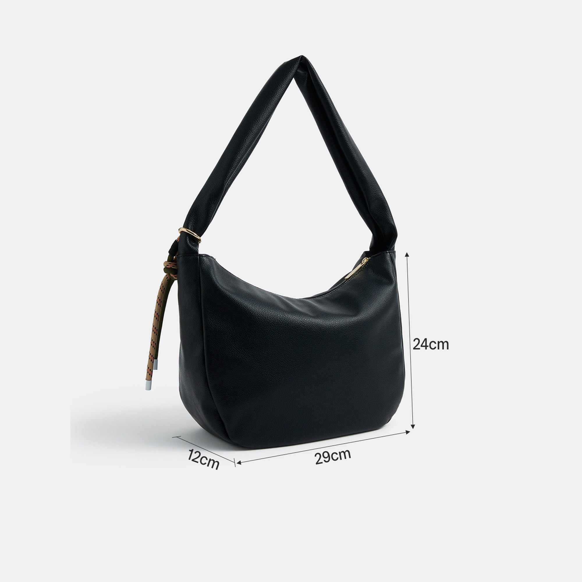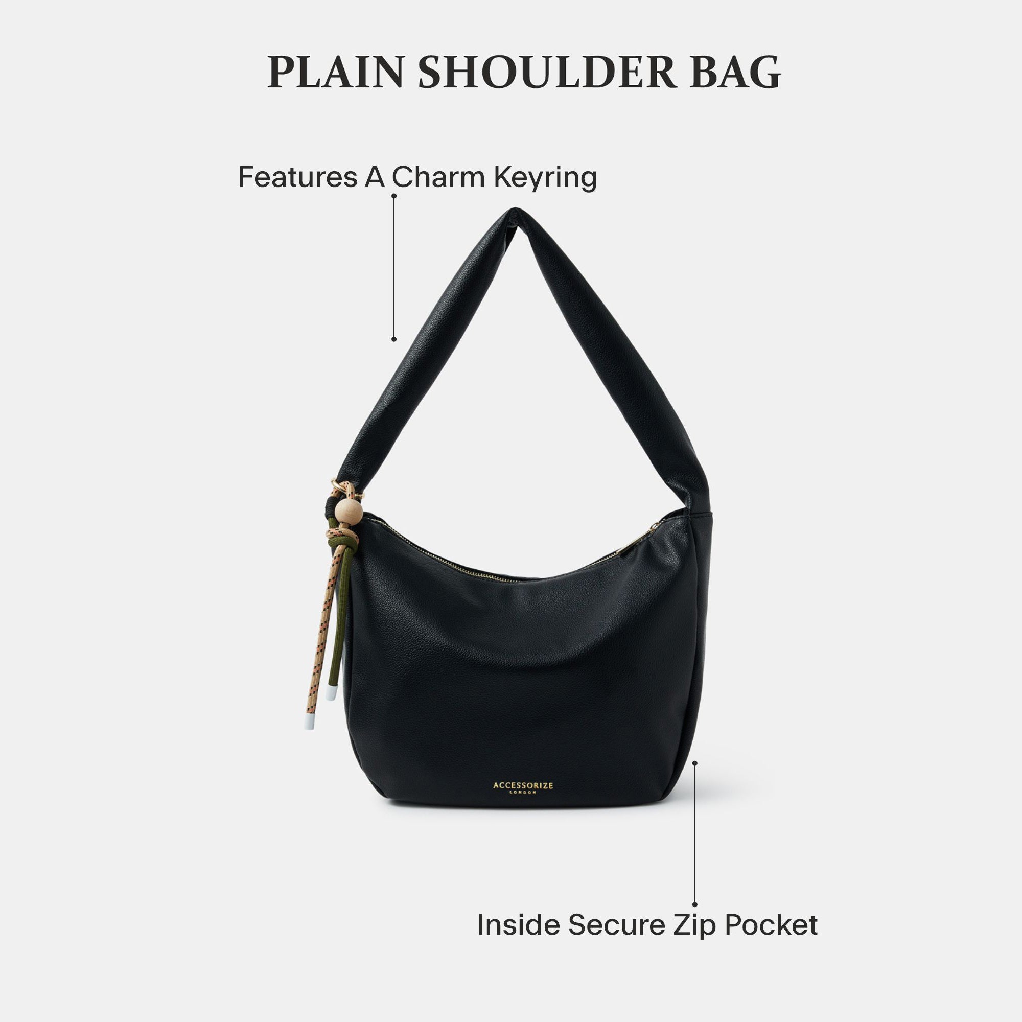From day to night, 24/7, 365 days a year — this shoulder bag is a true go-to classic. Designed in textured faux leather, it combines versatility with timeless style. The charm keyring detail on the handle strap adds a chic accent, while the zip fastening and internal pocket keep essentials secure. Spacious, lightweight, and easy to carry, this is a bag that effortlessly works for workdays, evenings out, and everything in between.