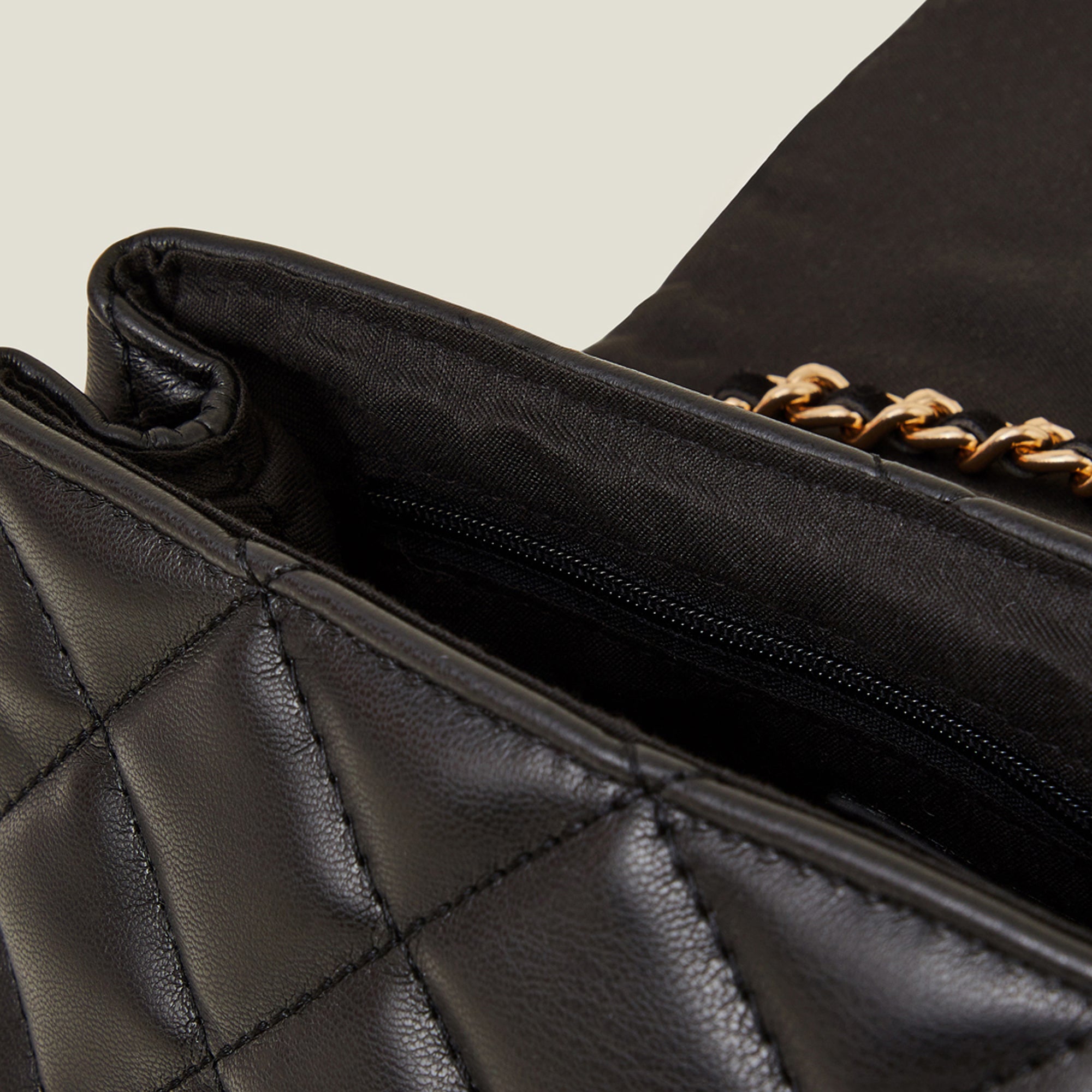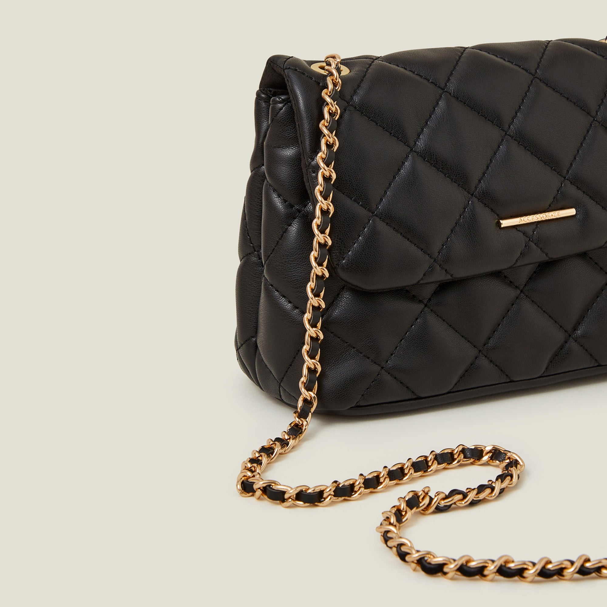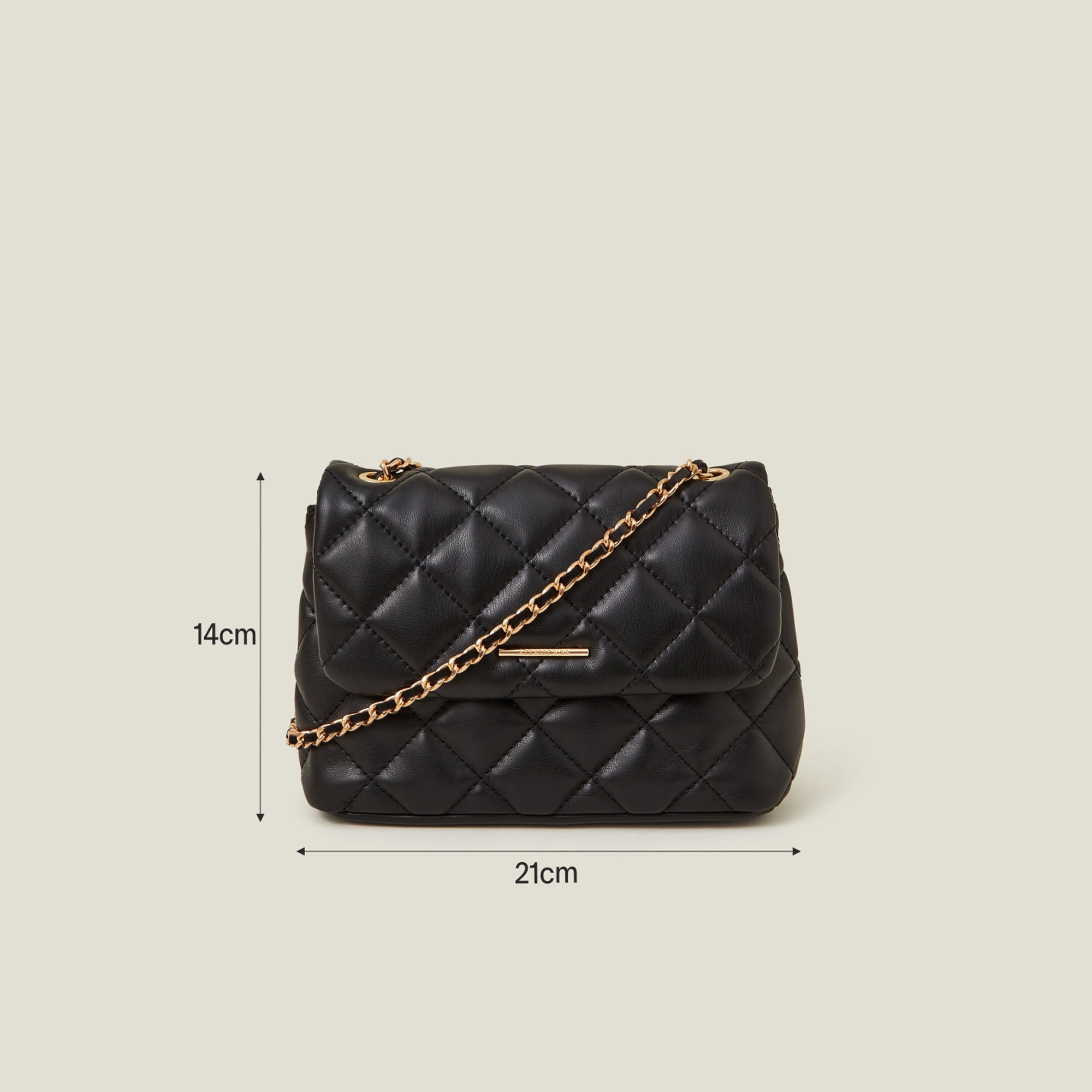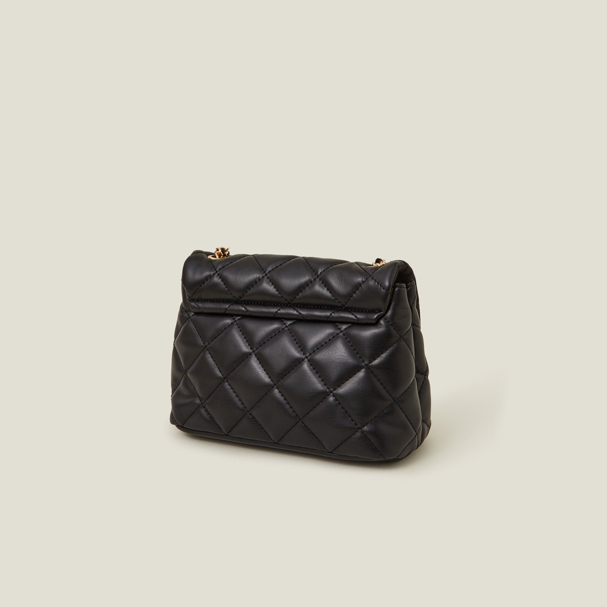 A chic accessory to house your essentials, this bag is designed in faux leather with a quilted finish. Open the fold-over profile to find a zip pocket inside, complete with a magnetic button fastening and gold-tone chain strap to style across the body.
