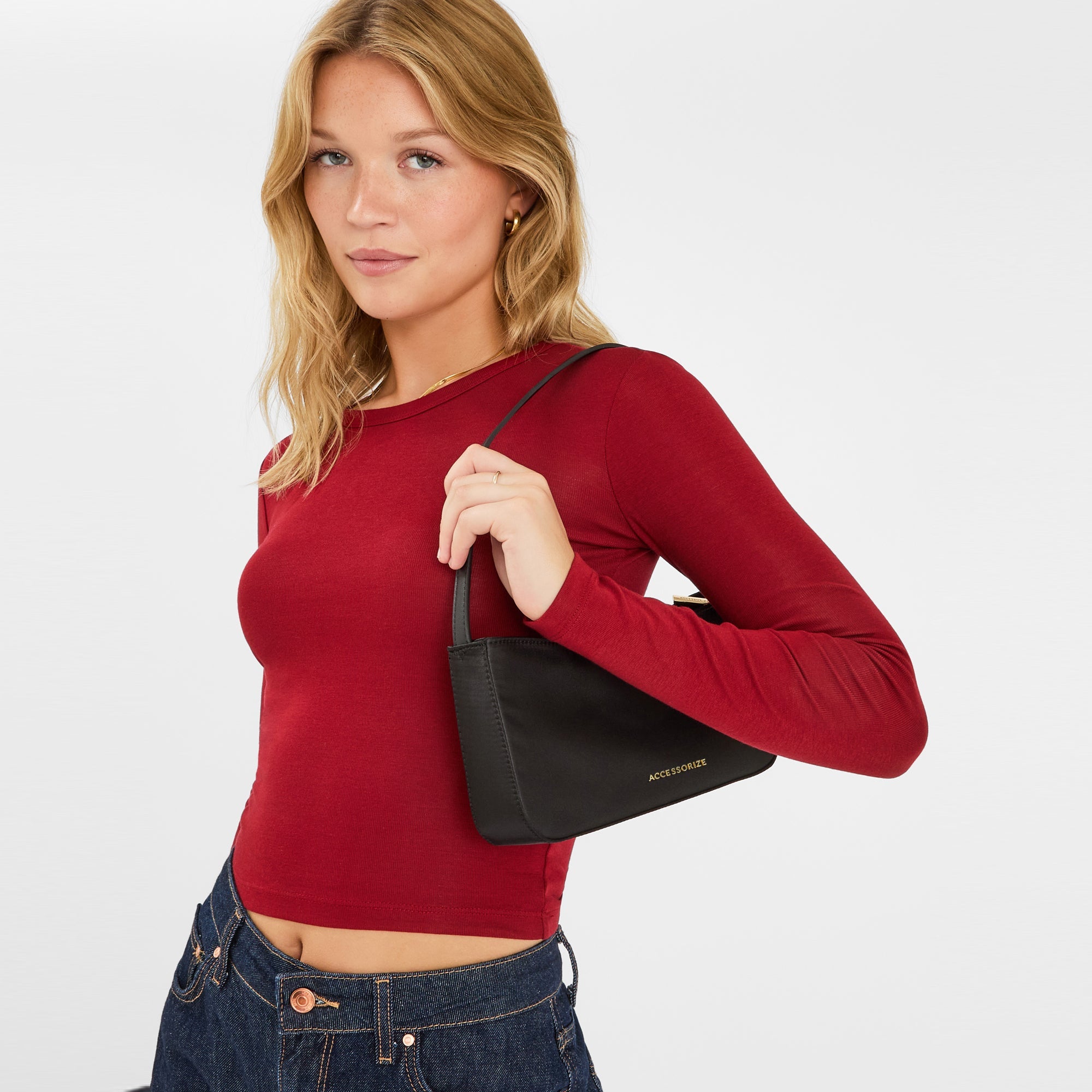 Oh-so-90s! Designed with a satin finish, this shoulder bag's mini profile makes it the perfect piece for nights out on the town. Complete with a zip fastening. Blue