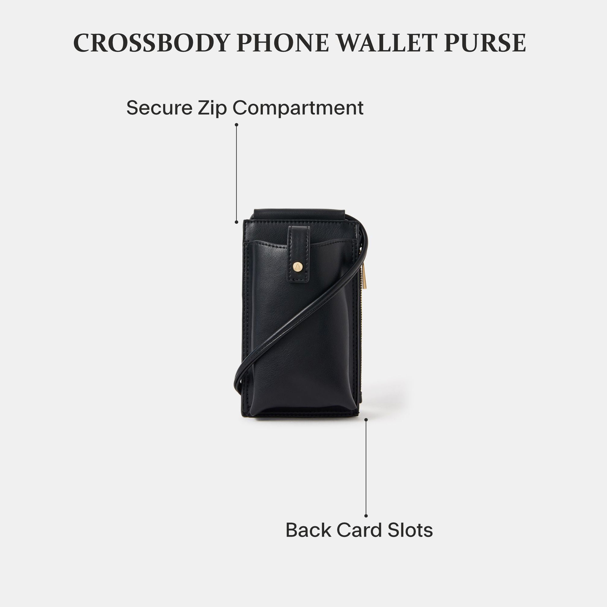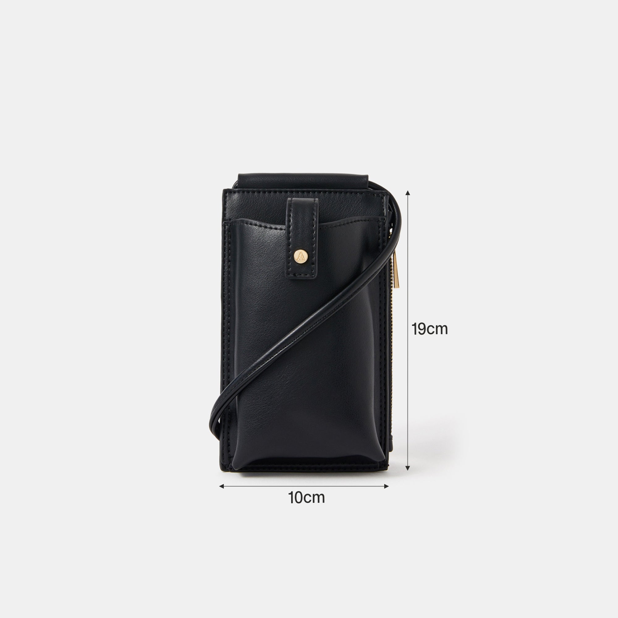 Stay hands-free in style with this Black Tab Pocket Phone Bag. Designed in smooth faux leather, it features a secure magnetic button tab fastening, a side zip compartment, and card holder slots at the back. Compact yet practical, this sling is perfect for keeping your phone, cards, and small essentials safe on-the-go. A chic everyday accessory that pairs effortlessly with both casual and smart outfits.