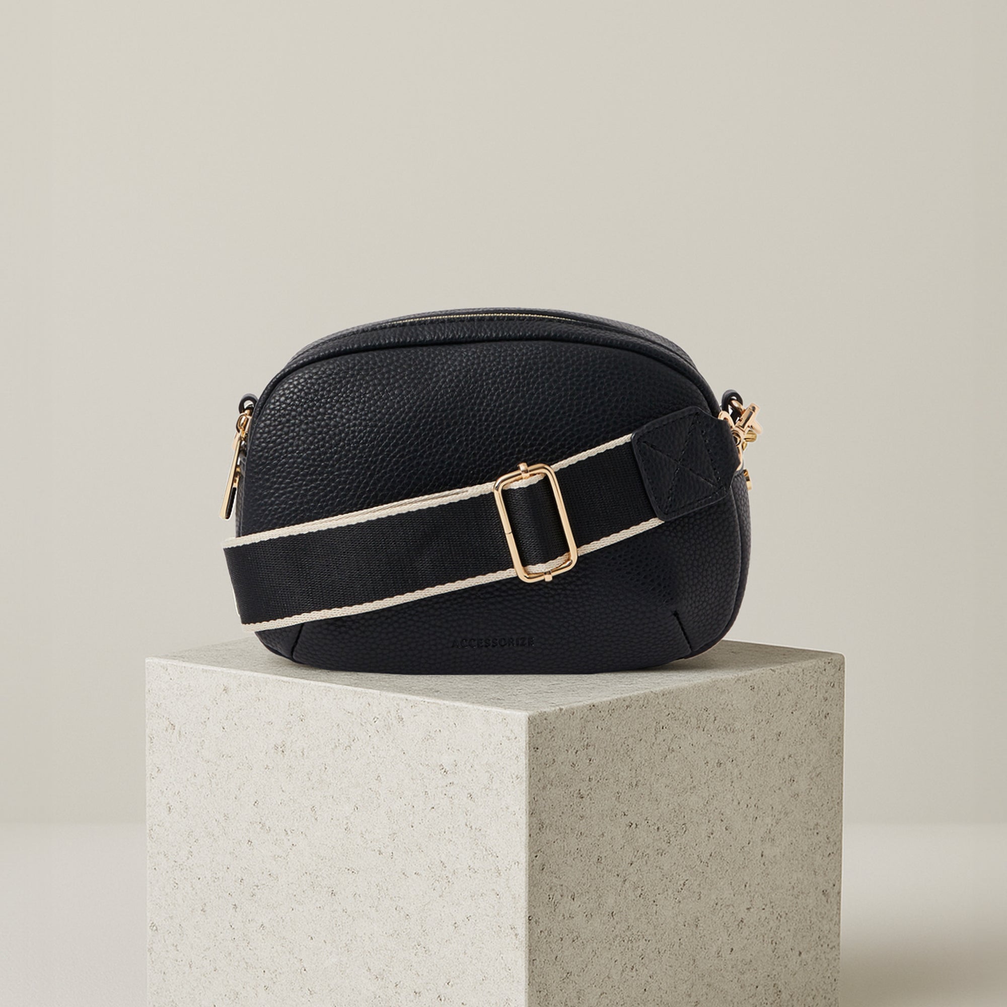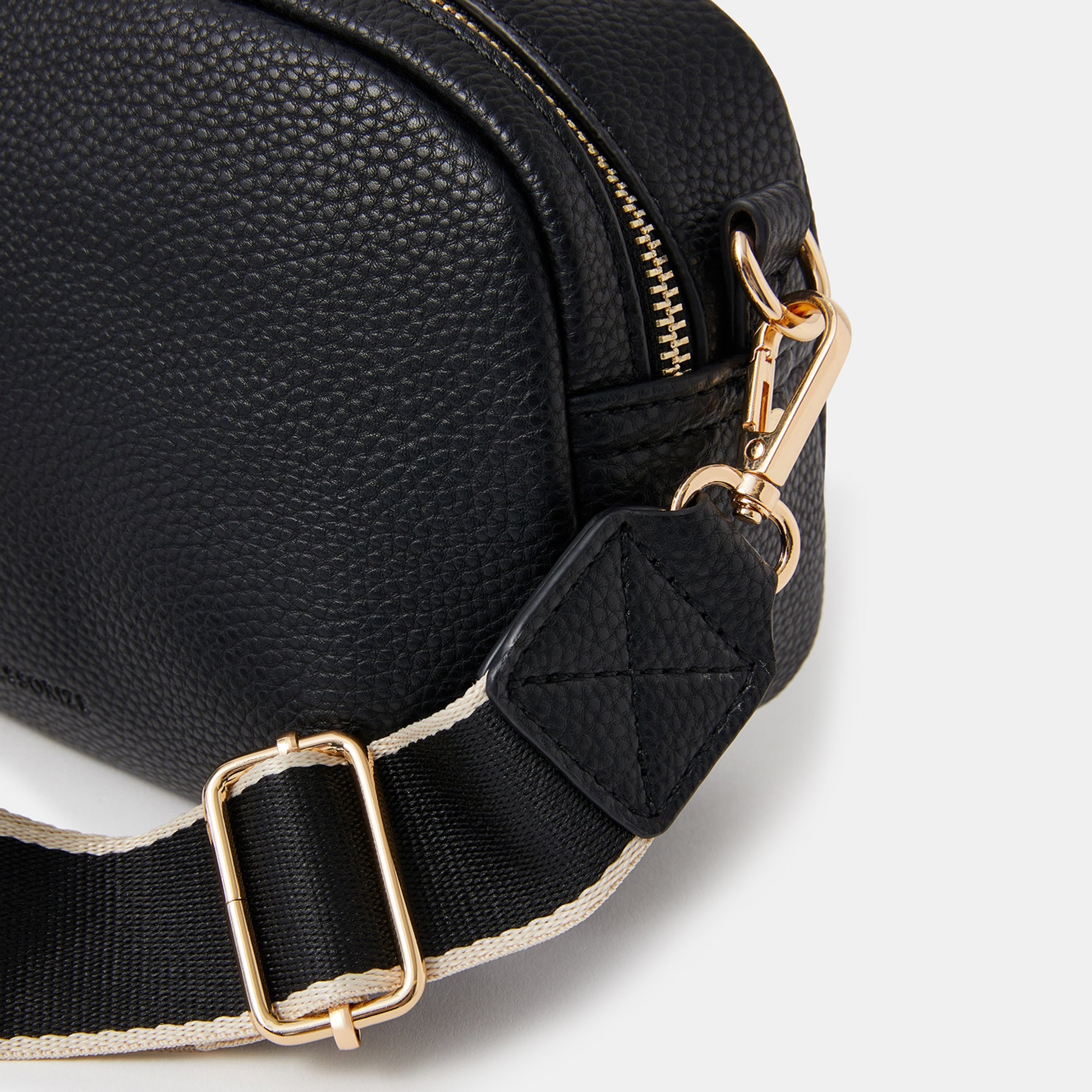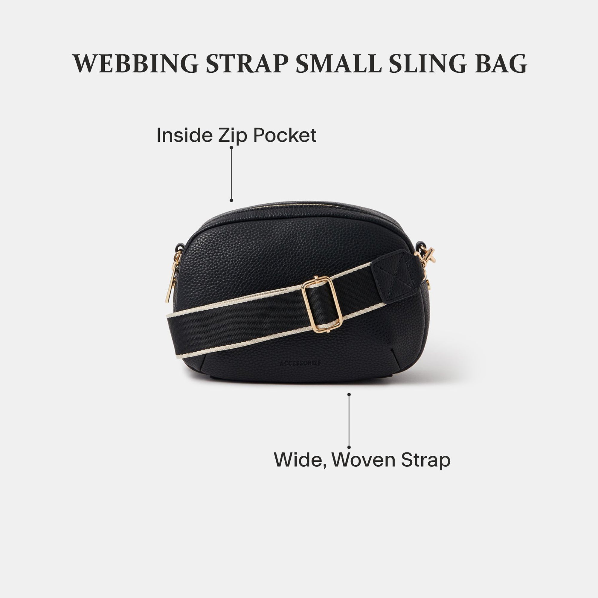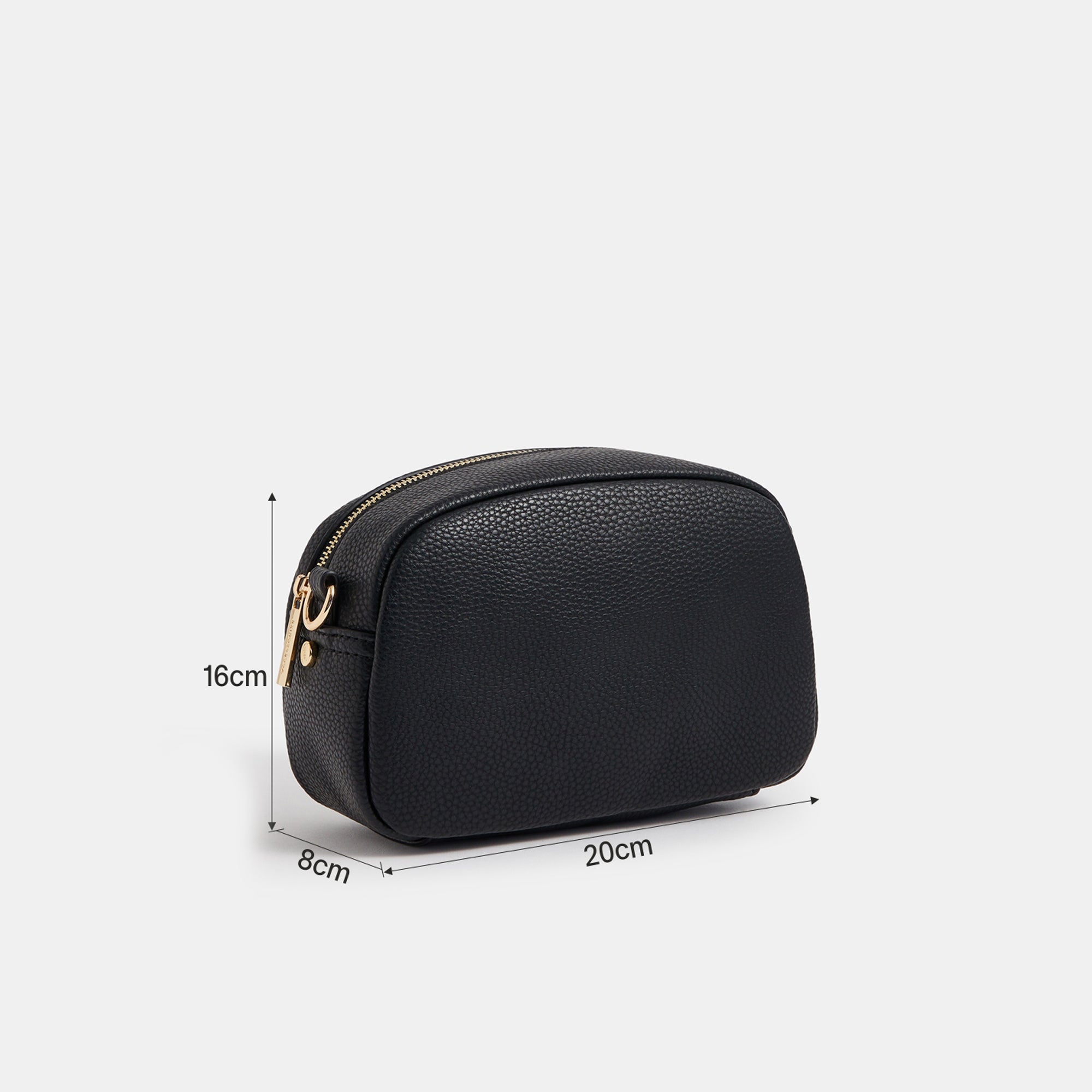 Compact and timeless, this small crossbody bag is made from faux leather with a detachable and adjustable webbing strap. Finished with a zip fastening and internal zip compartment.
