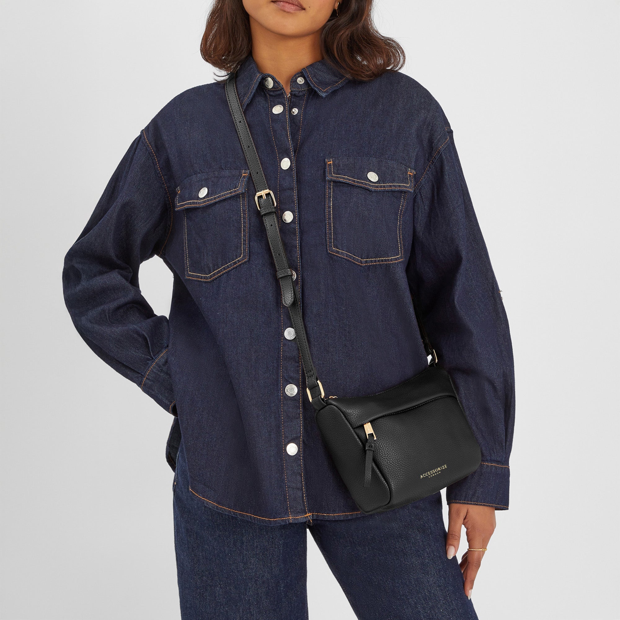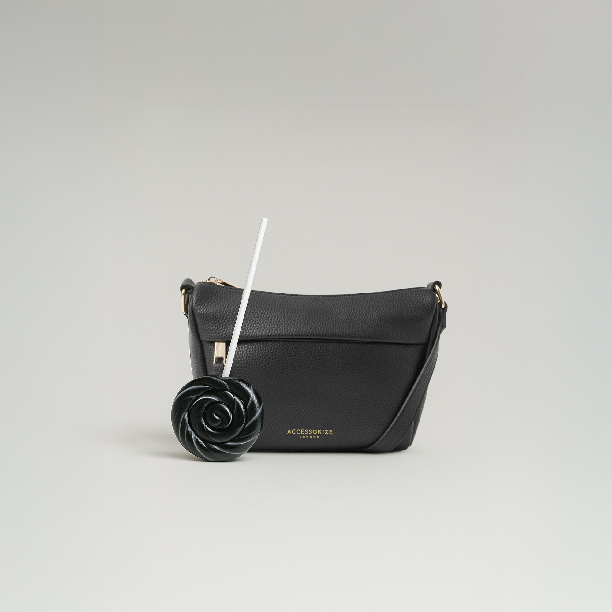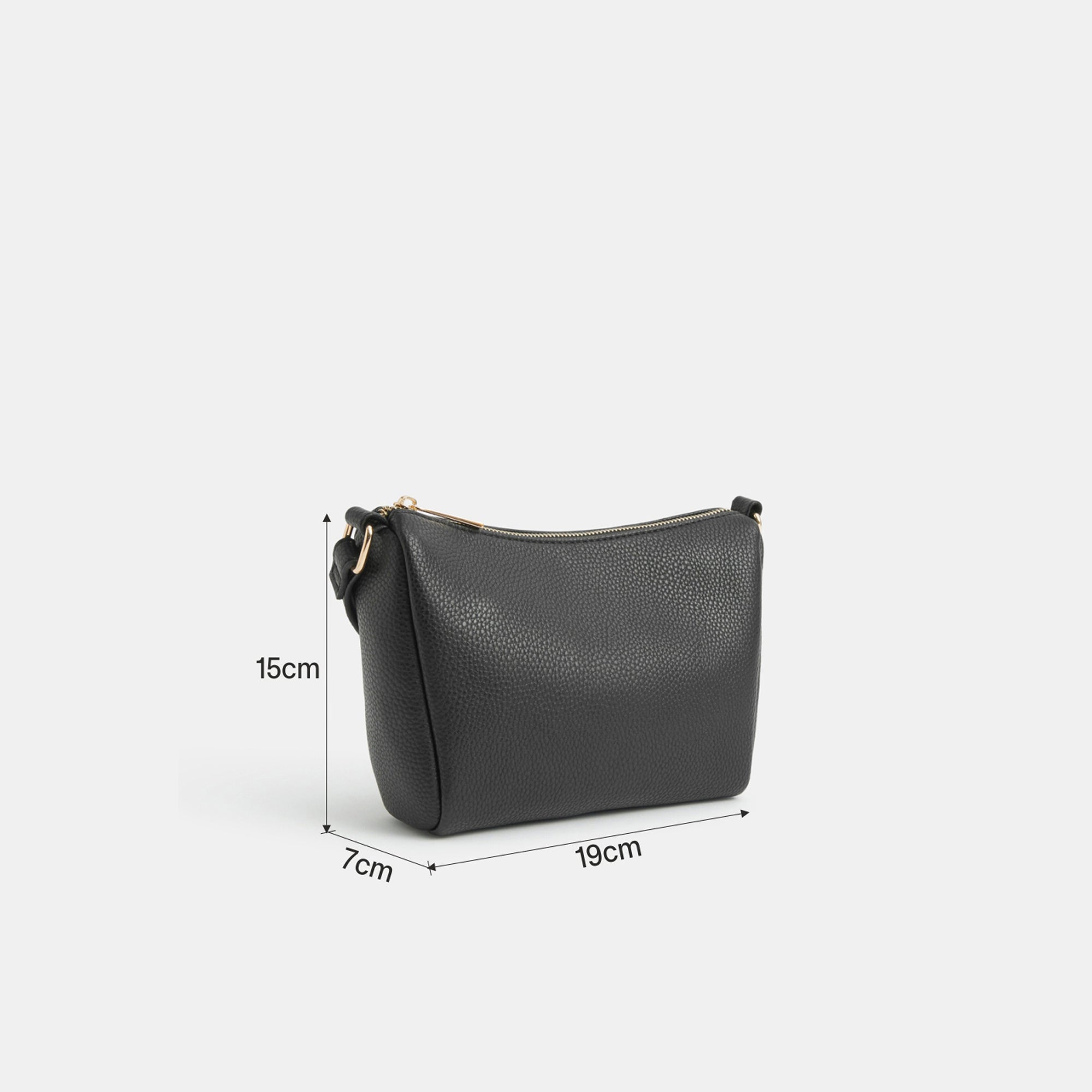An essential to keep forever. Made from smooth faux leather, this crossbody bag features a main zip compartment, front zip pocket and adjustable strap. Black