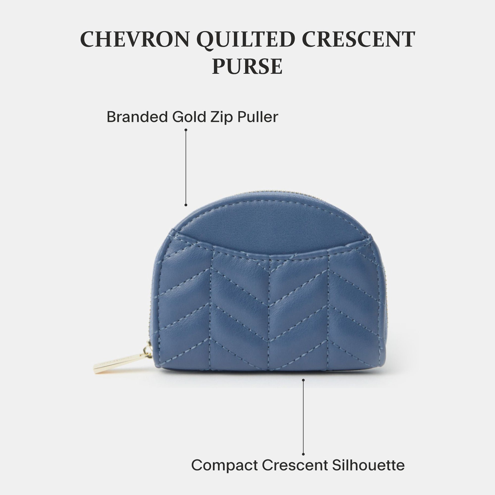Made from smooth faux leather with chevron quilting, this purse features a curved zip fastening and outer slip pocket.
