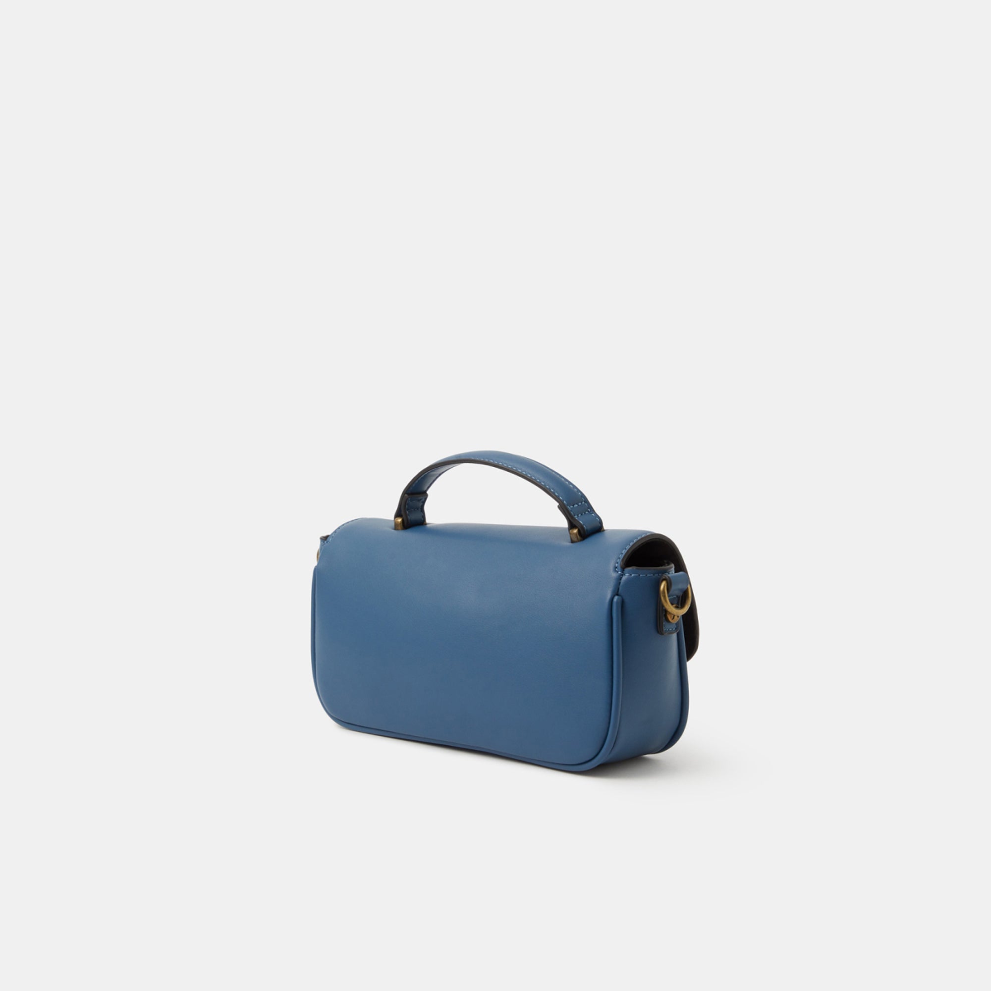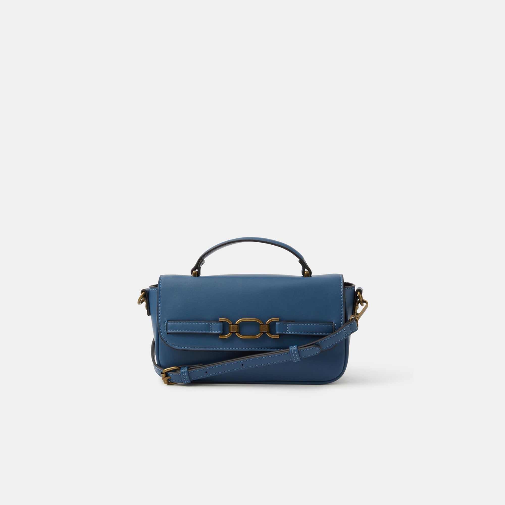 A chic way of adding a pop of colour into your look, this crossbody is made of faux leather with brassy hardware for a vintage-inspired feel. Featuring a snaffle buckle detail, magnetic button fastening, top handle and detachable strap. Blue