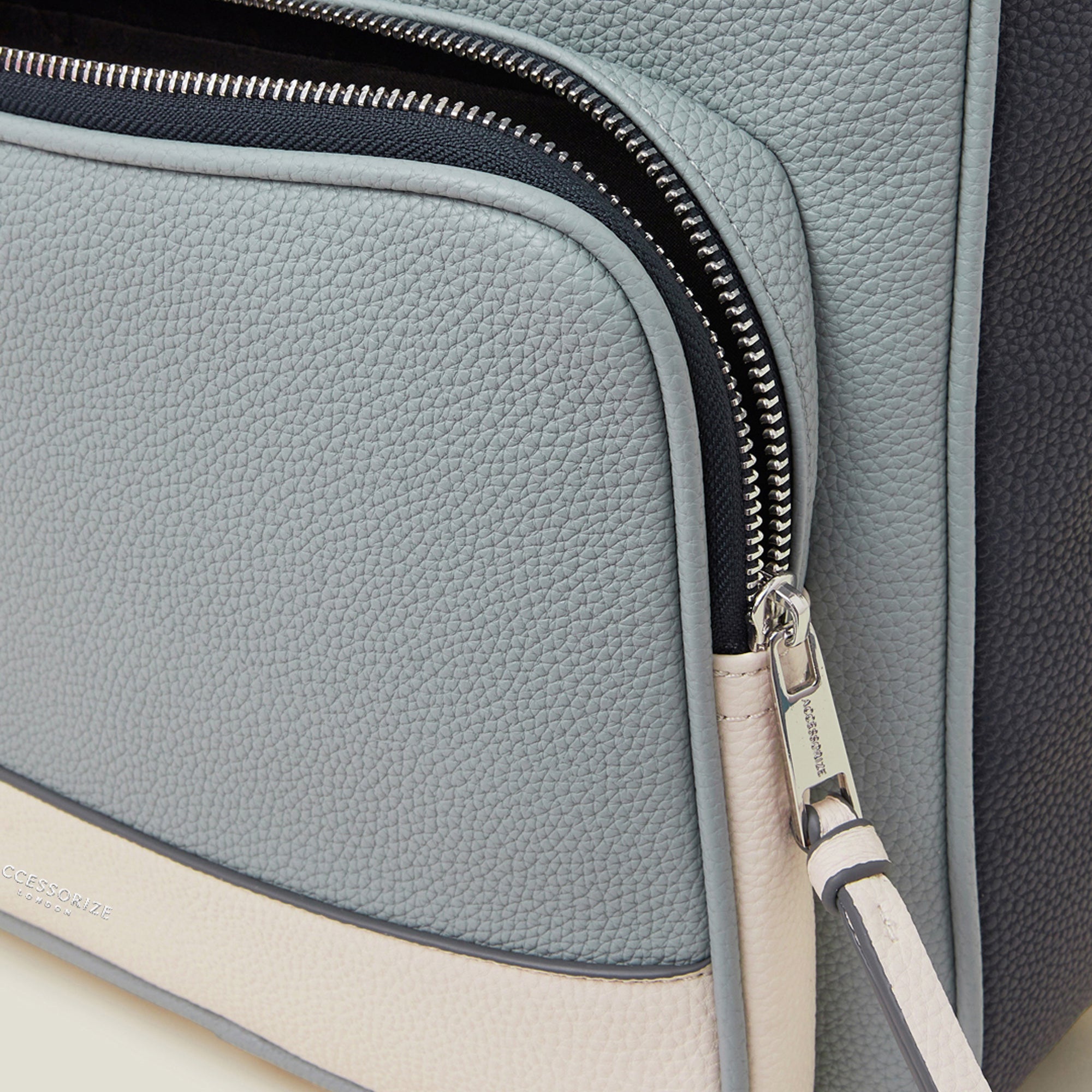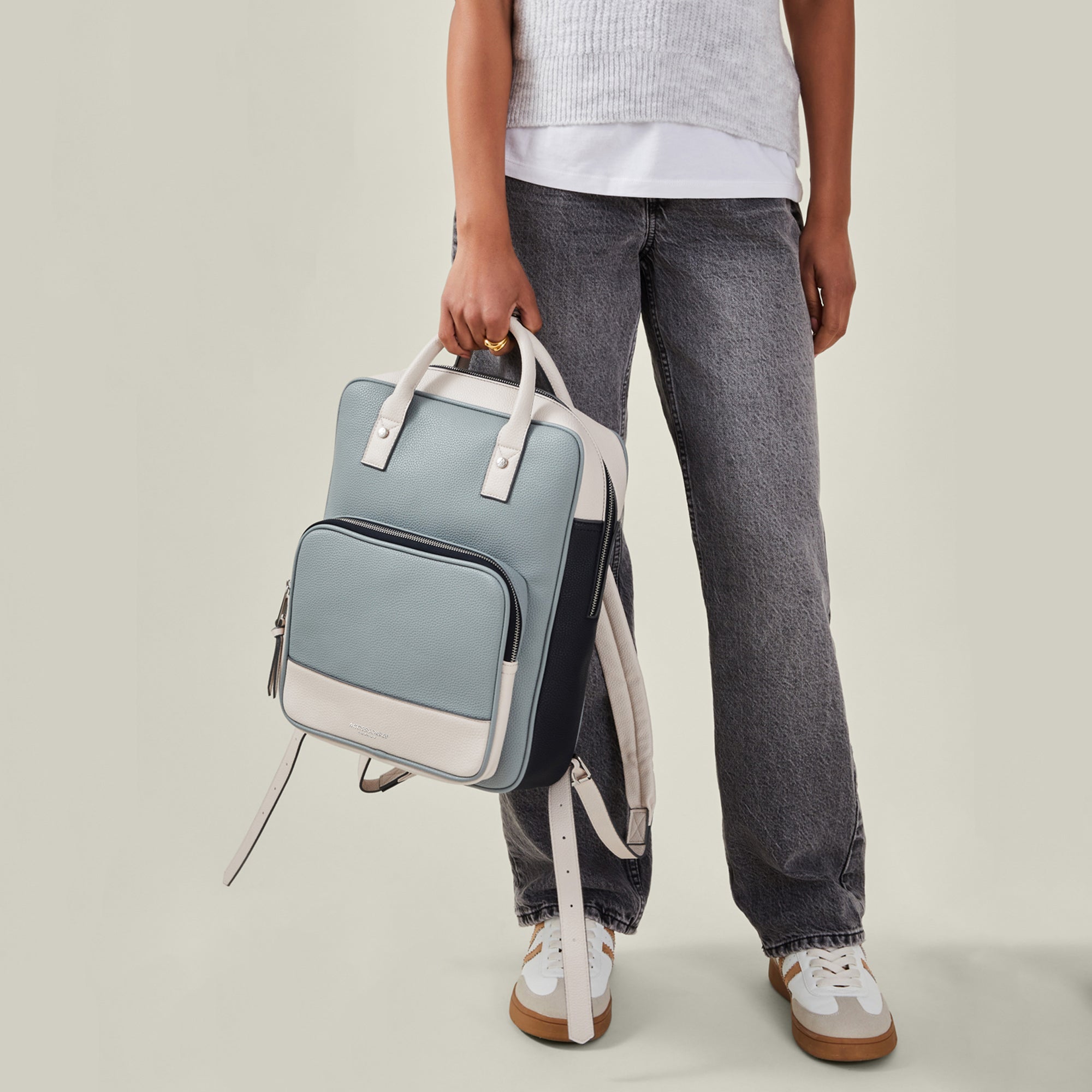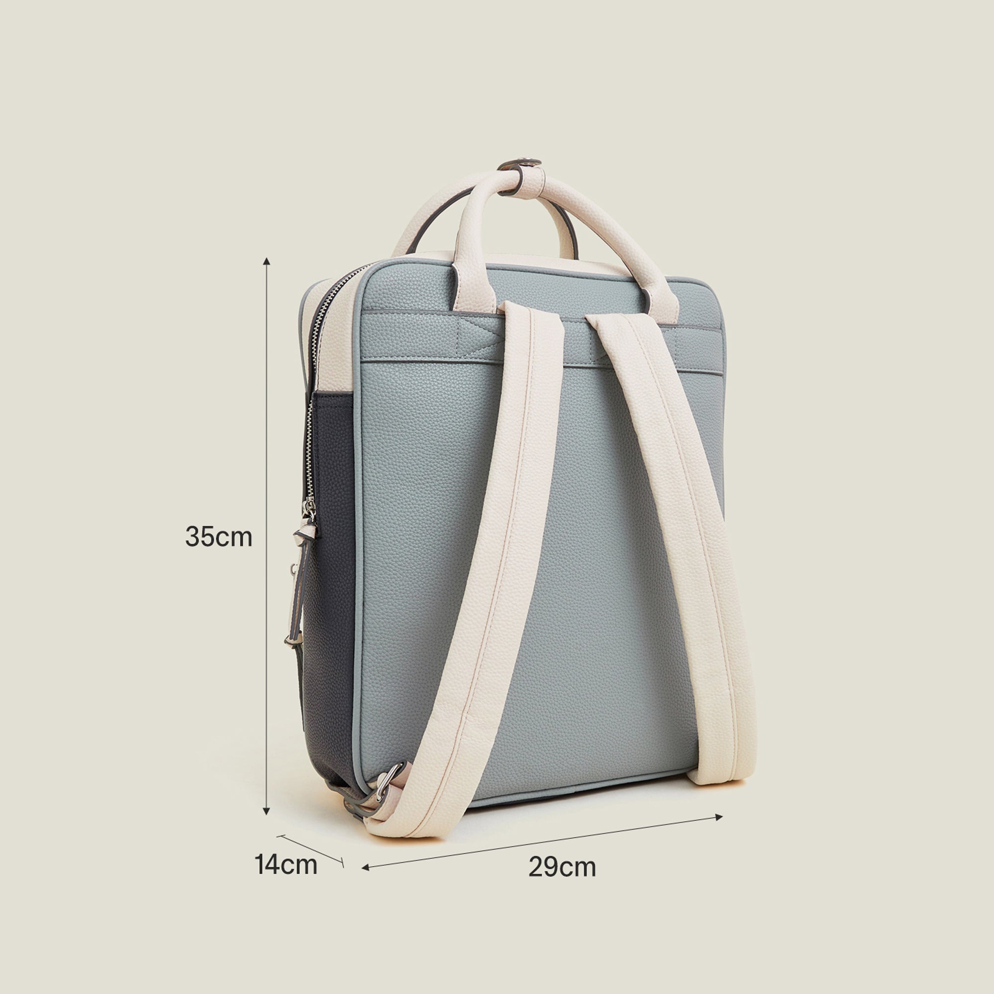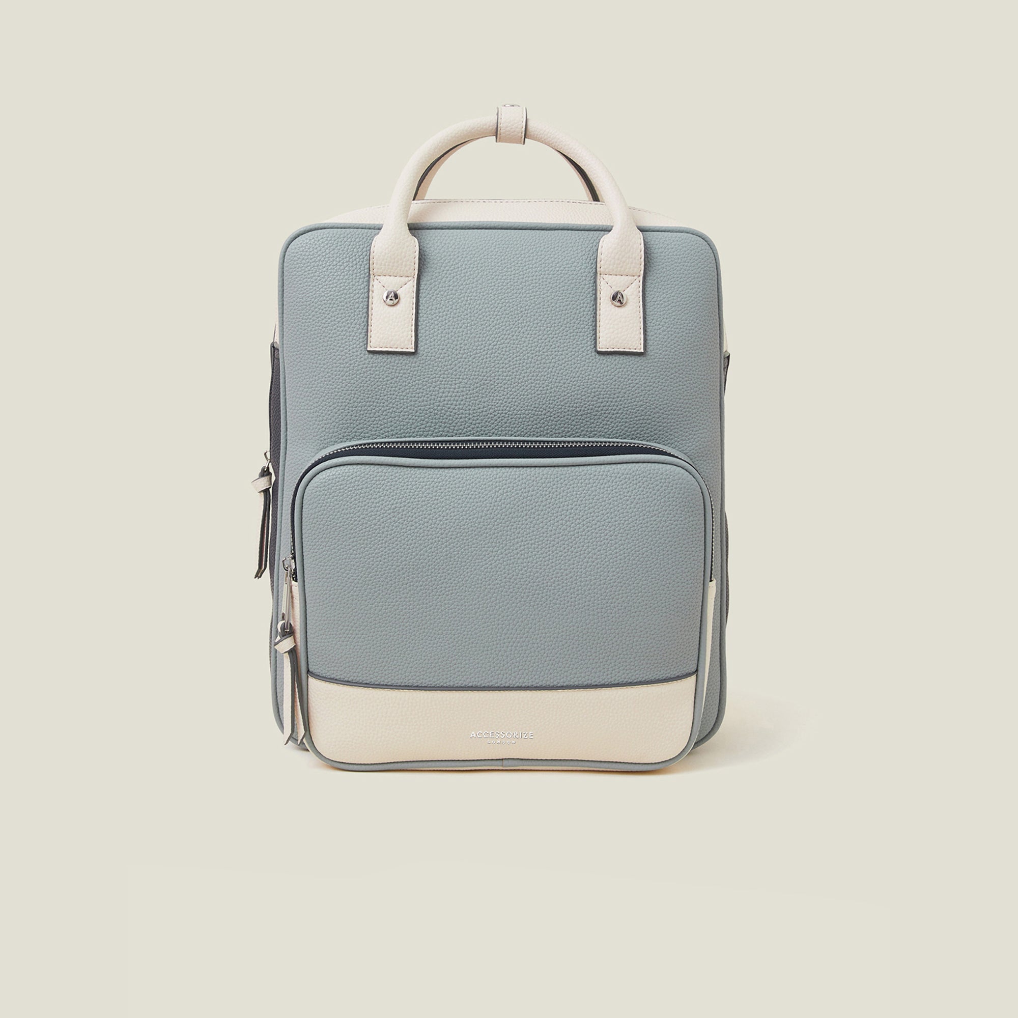 Made from faux leather in two tones that just go together, this backpack is every commuters dream accessory. Designed in a rectangular profile, it's got a handy front pocket for the small essentials, a main zip-up compartment, internal slip pocket, two top handles and adjustable shoulder straps.