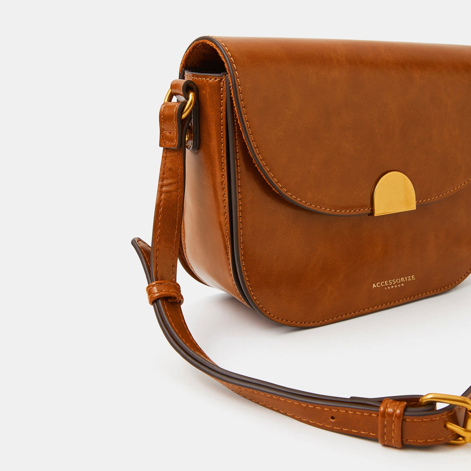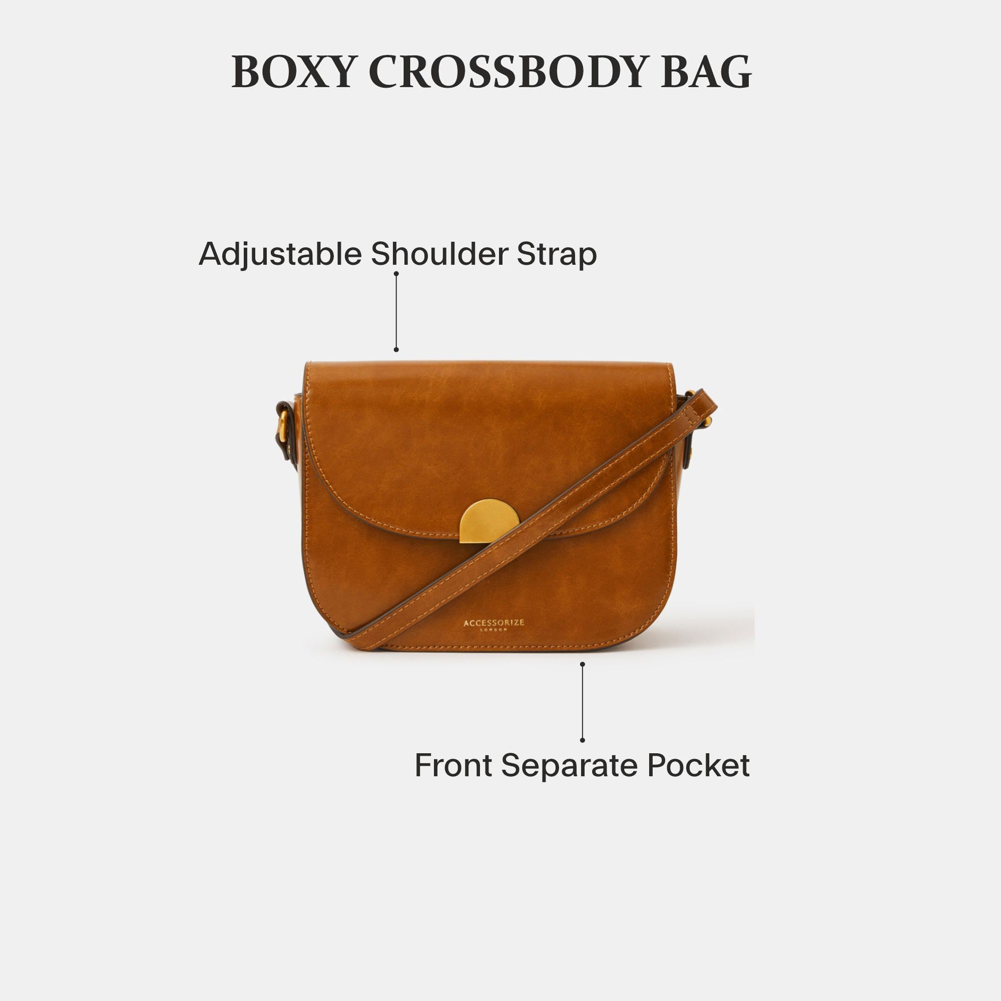 Perfectly structured and timelessly chic, this Tan Boxy Sling Bag is your ideal autumn accessory. Crafted from smooth faux leather, it features a neat boxy silhouette that can fit your everyday essentials with ease – from your phone and wallet to keys and small beauty must-haves. Designed with a magnetic button fastening, inside zip pocket, and adjustable strap, it blends functionality with minimal elegance, making it a versatile companion for both work and casual outings.