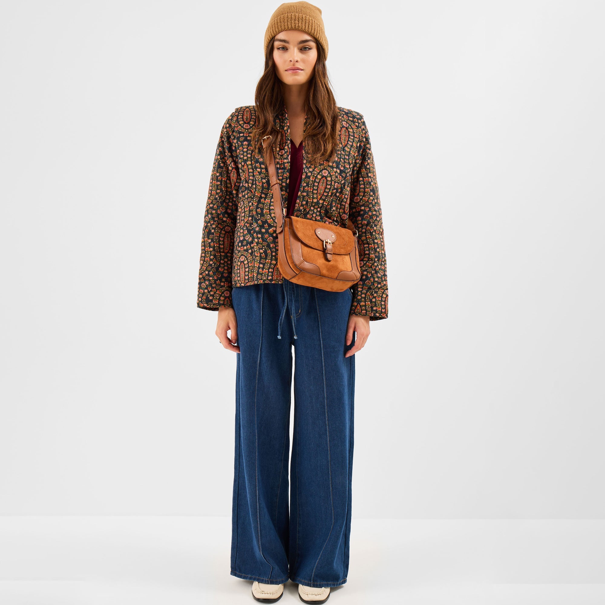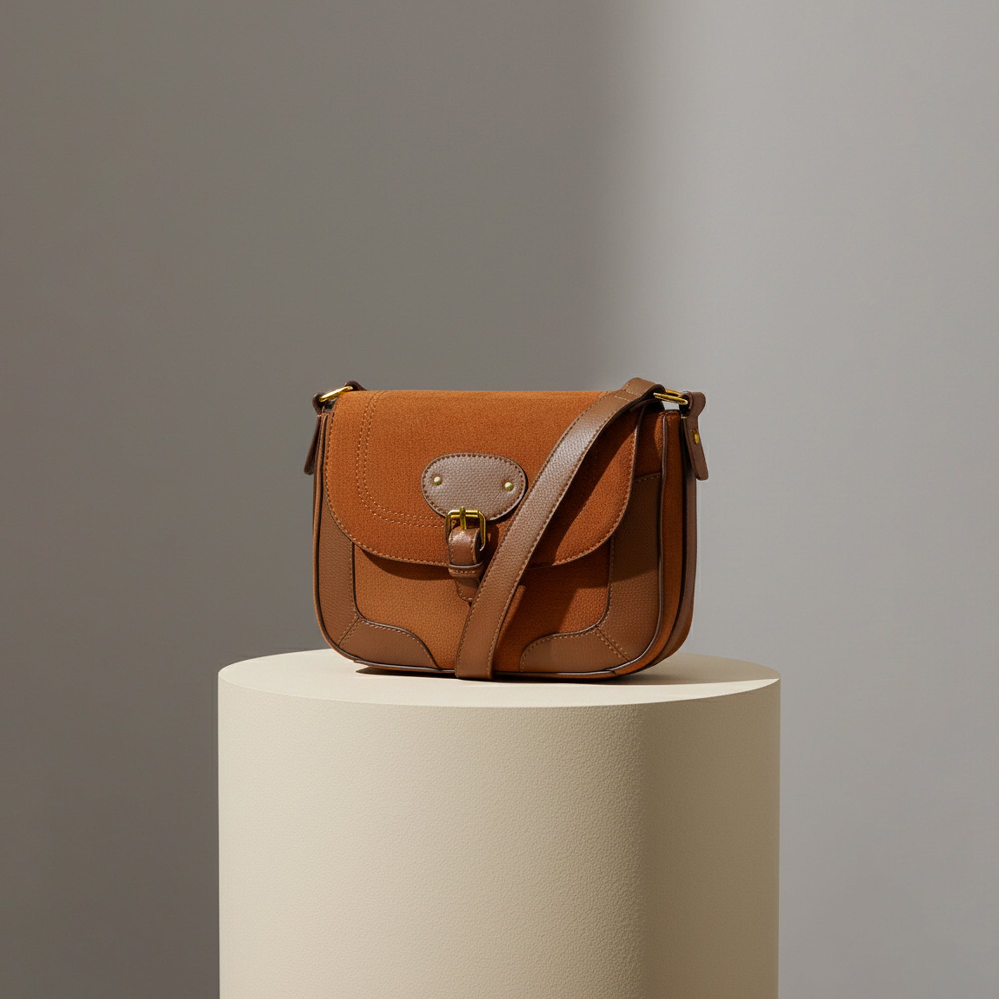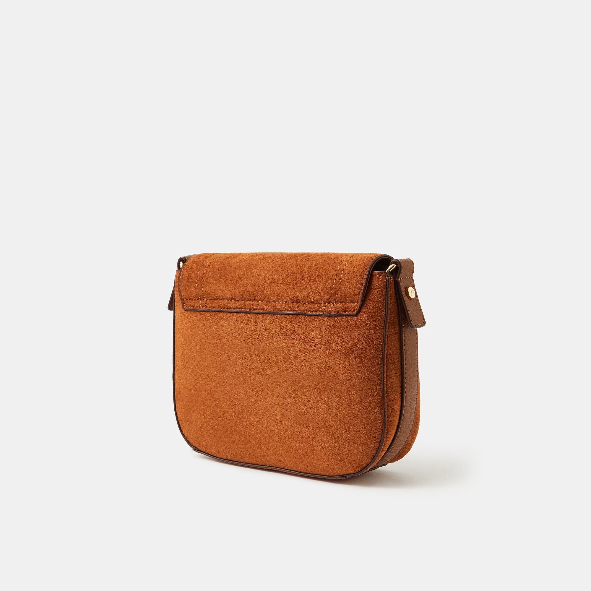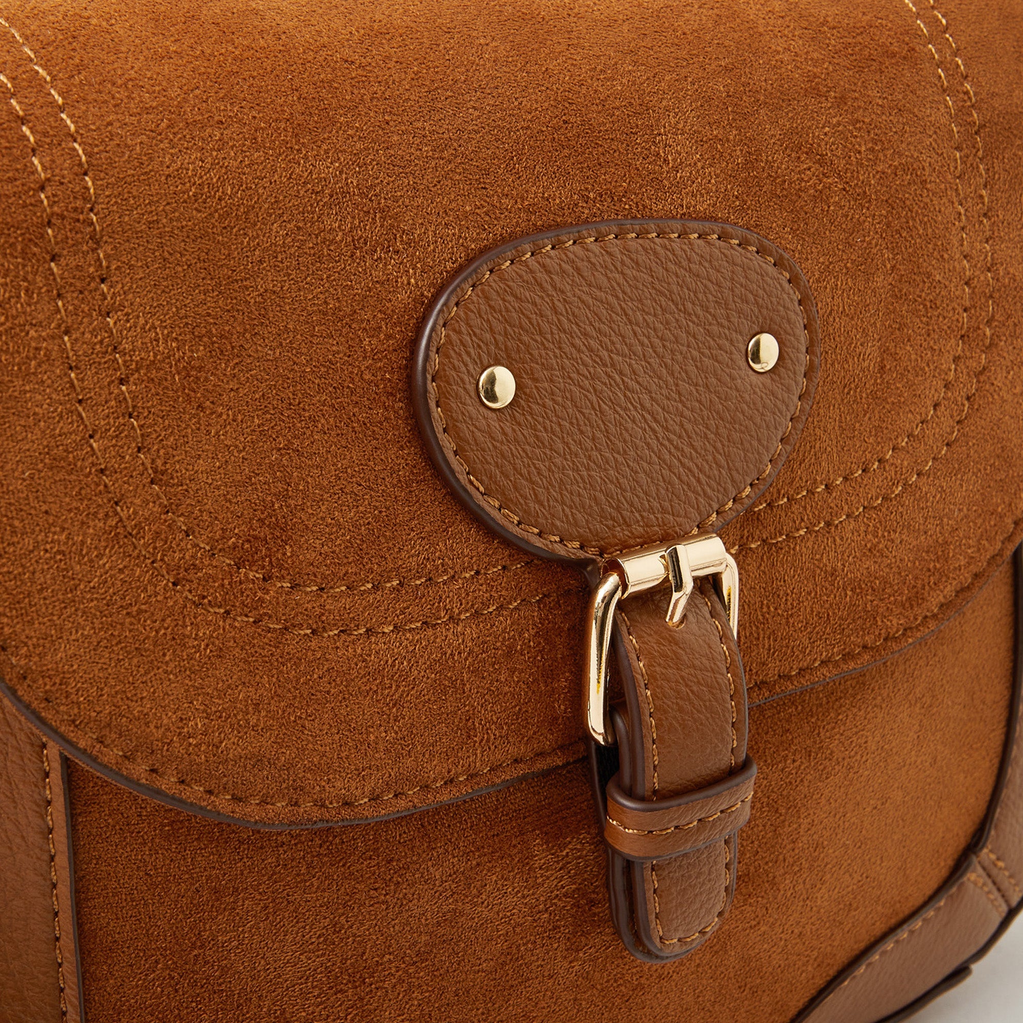 A timeless pick you can rely on season after season, this saddle bag offers a soft suedette finish with a faux leather buckle detail. Fastening with a magnetic button closure, it features a small zip pocket inside with an adjustable crossbody strap. Brown